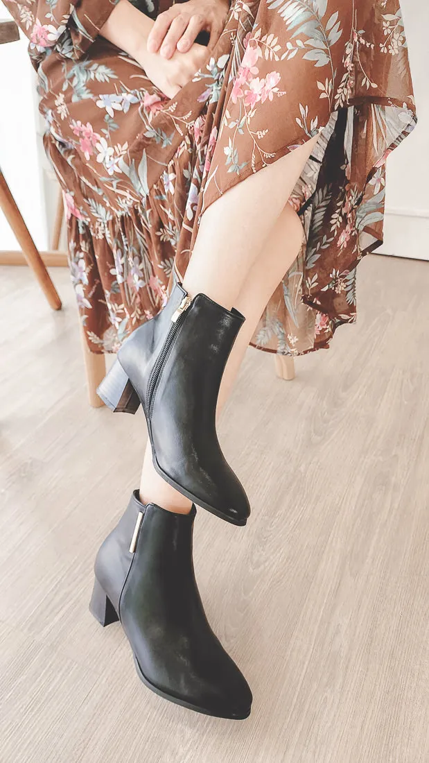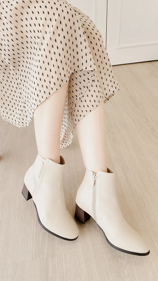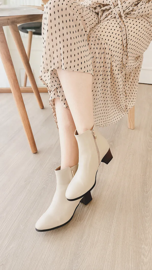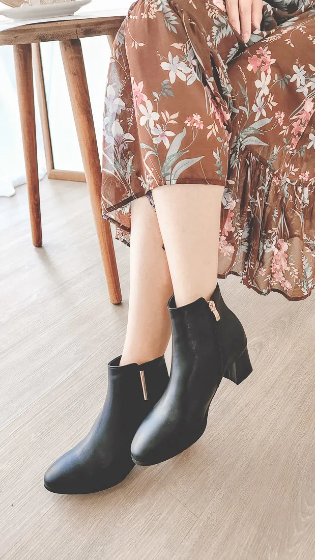 正韓 簡約粗跟純色踝靴(7036) 2色
