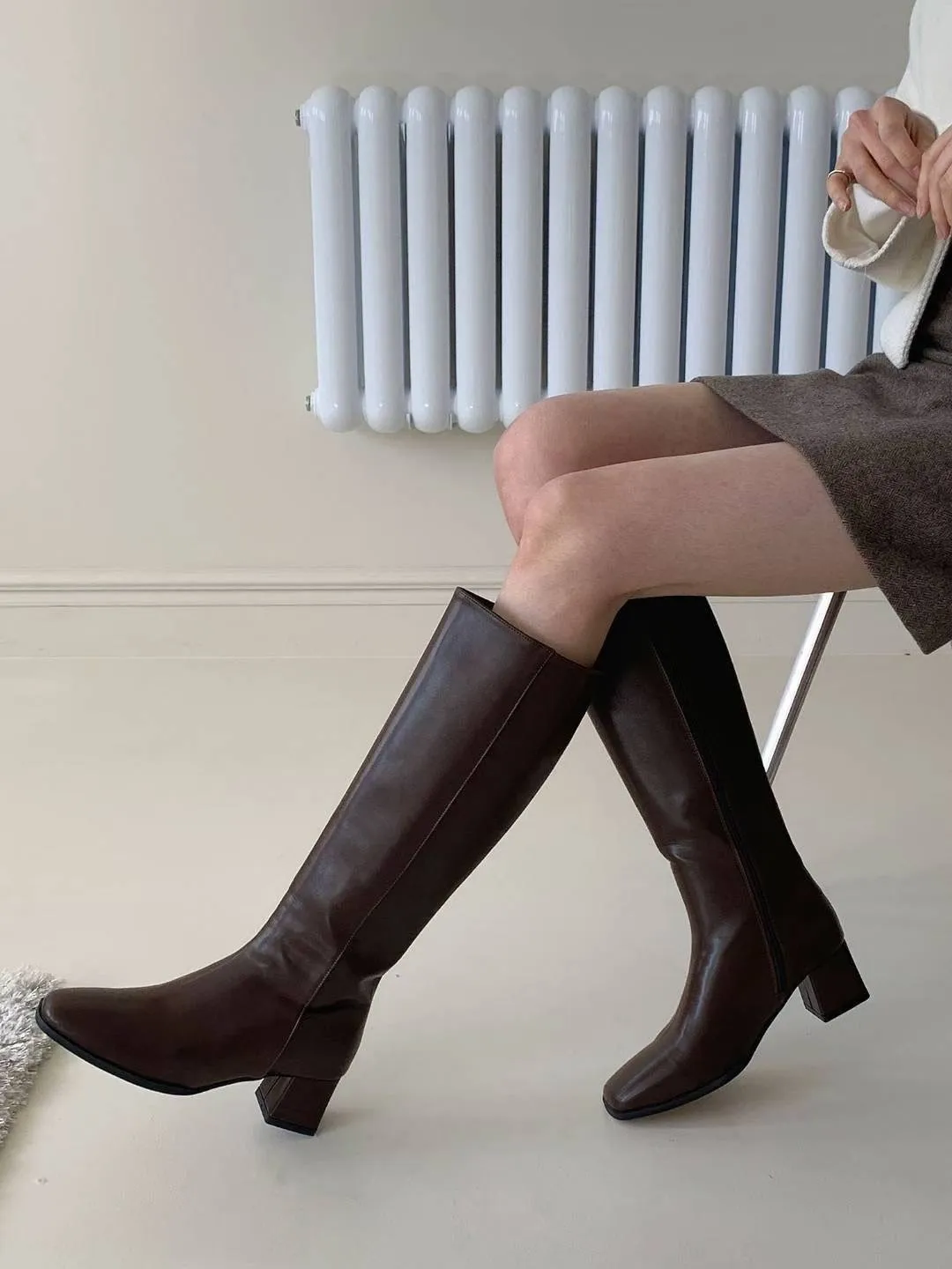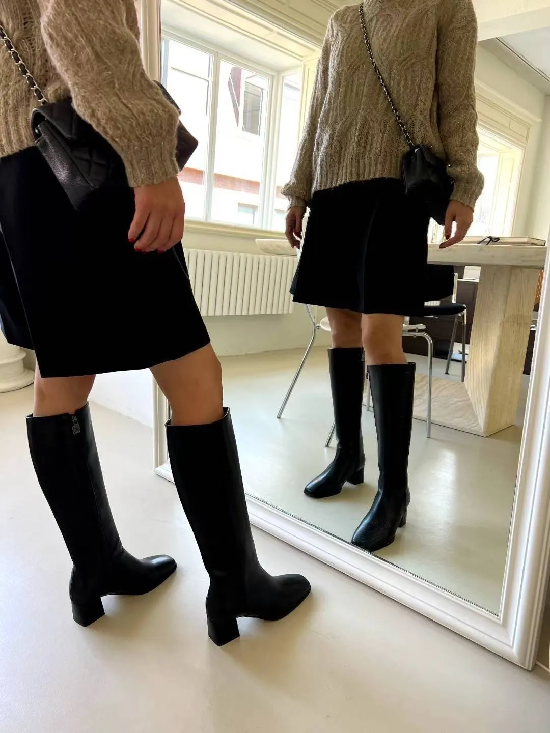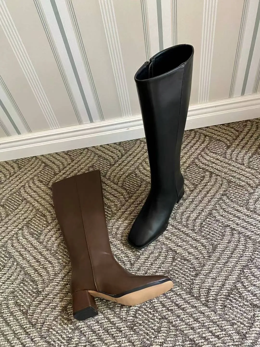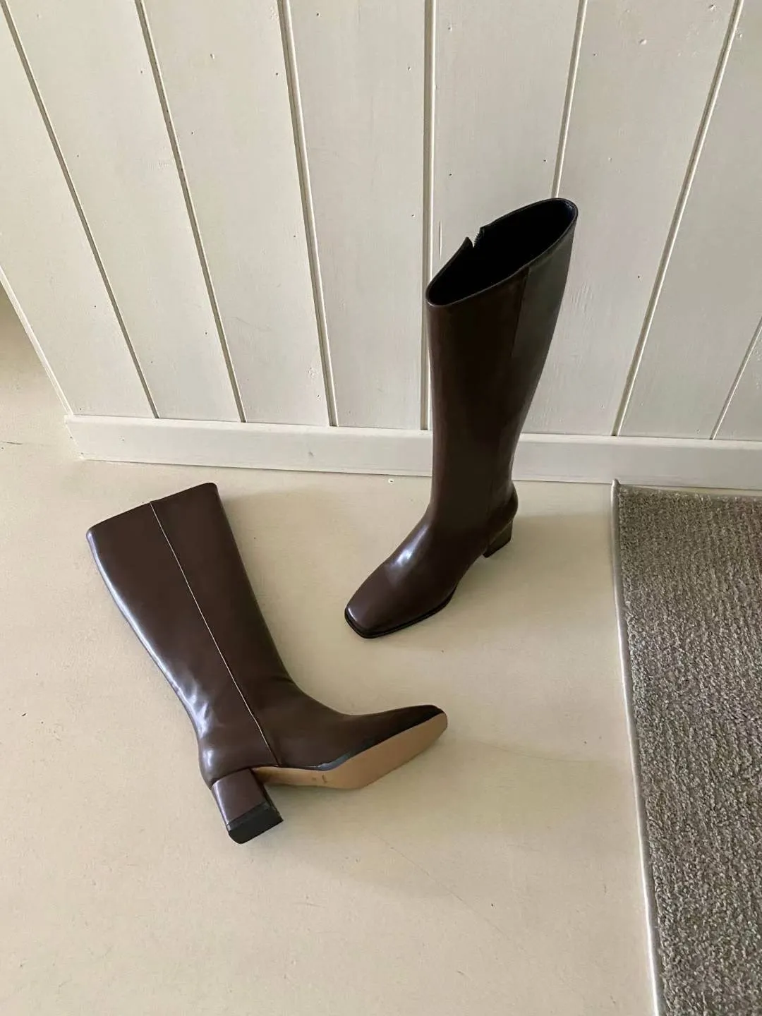 正韓 粗中跟牛皮長筒靴 2色