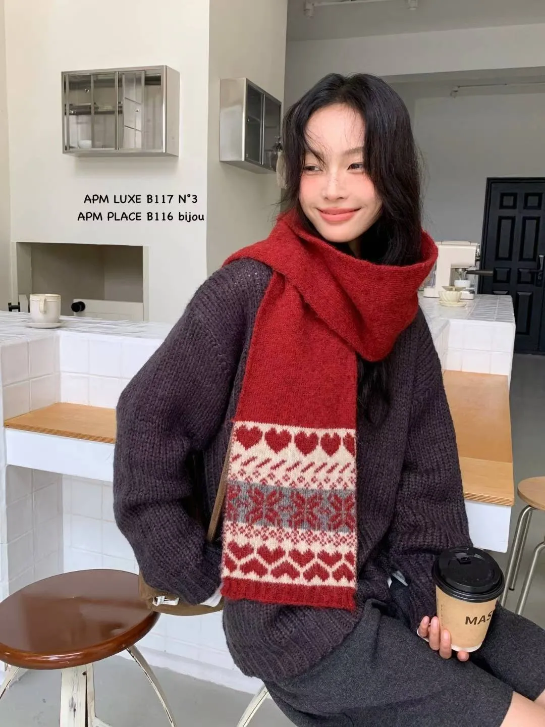 A10.正韓 北歐暖冬愛心圍巾 4色