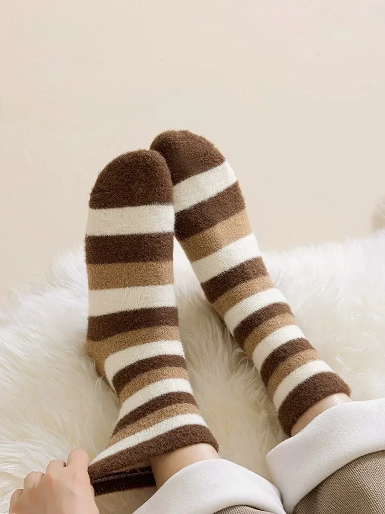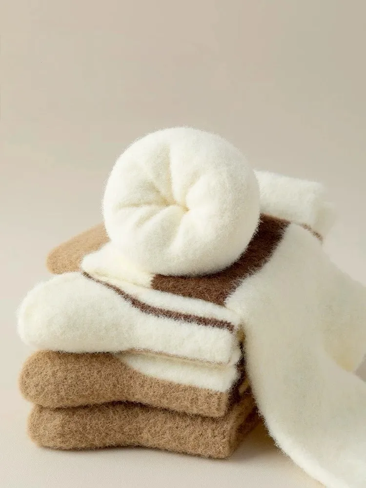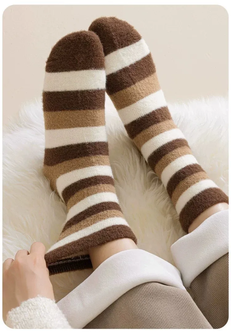 A04.雙面暖絨美拉德中筒襪 三雙一組