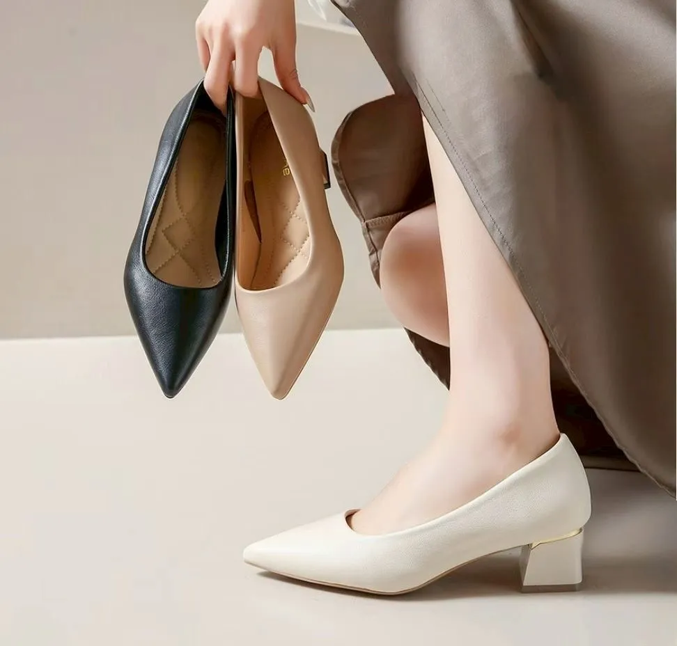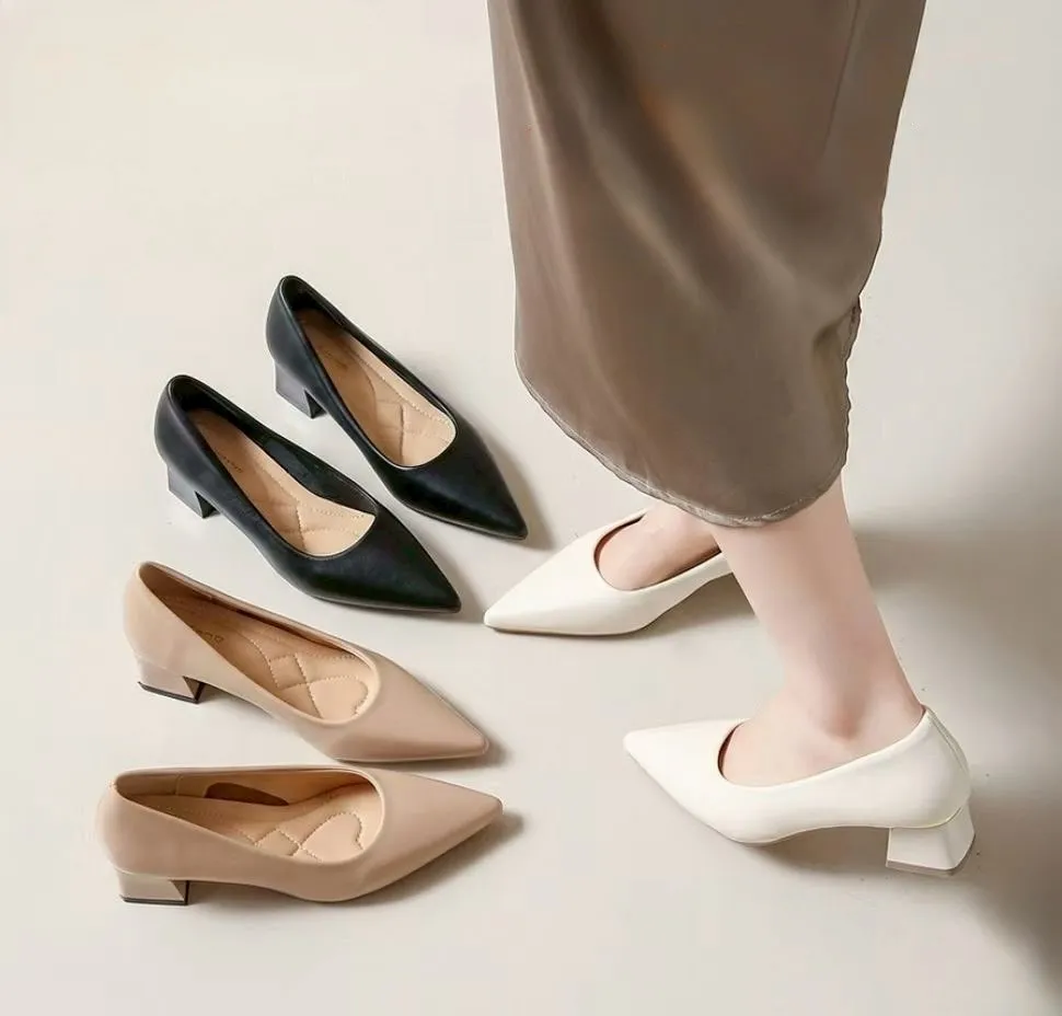 A01.正韓 簡約經典純色粗跟包鞋 3色