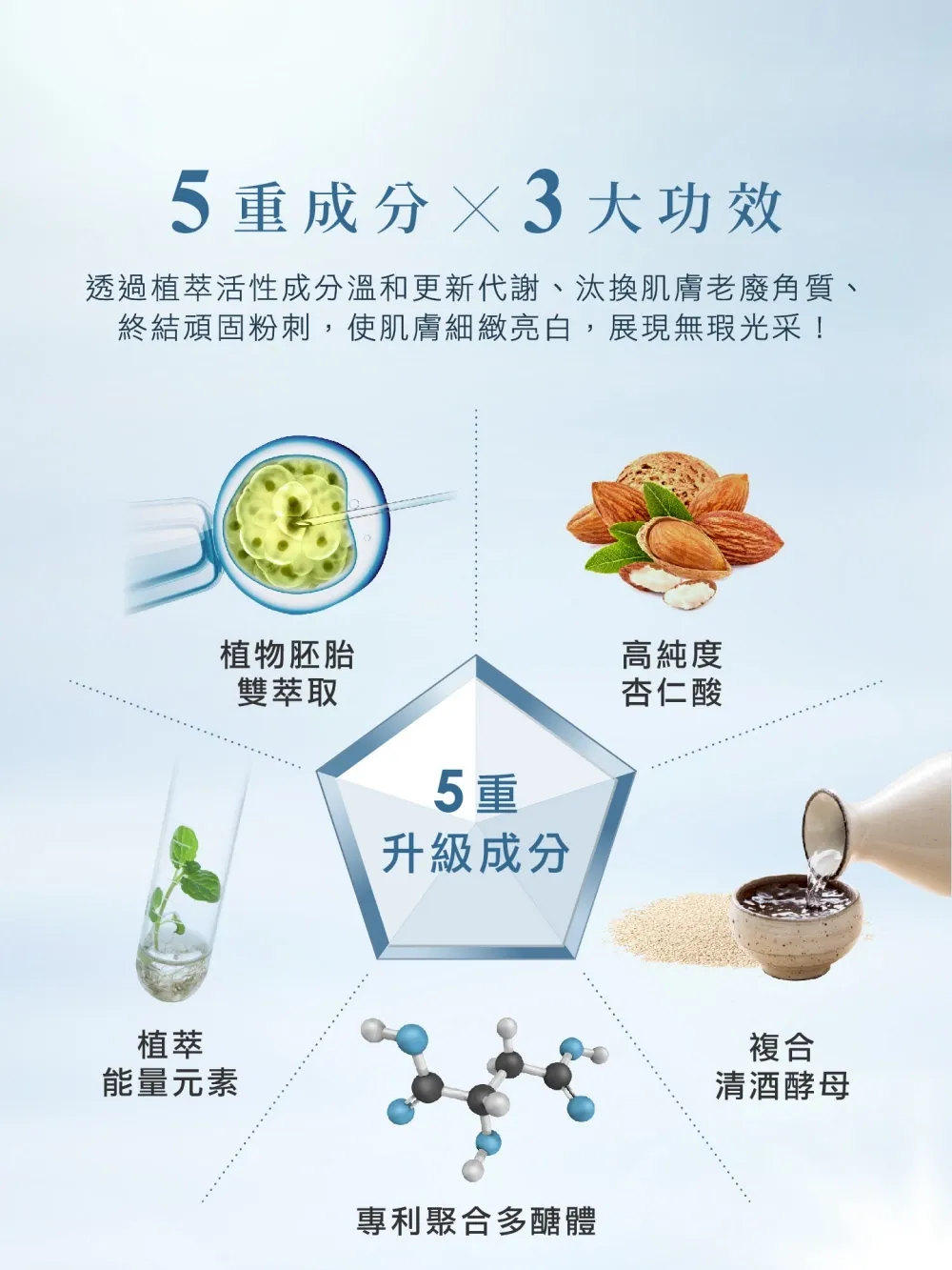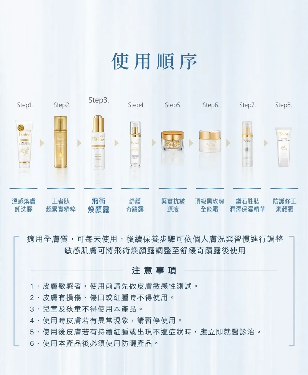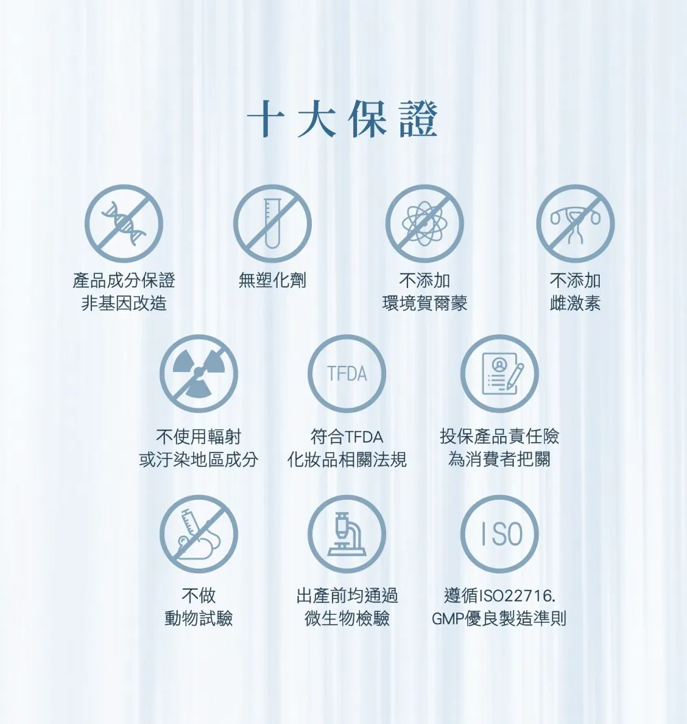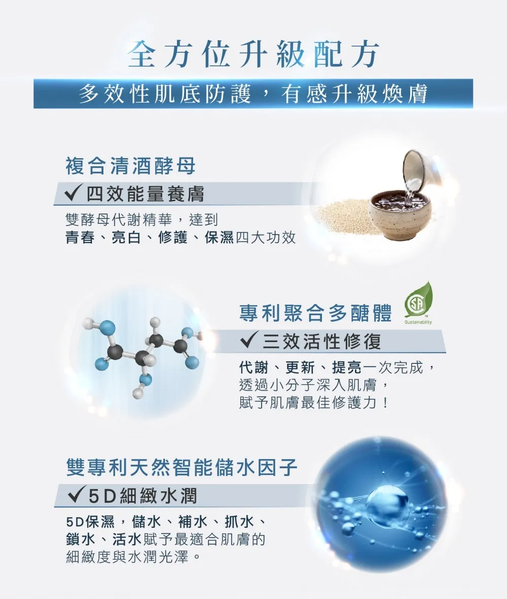 胜肽修護舒緩,玻尿酸類保濕,細緻亮白