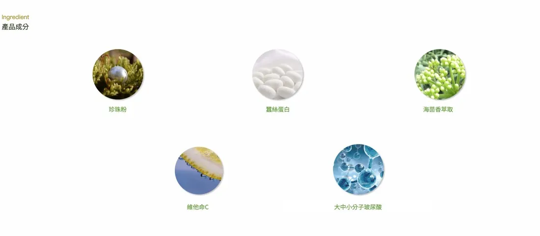 並添加多項保濕成分:大中小分子玻尿酸、古拉索蘆薈、海茴香萃取、維他命等,