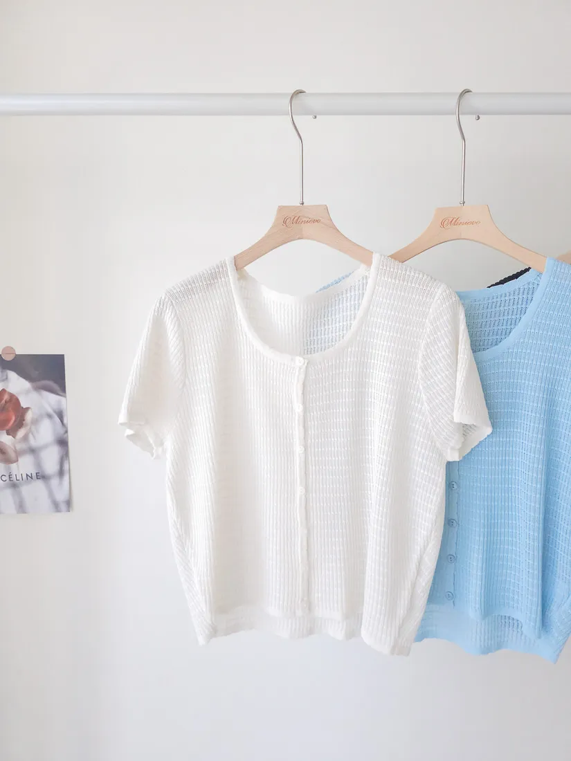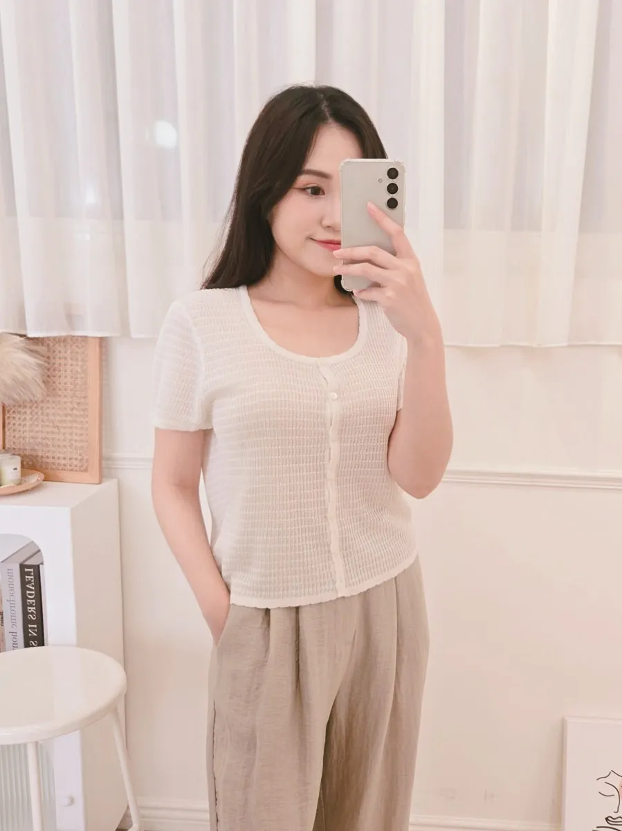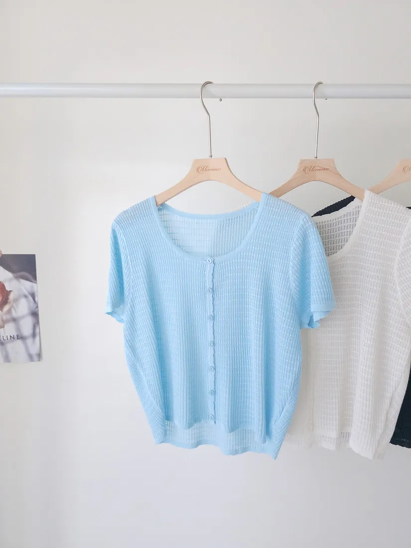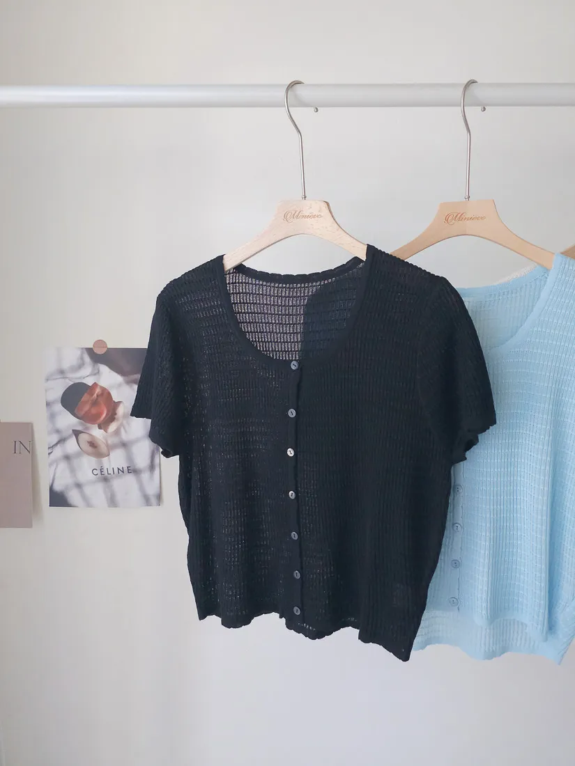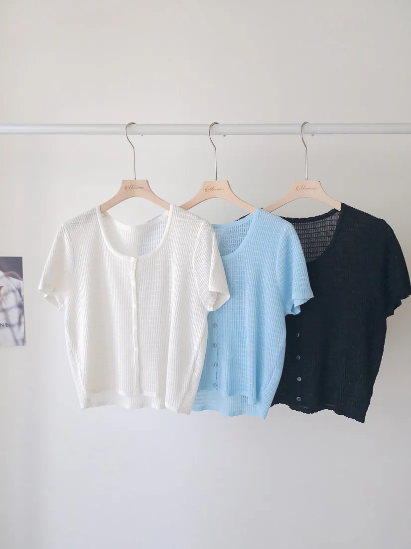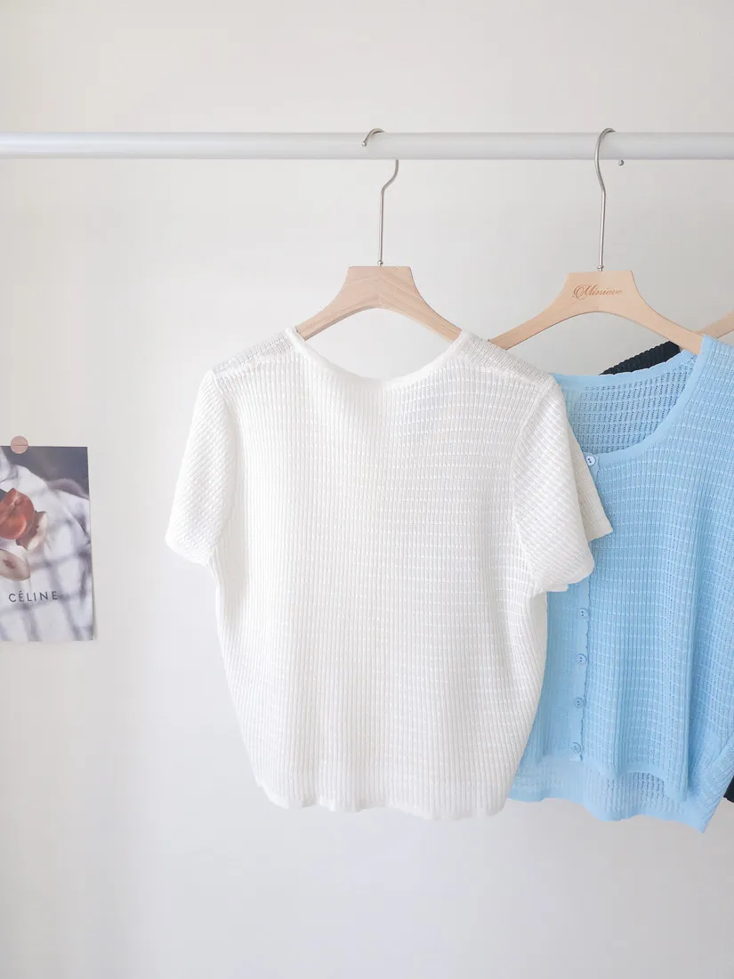 正韓 細條紋排釦輕薄線衫 4色