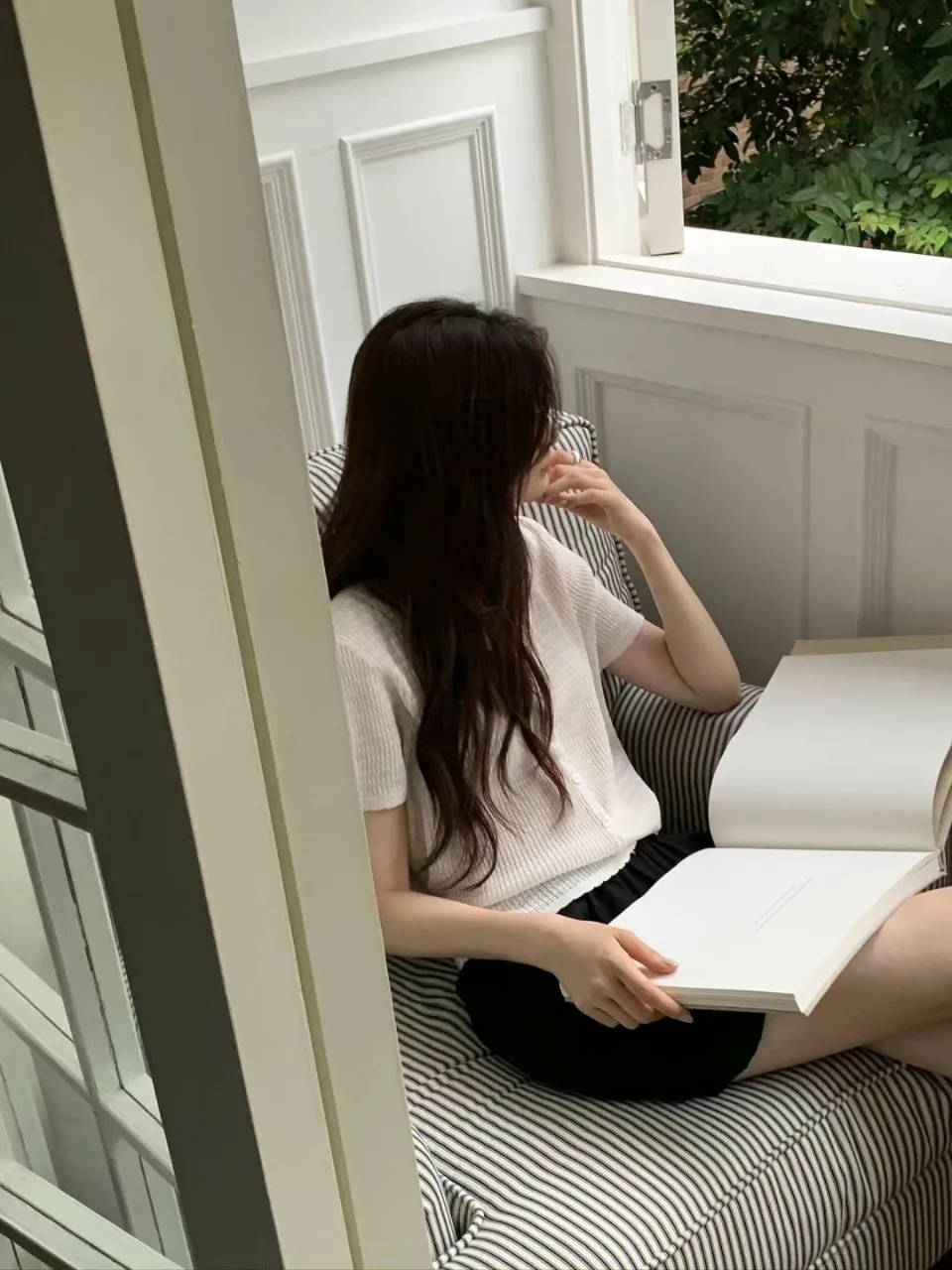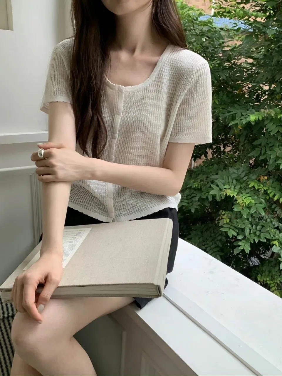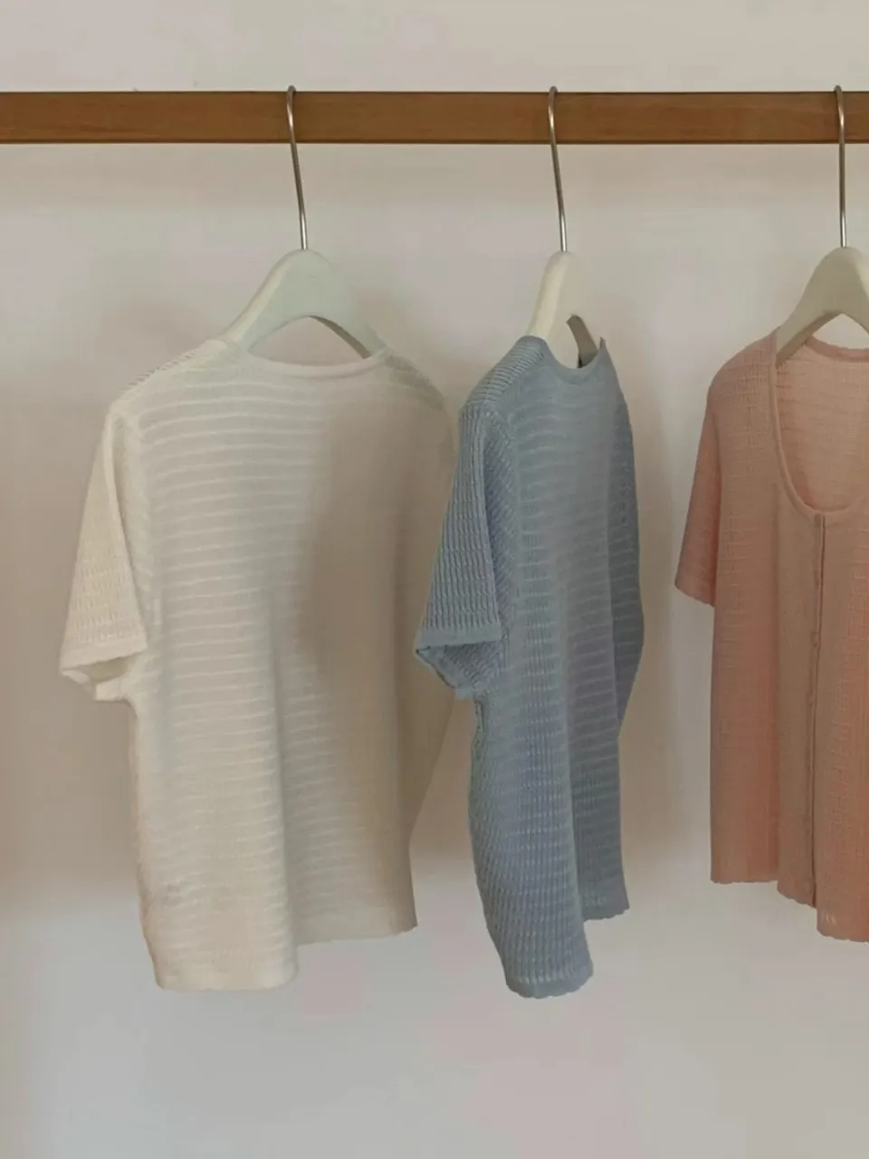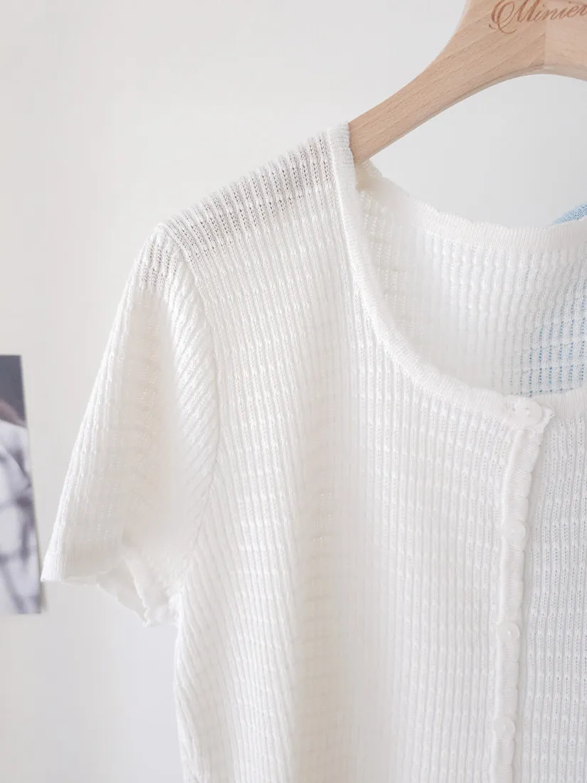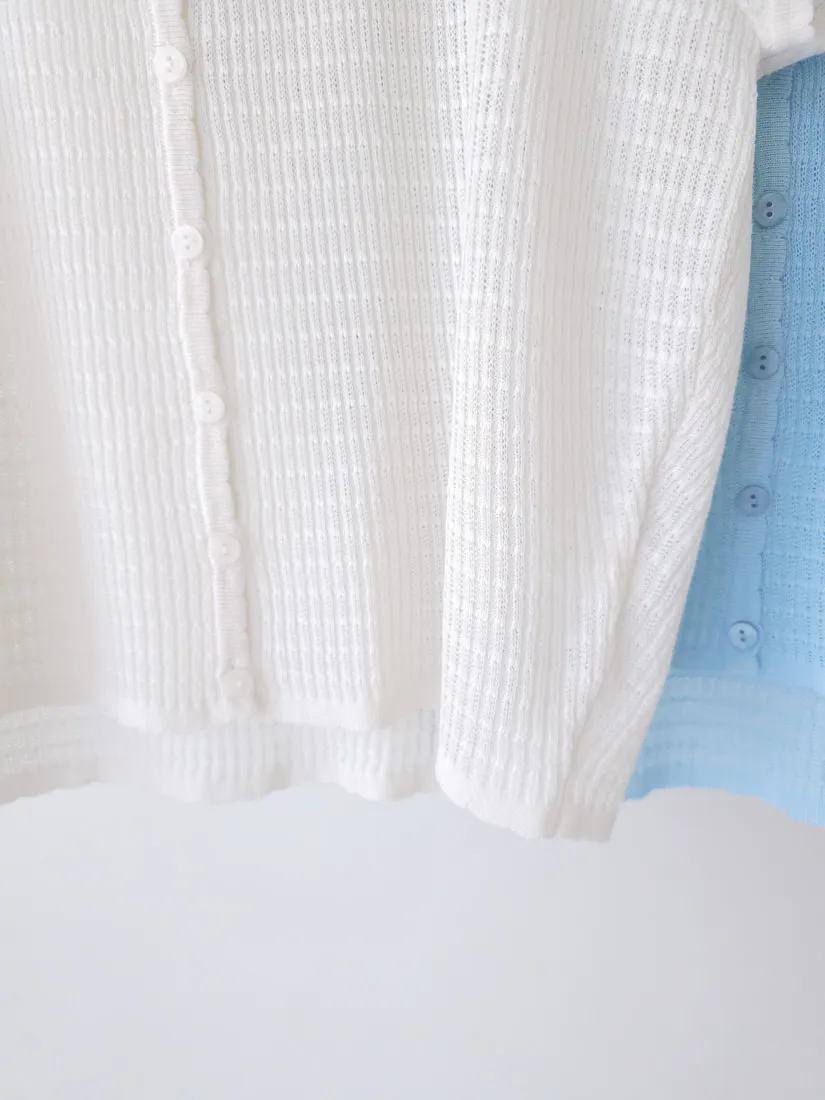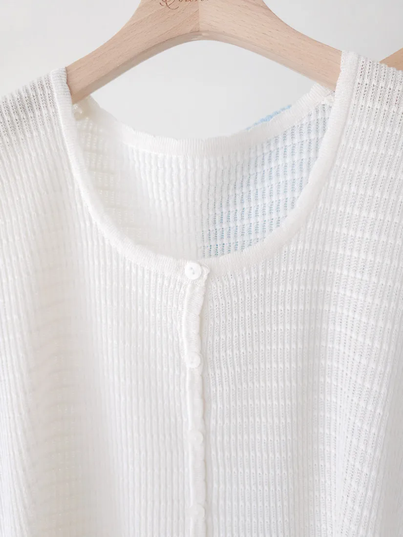 正韓 細條紋排釦輕薄線衫 4色