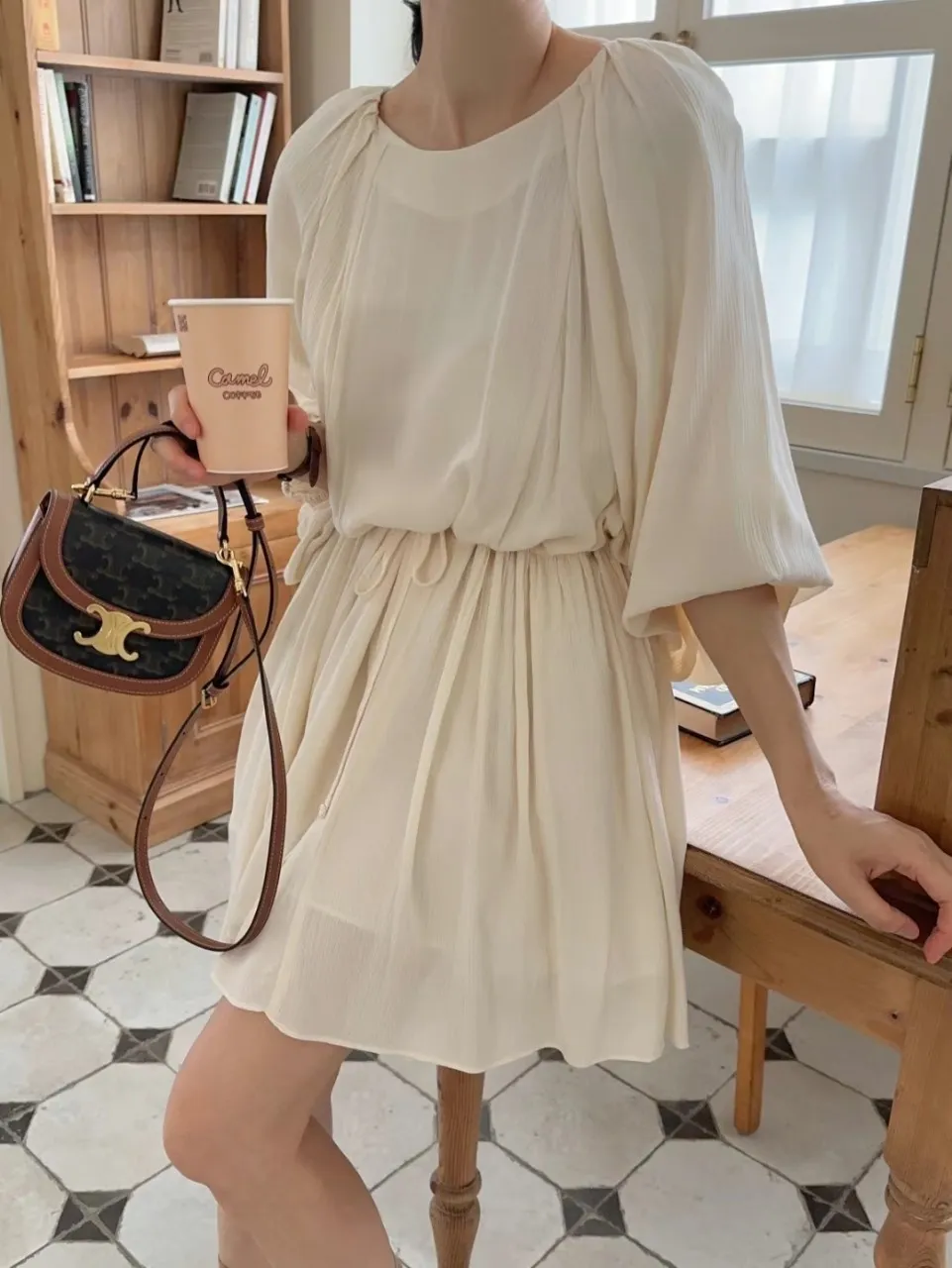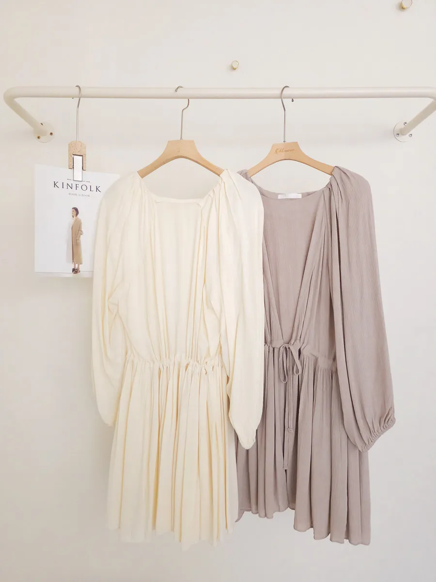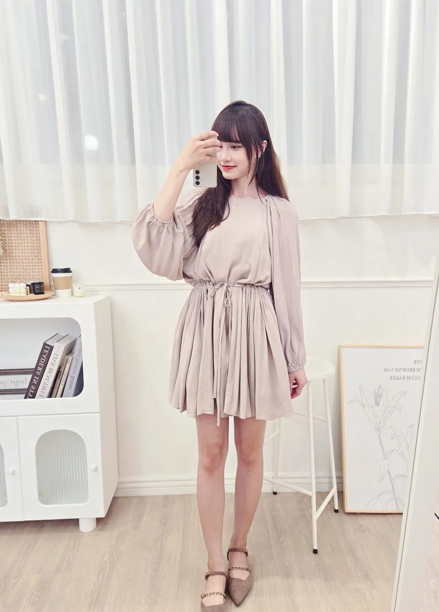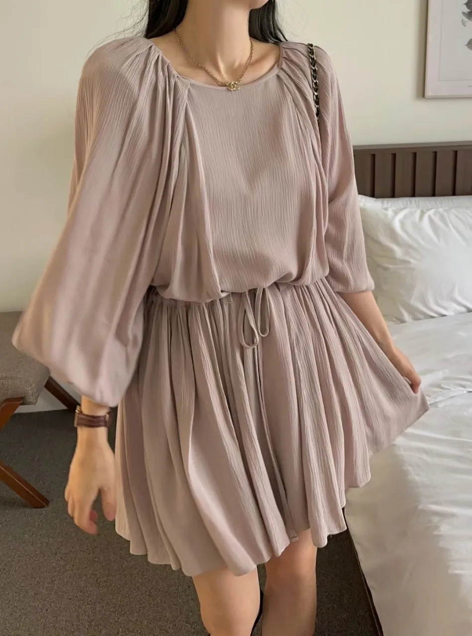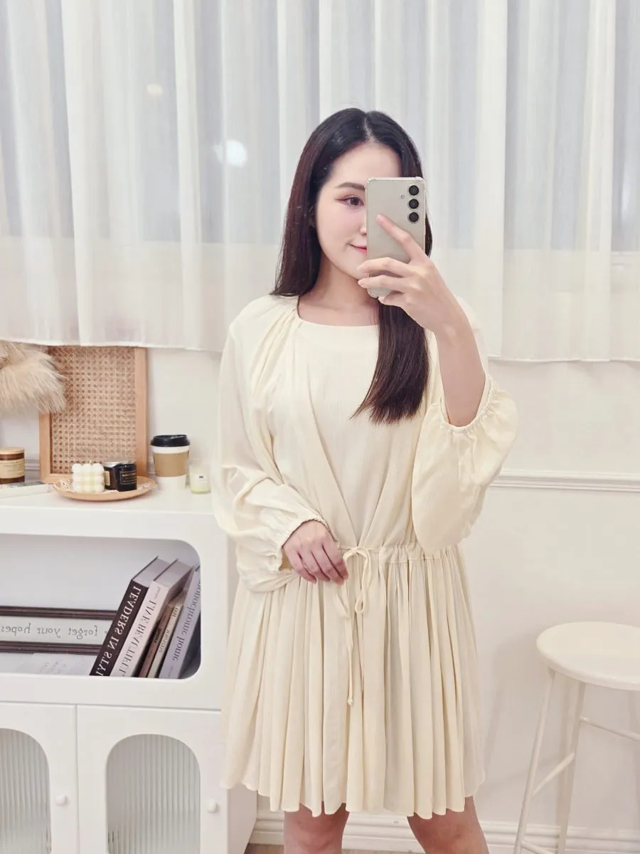正韓 抽繩縮腰皺褶短洋裝 2色