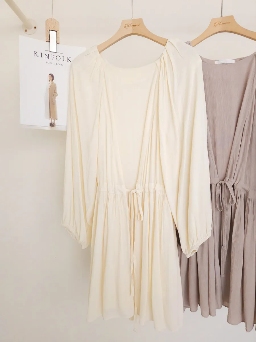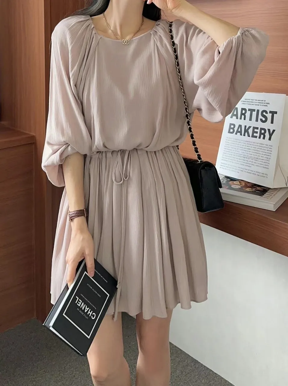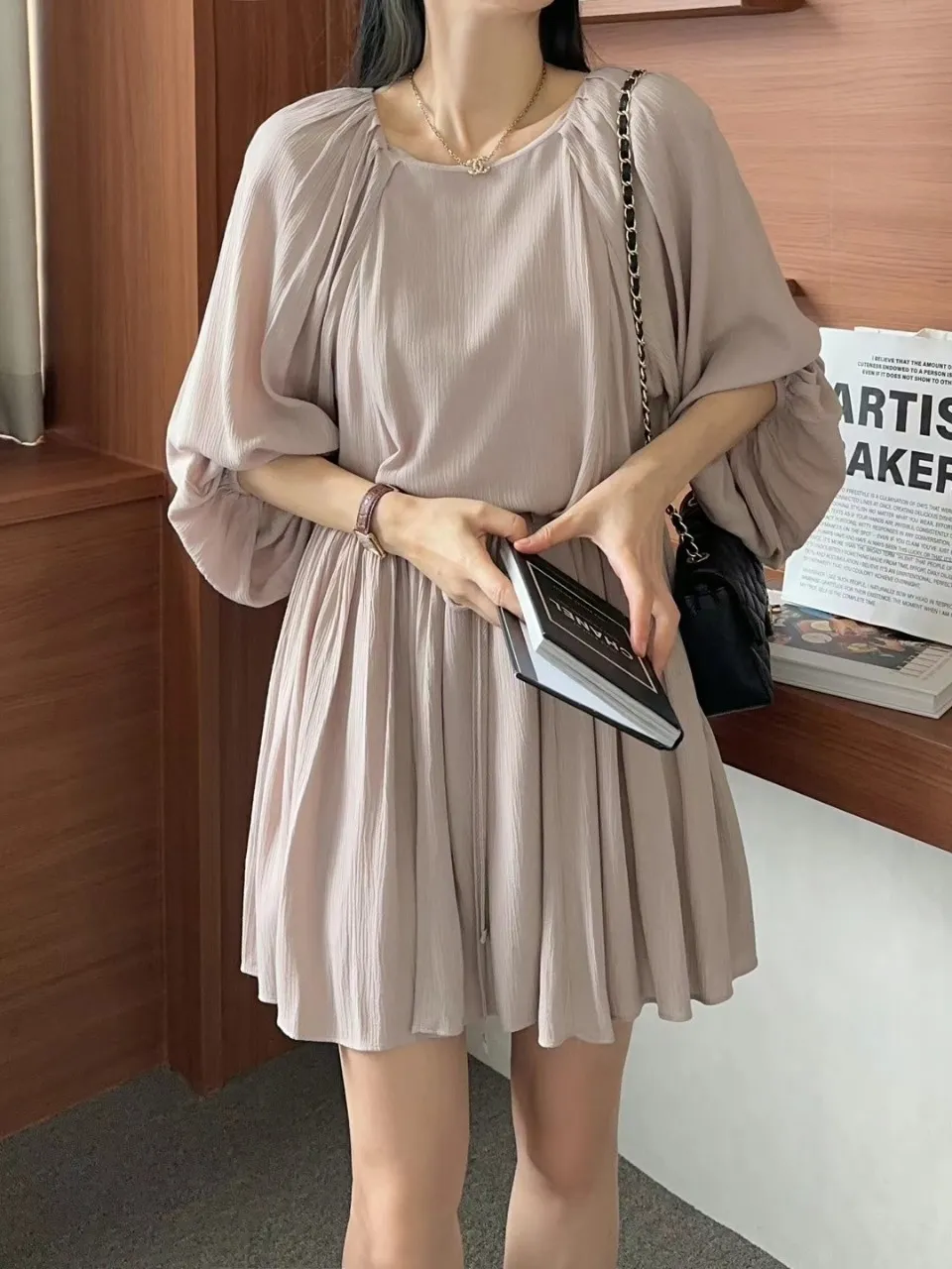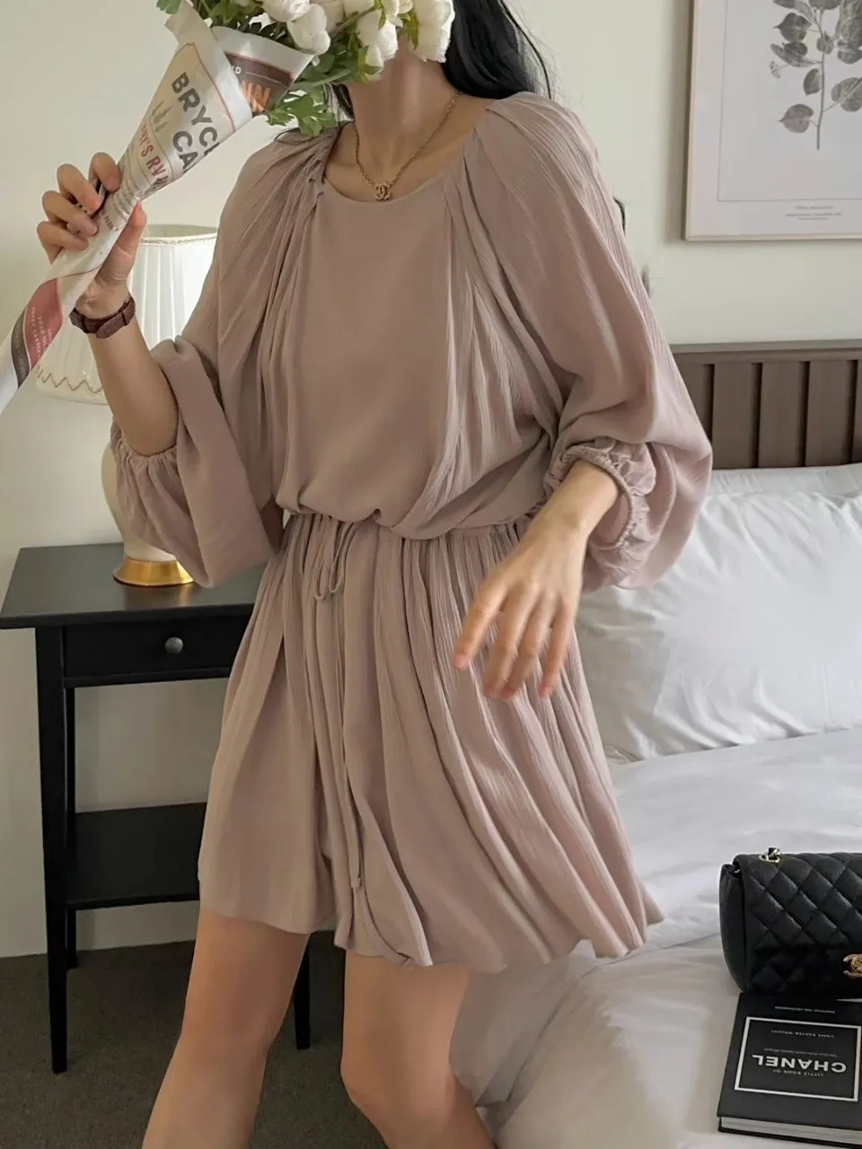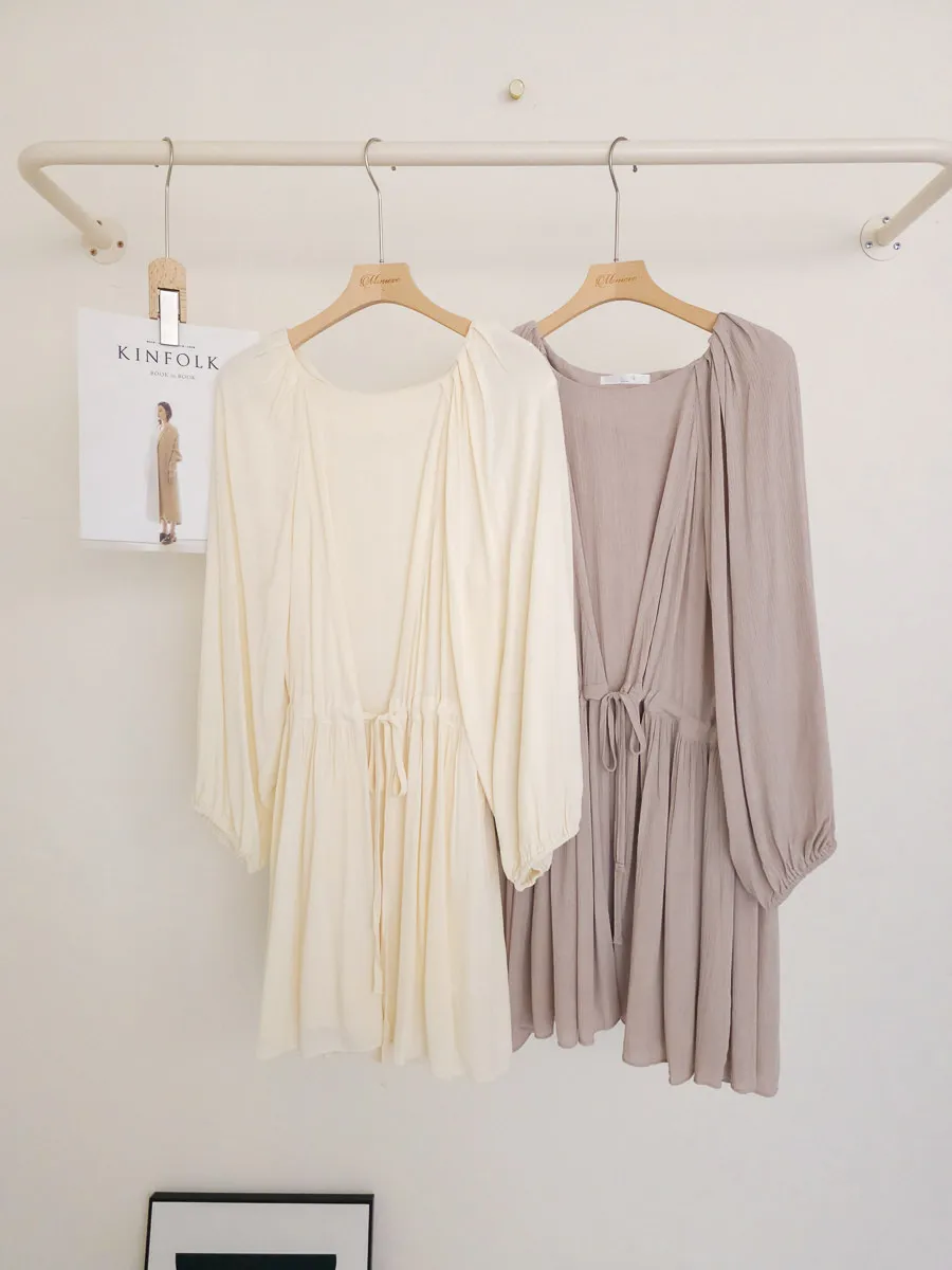 正韓 抽繩縮腰皺褶短洋裝 2色