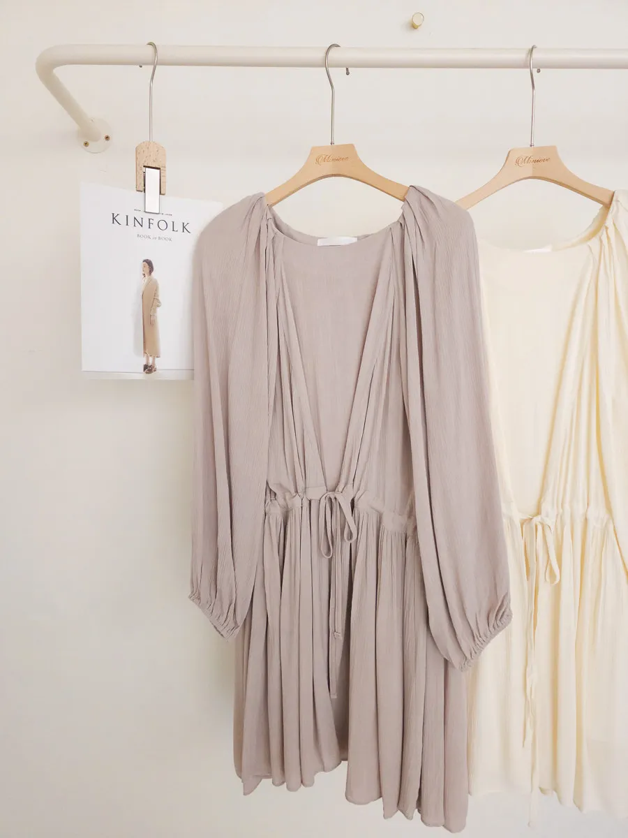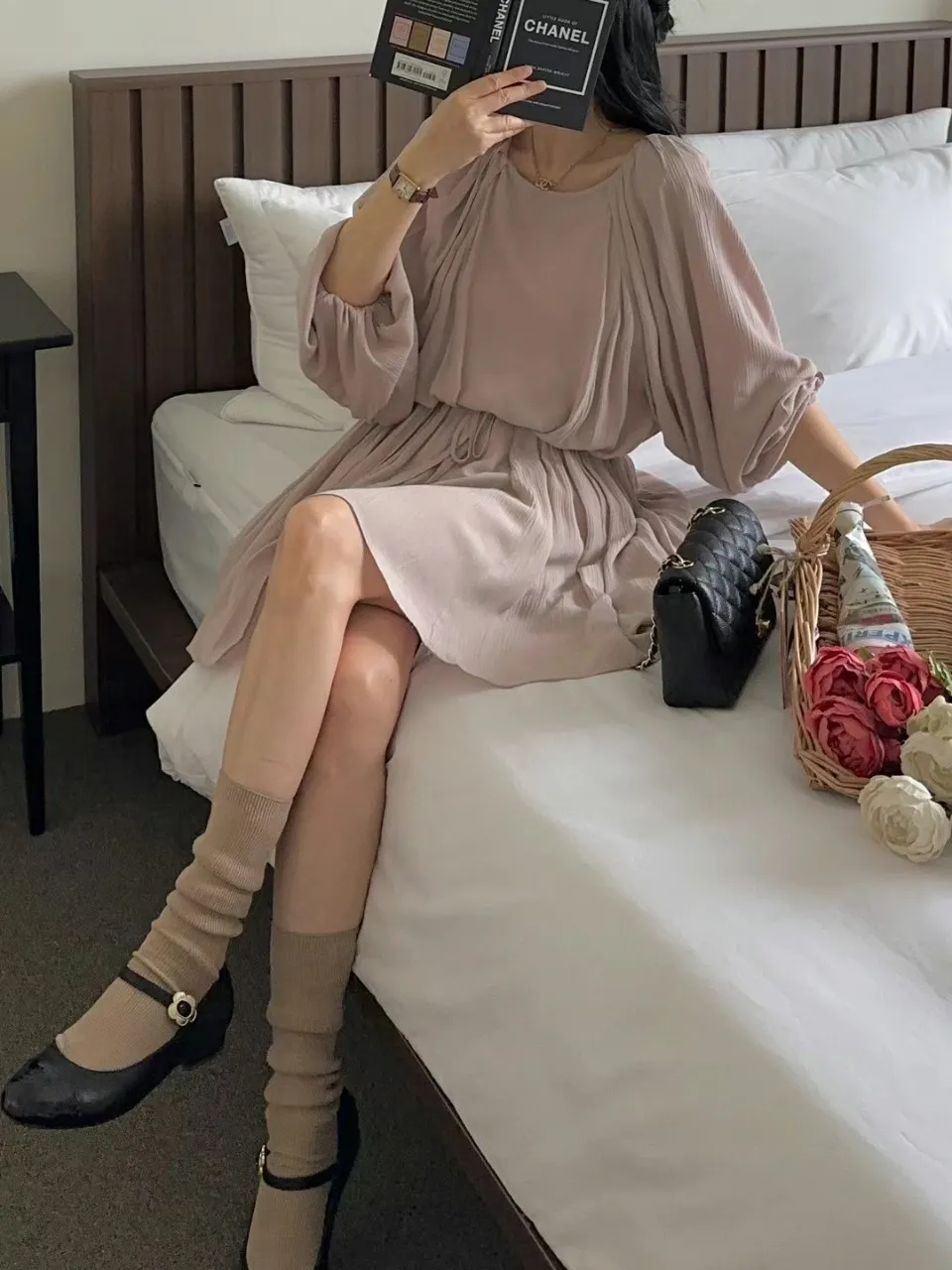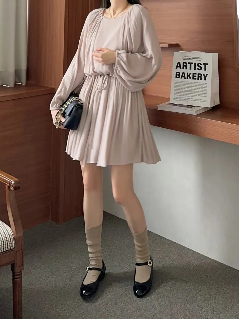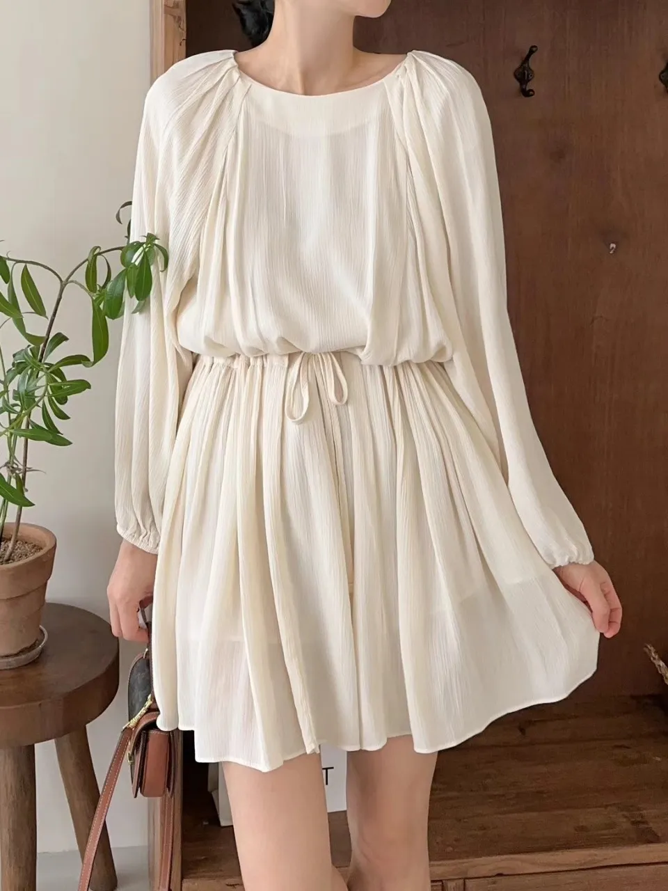 正韓 抽繩縮腰皺褶短洋裝 2色