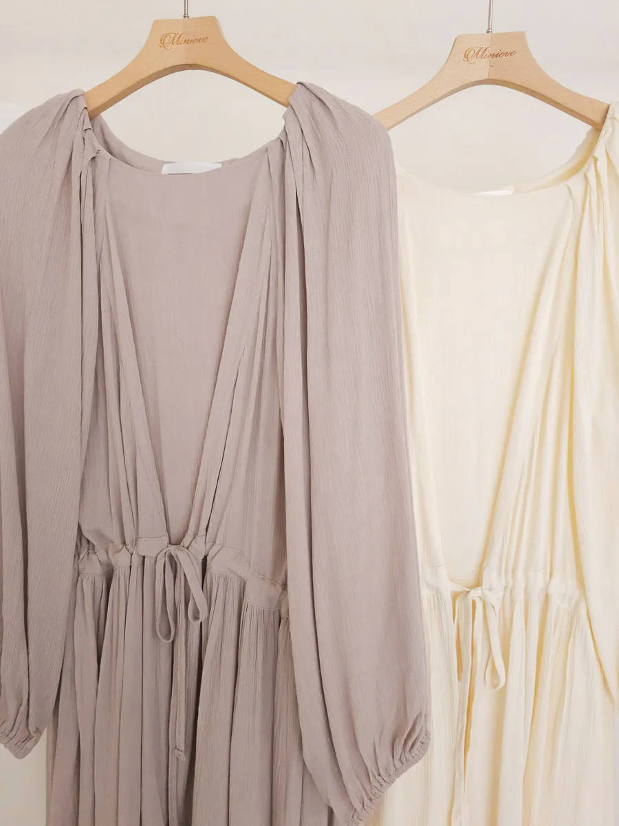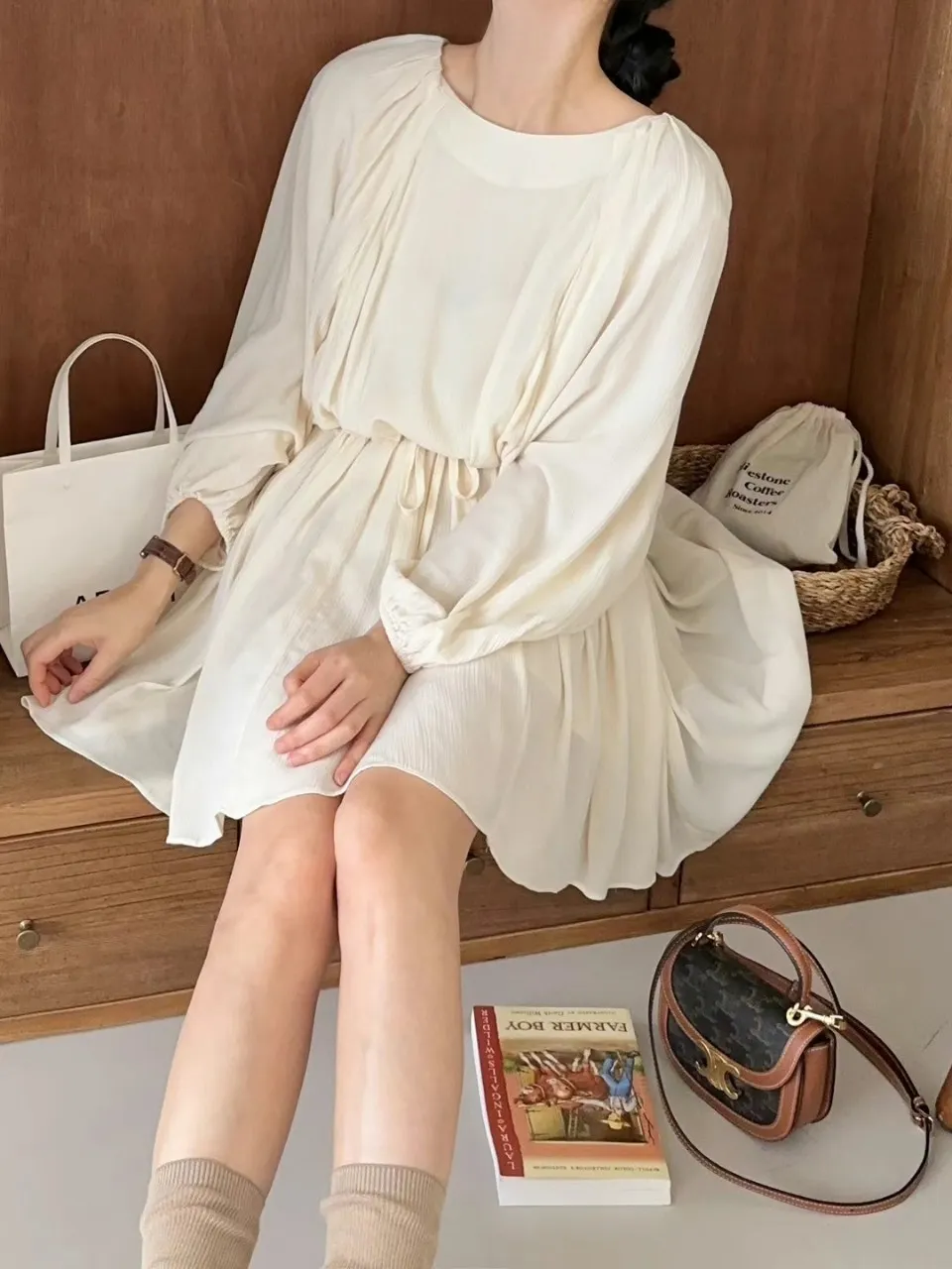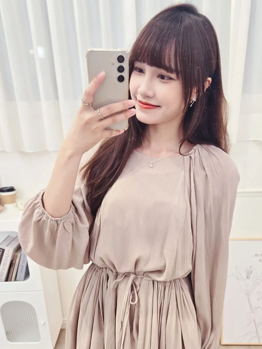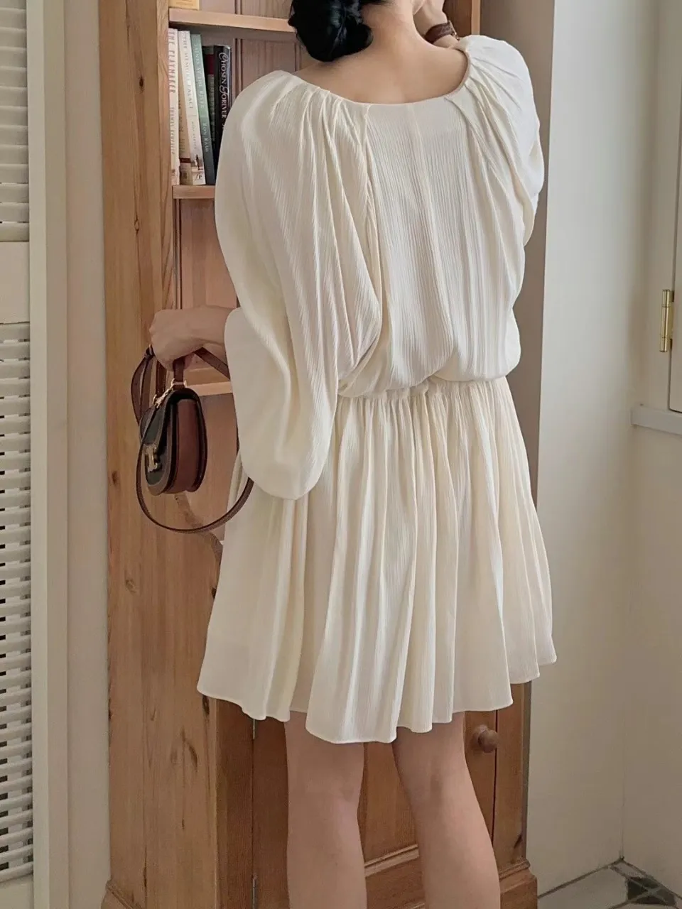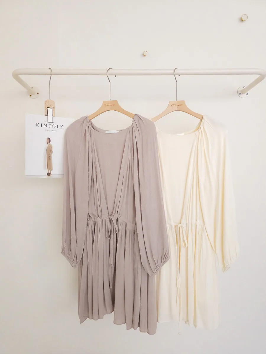 正韓 抽繩縮腰皺褶短洋裝 2色