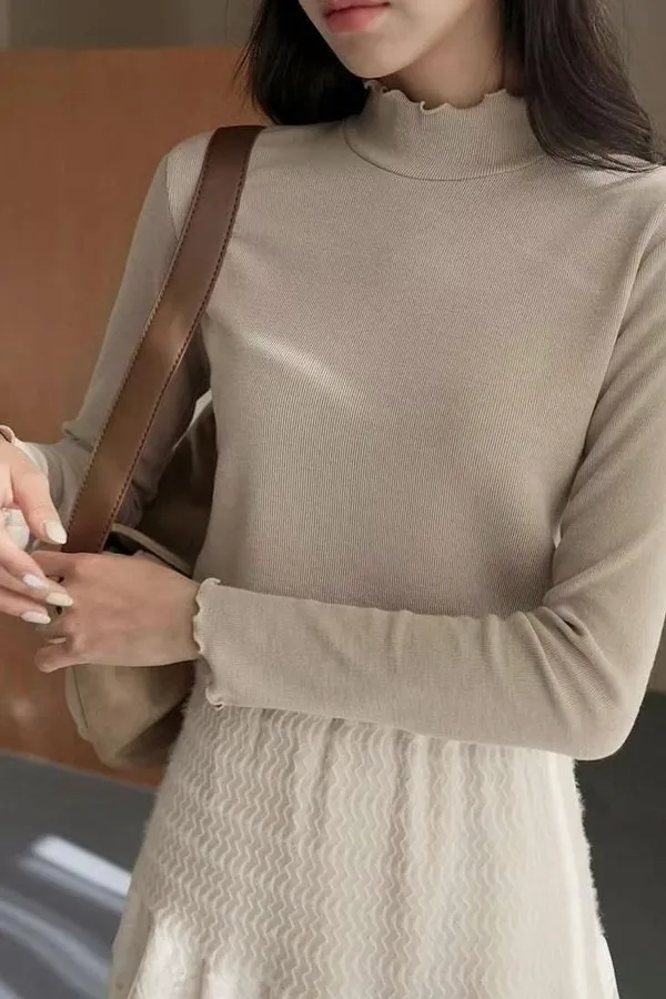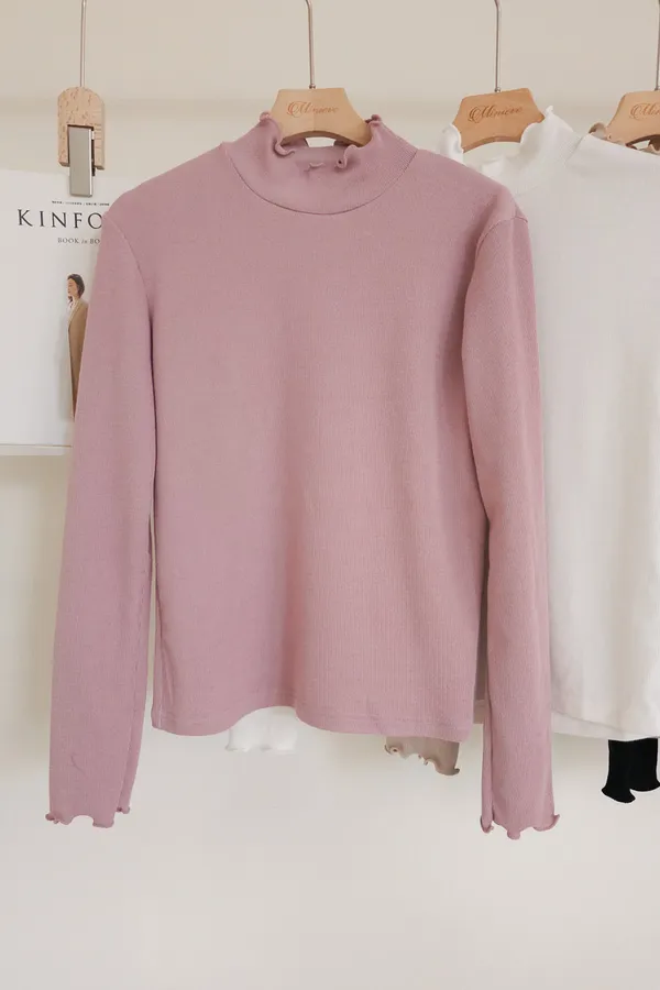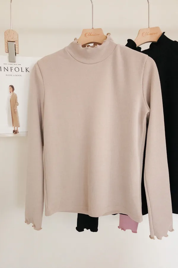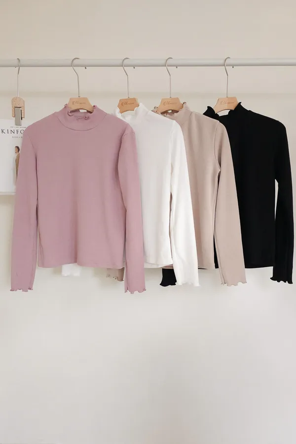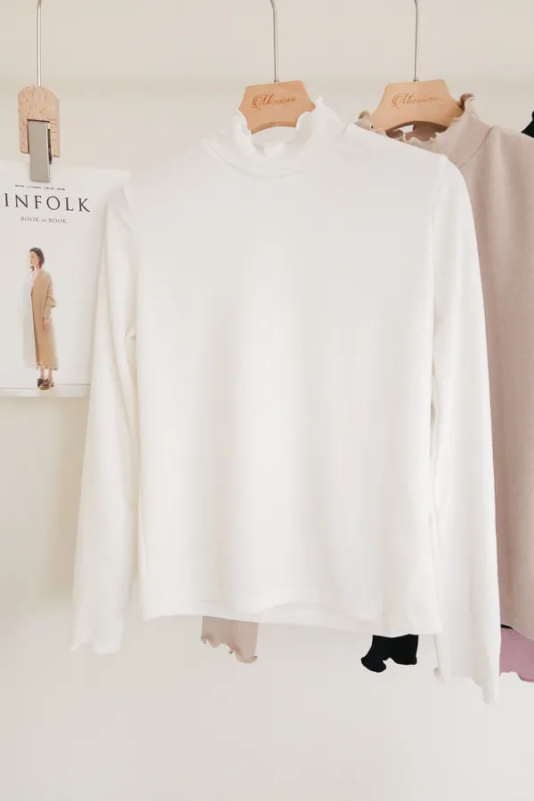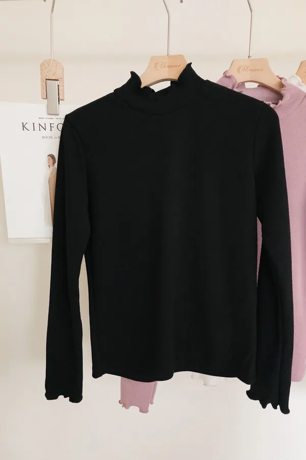 正韓 木耳捲邊微立領上衣 4色