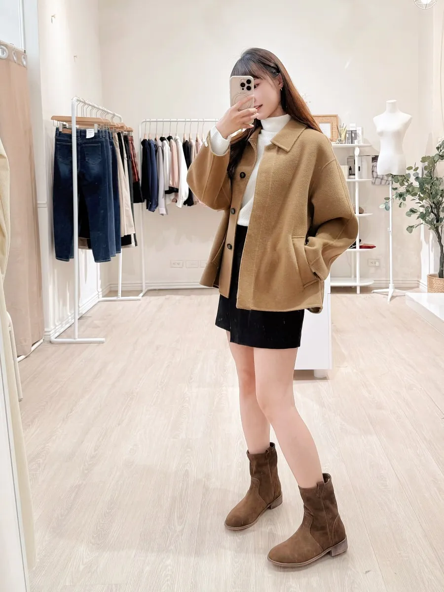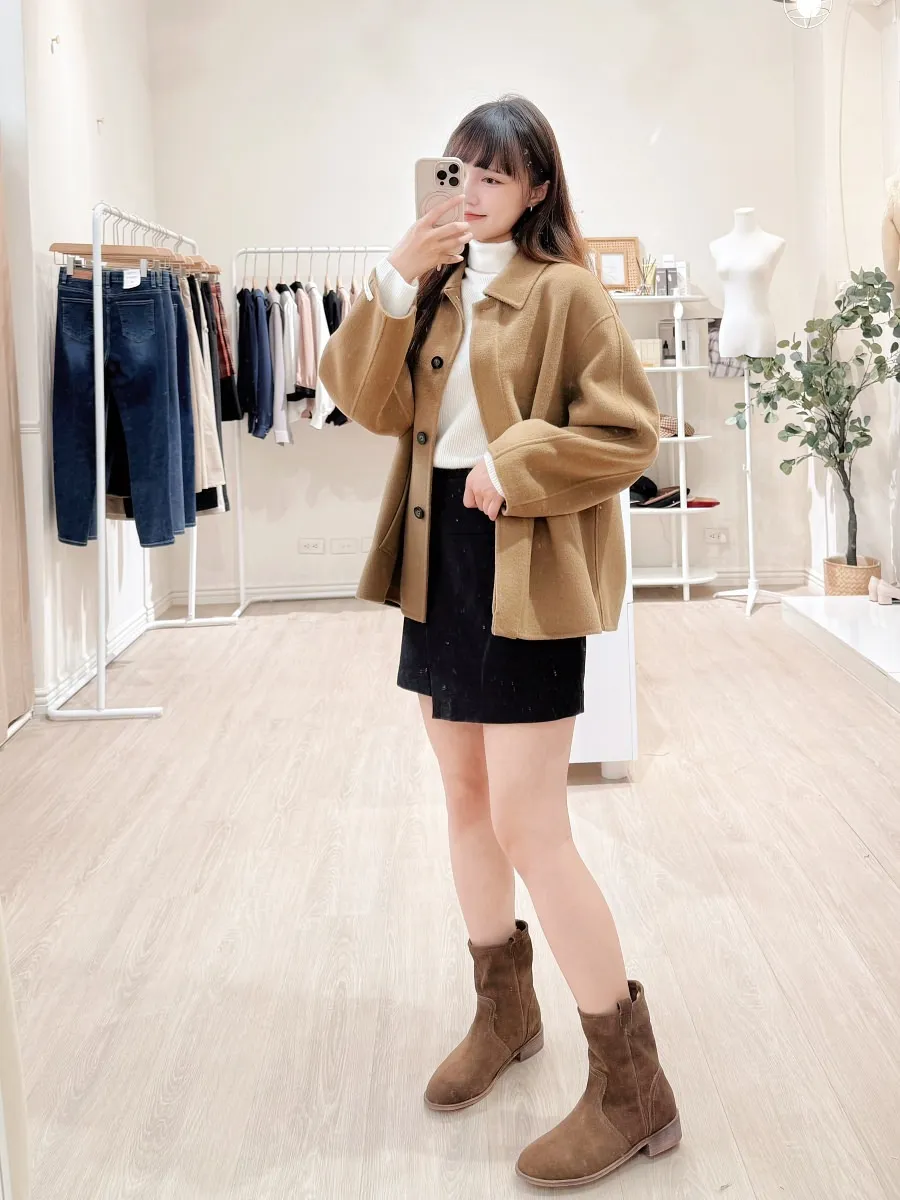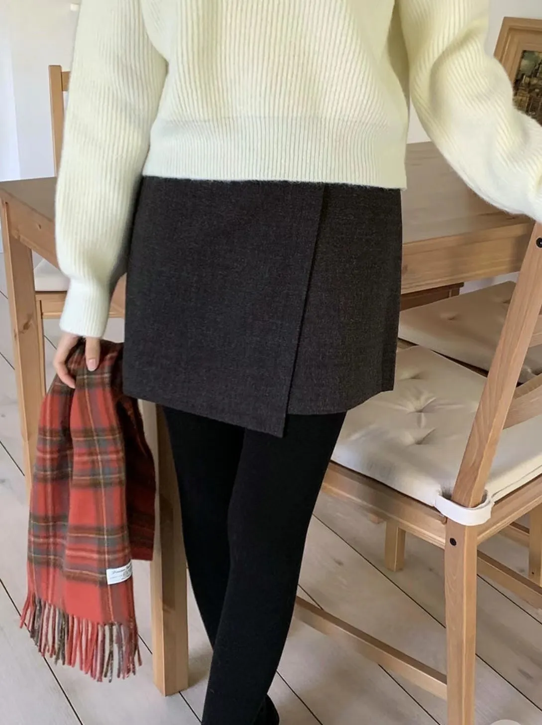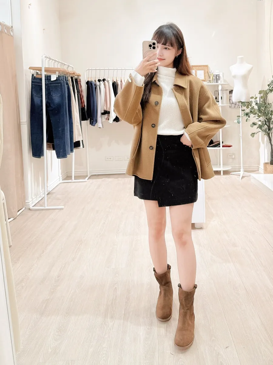 正韓 簡約側雙層毛呢短裙 2色
