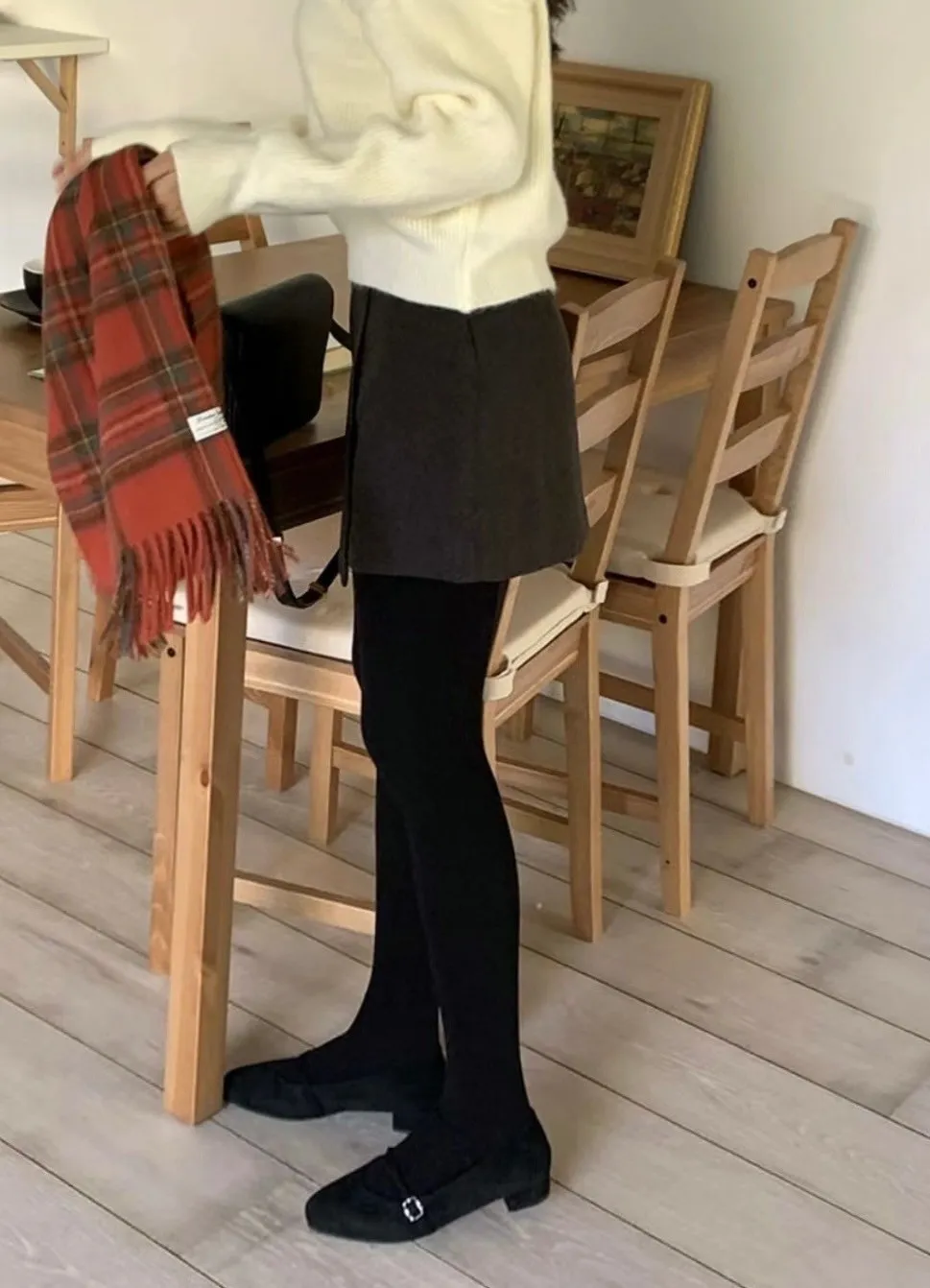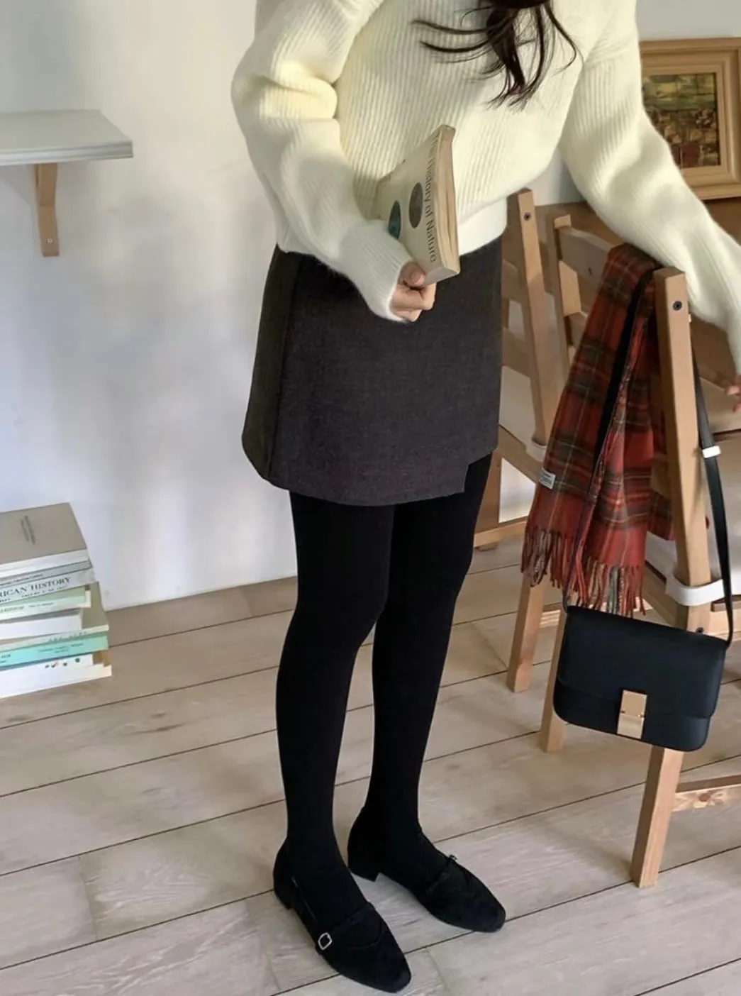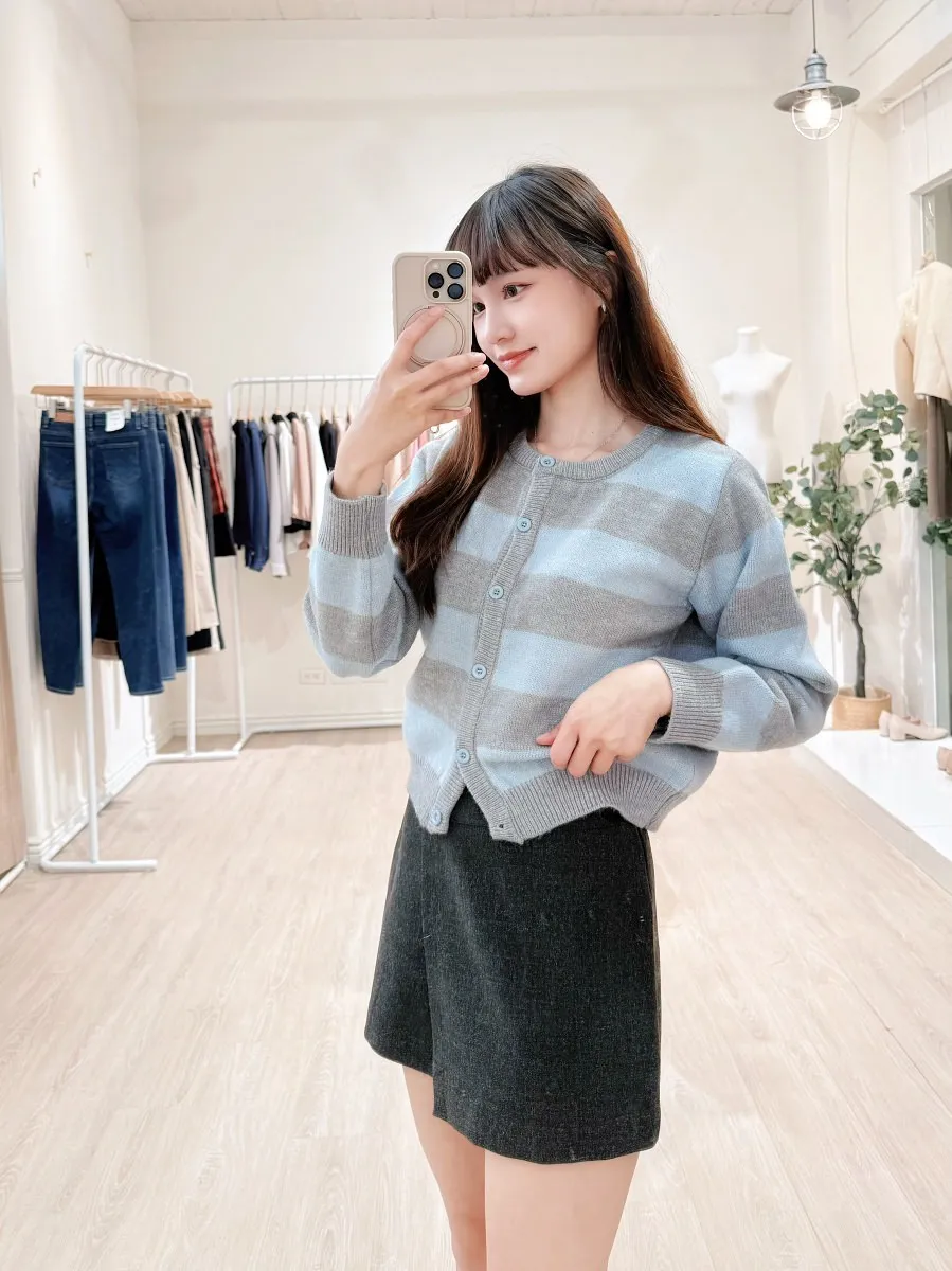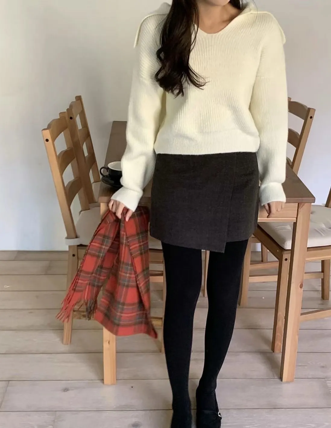 正韓 簡約側雙層毛呢短裙 2色