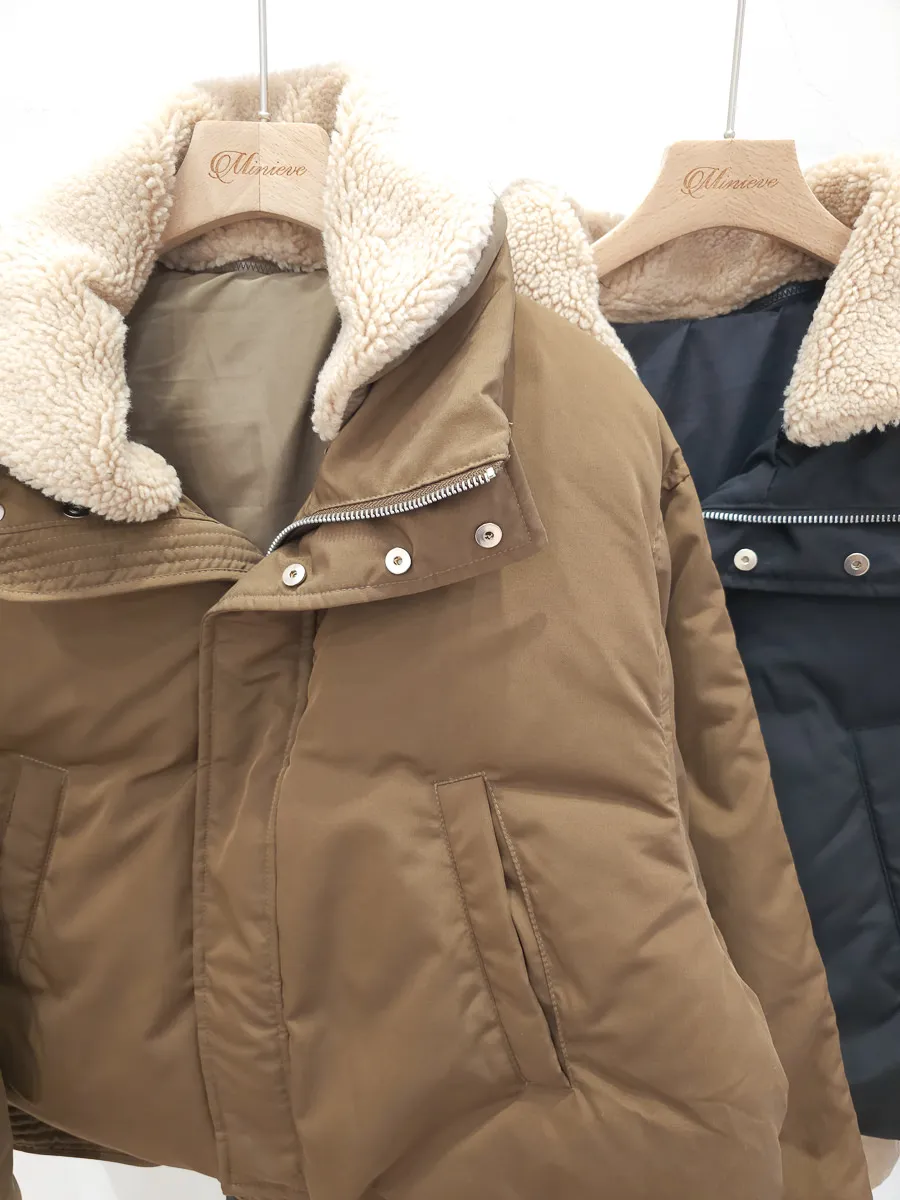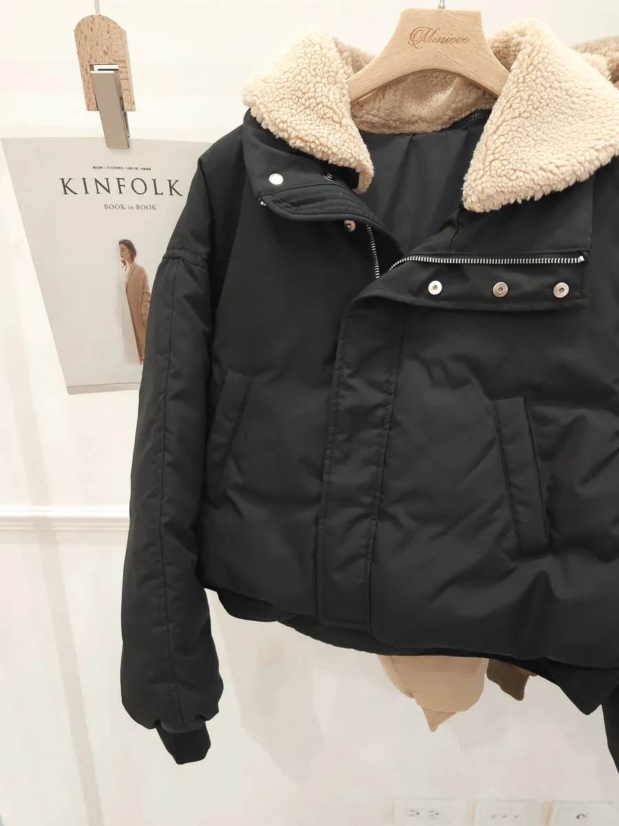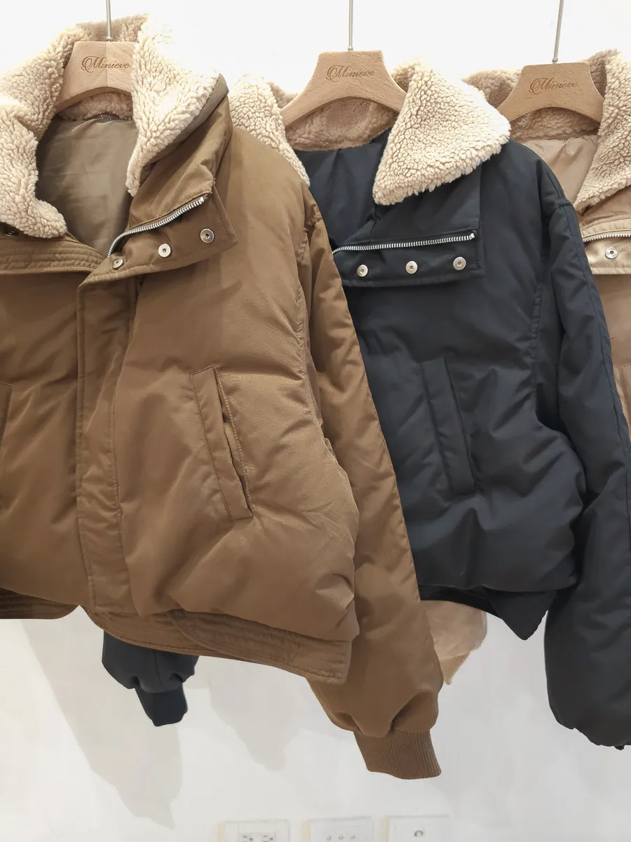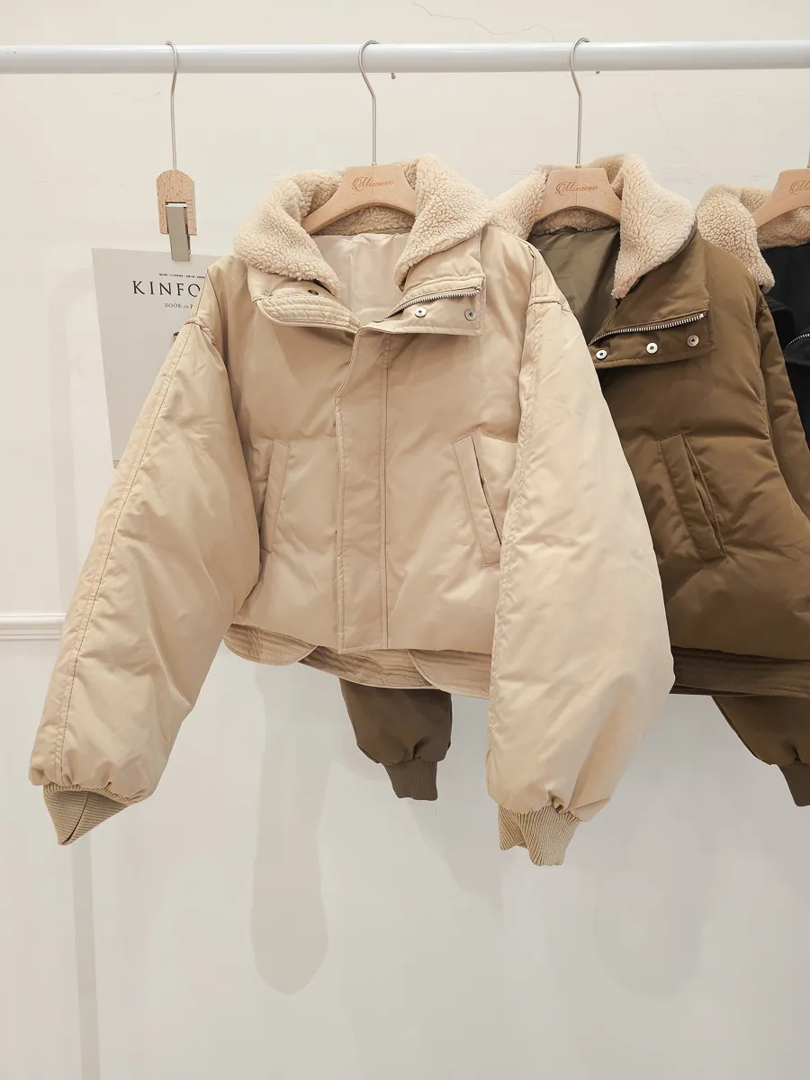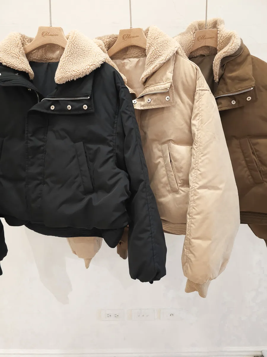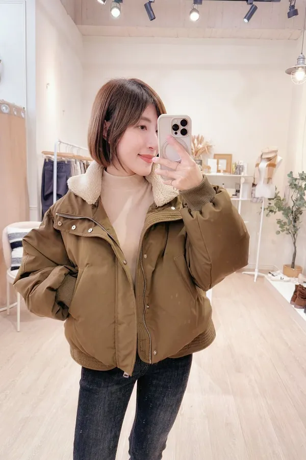 正韓 可拆毛領90%羽絨飛行夾克外套 3色