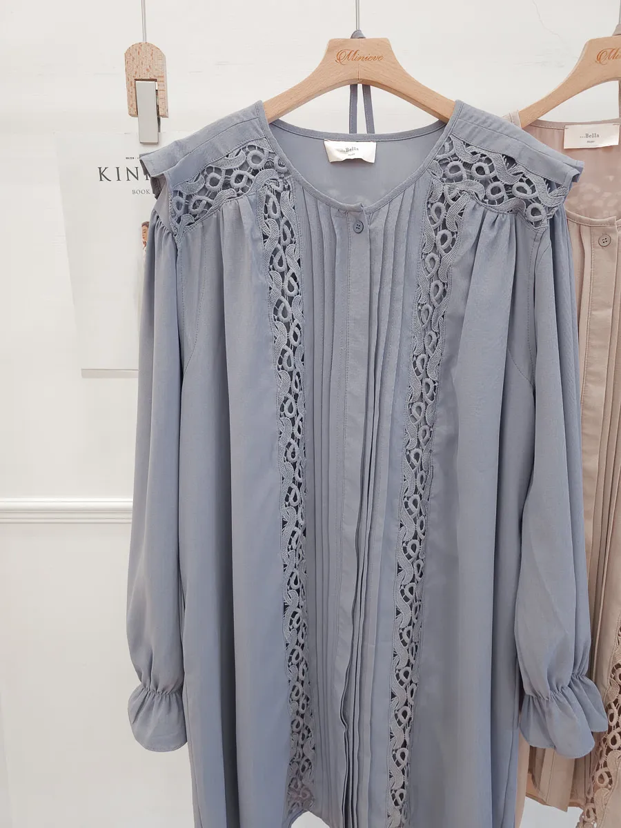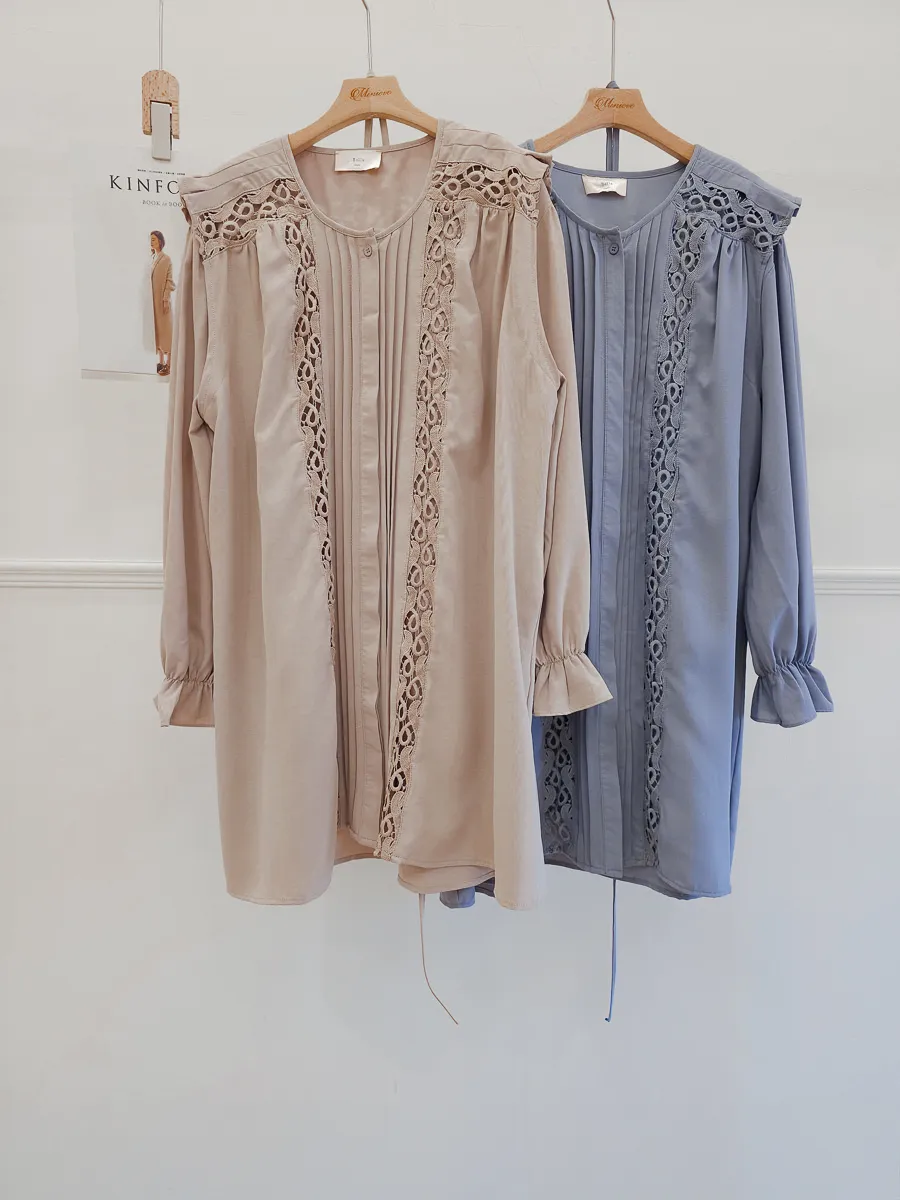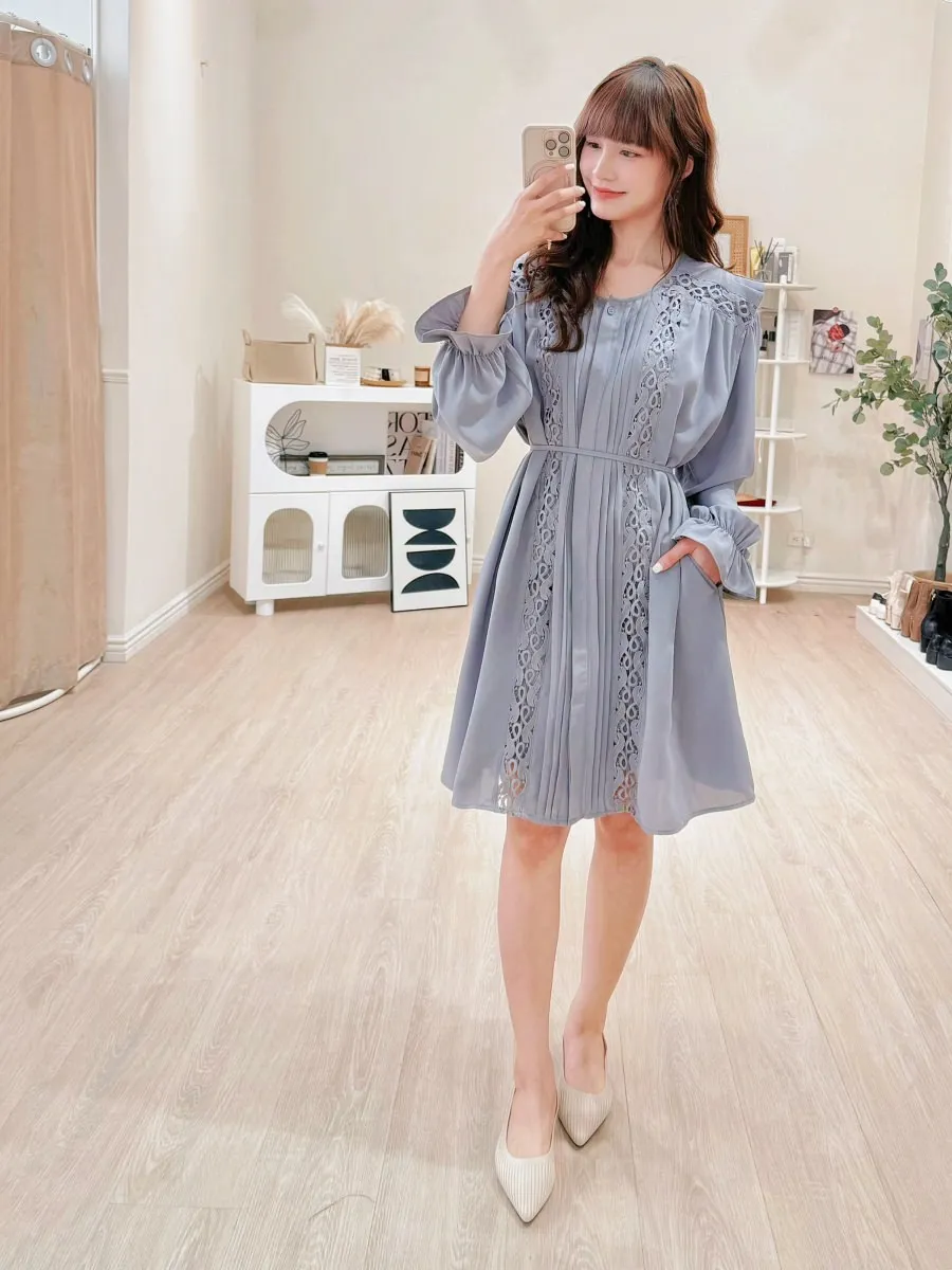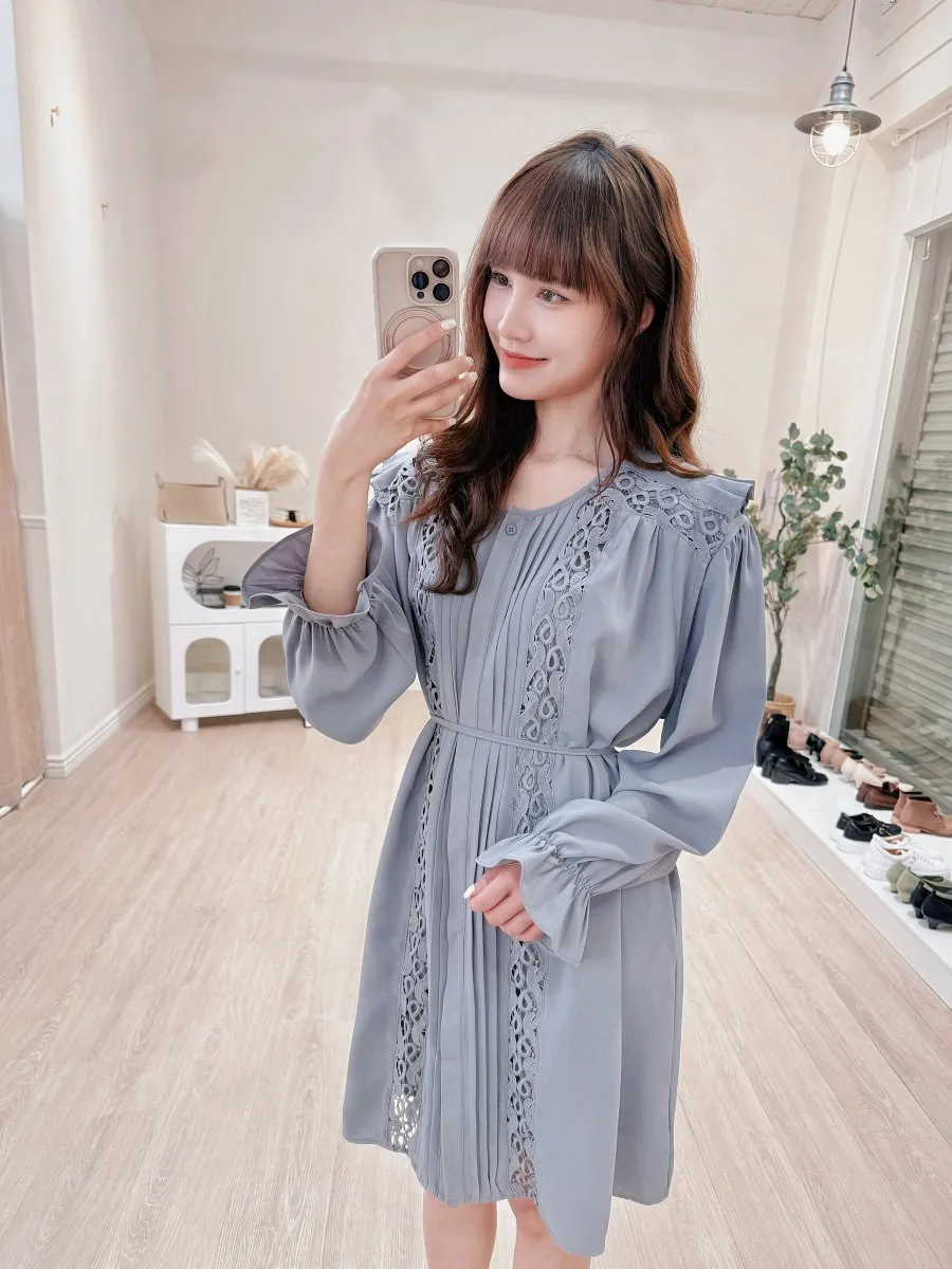 訂製款 細摺蕾絲綁帶洋裝 2色