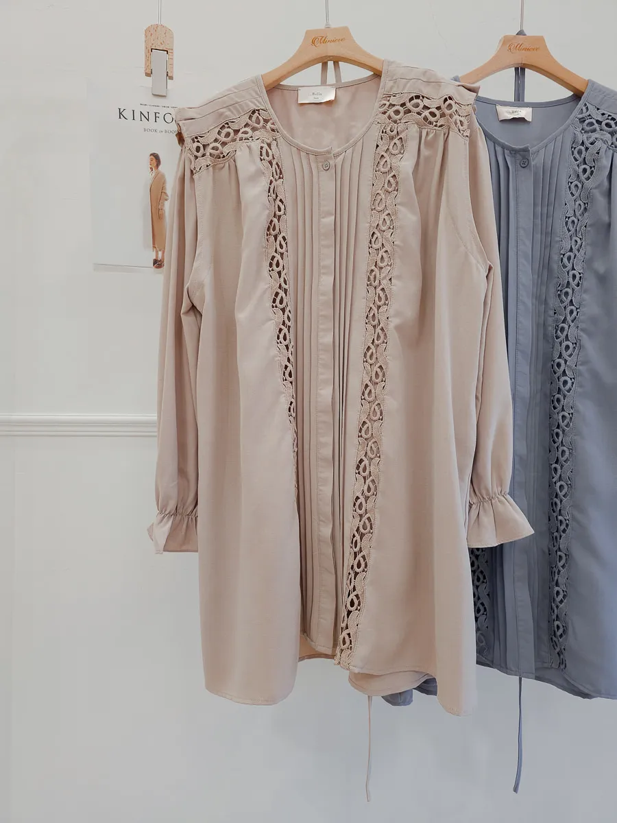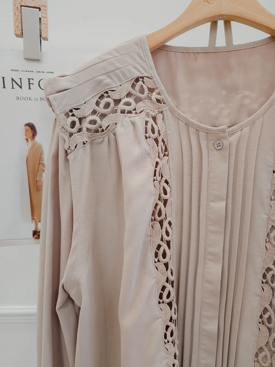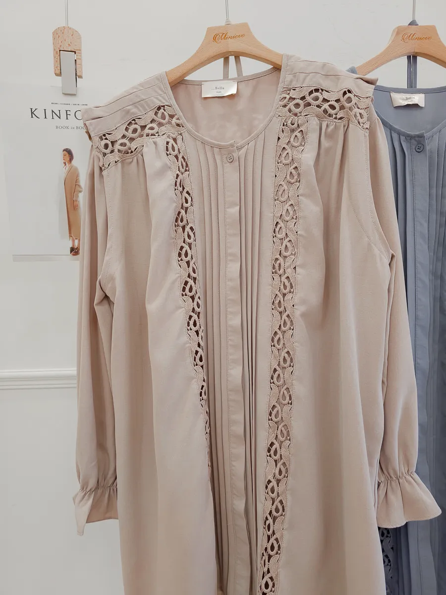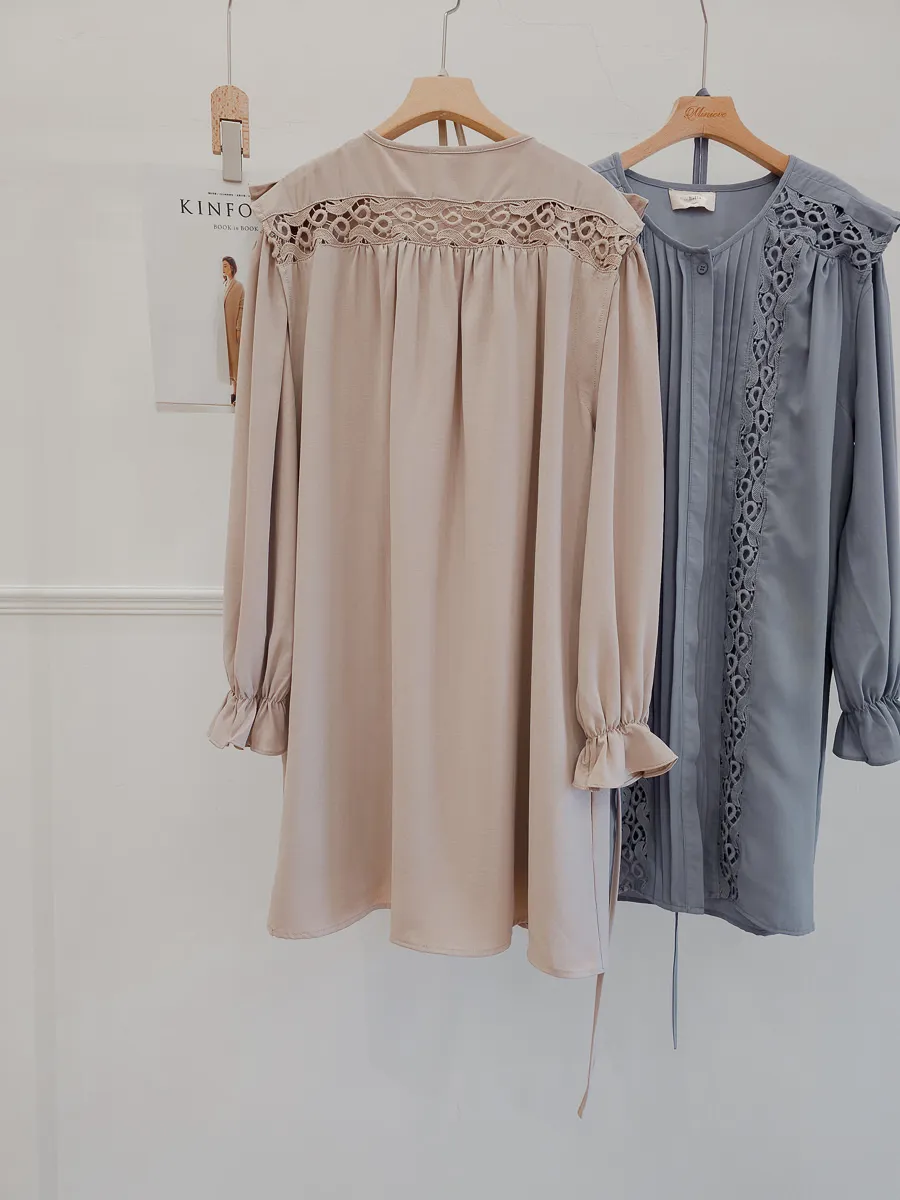 訂製款 細摺蕾絲綁帶洋裝 2色