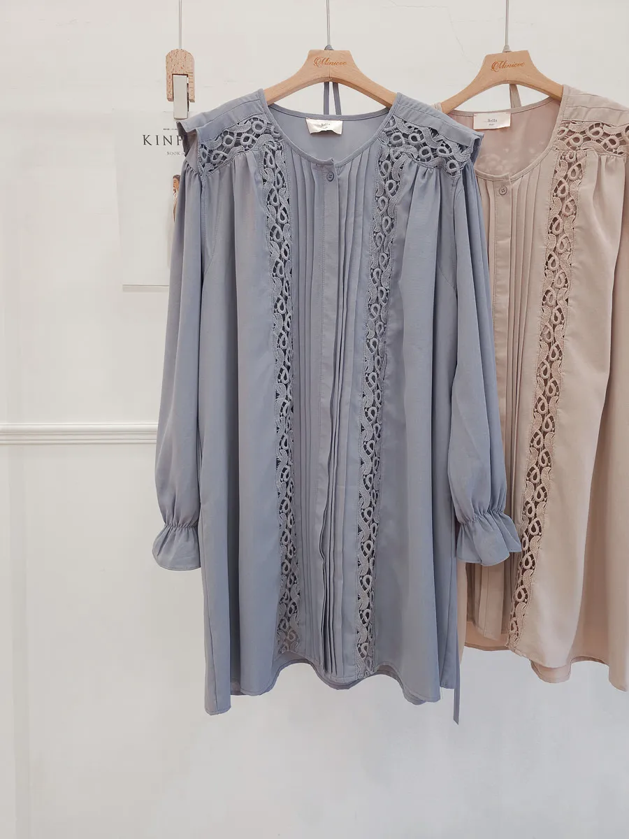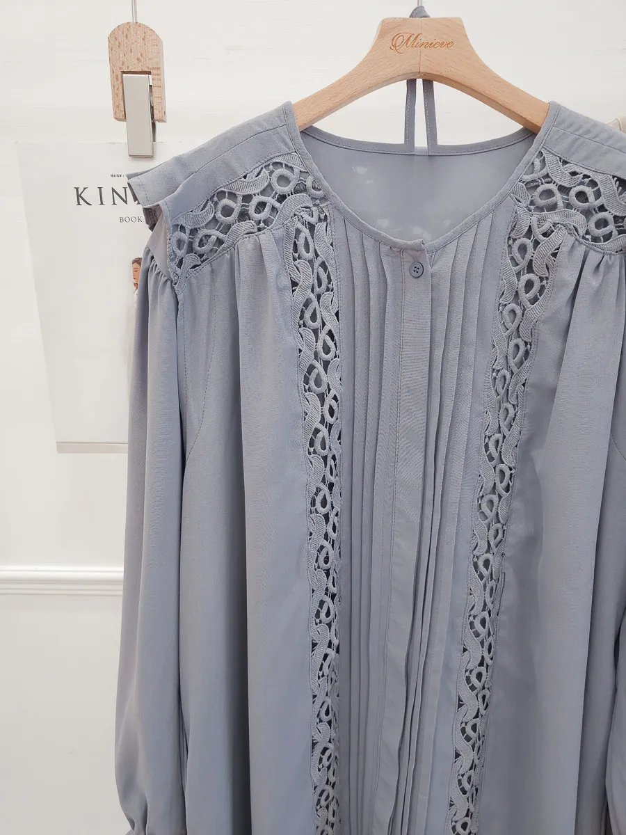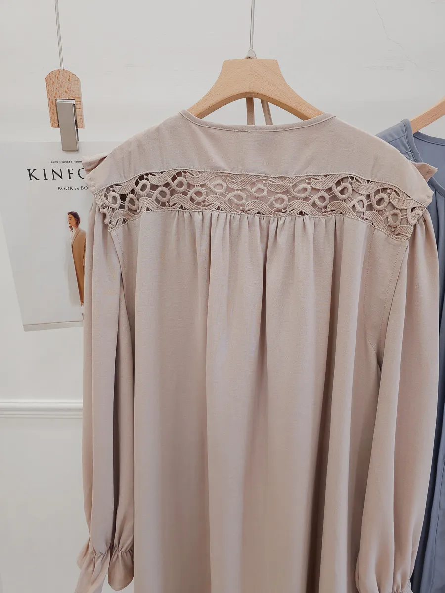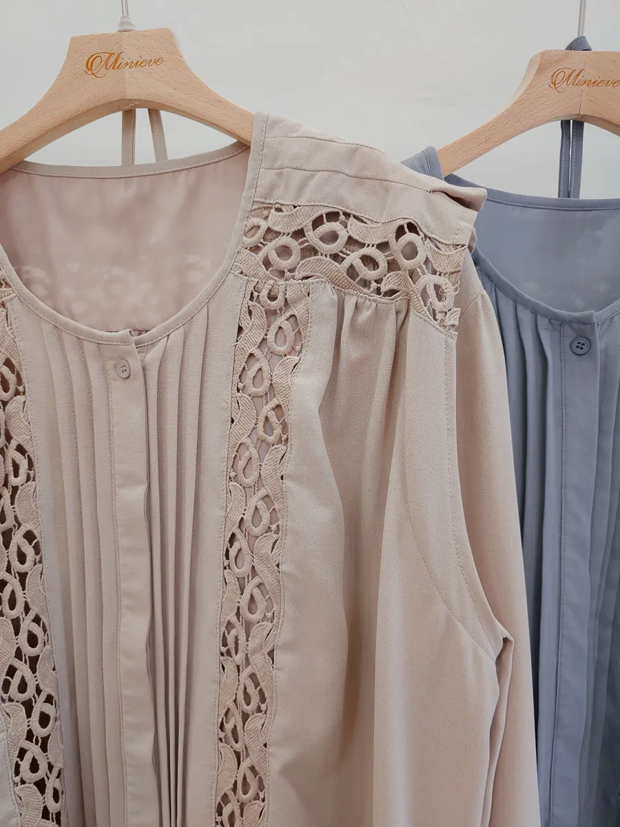 訂製款 細摺蕾絲綁帶洋裝 2色
