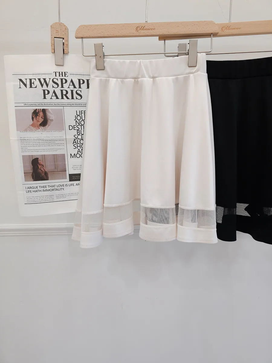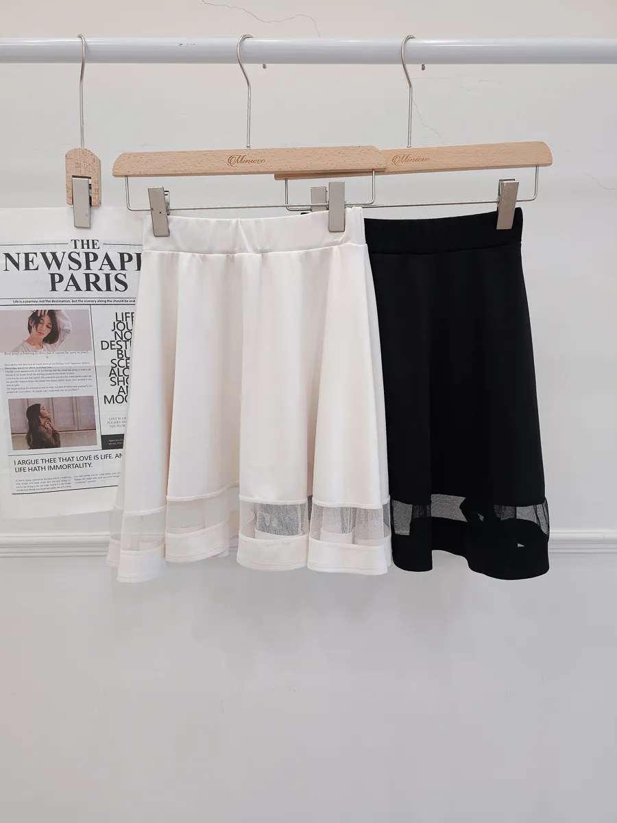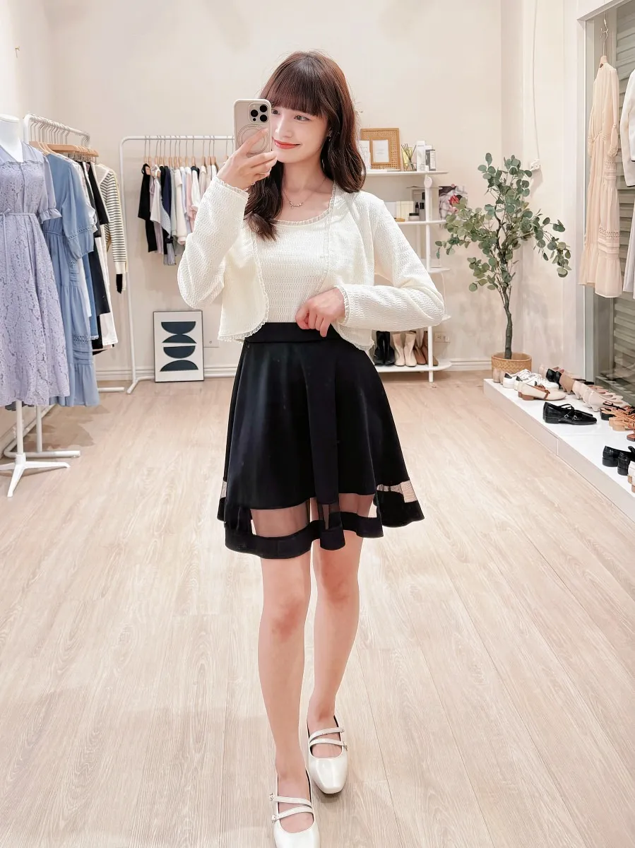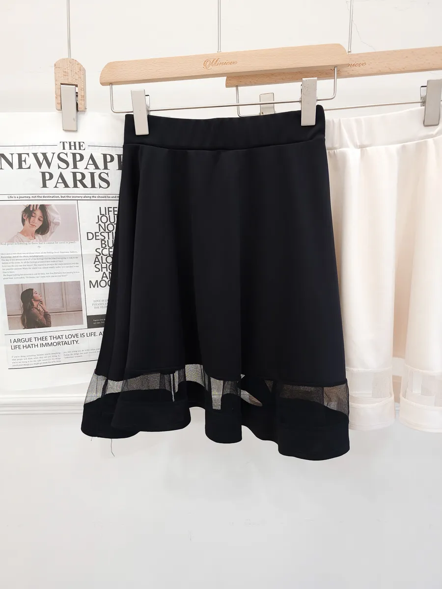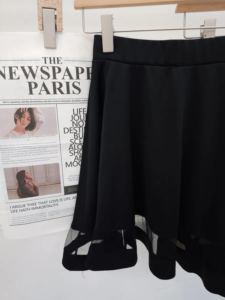正韓 拼接透紗波浪短裙 2色