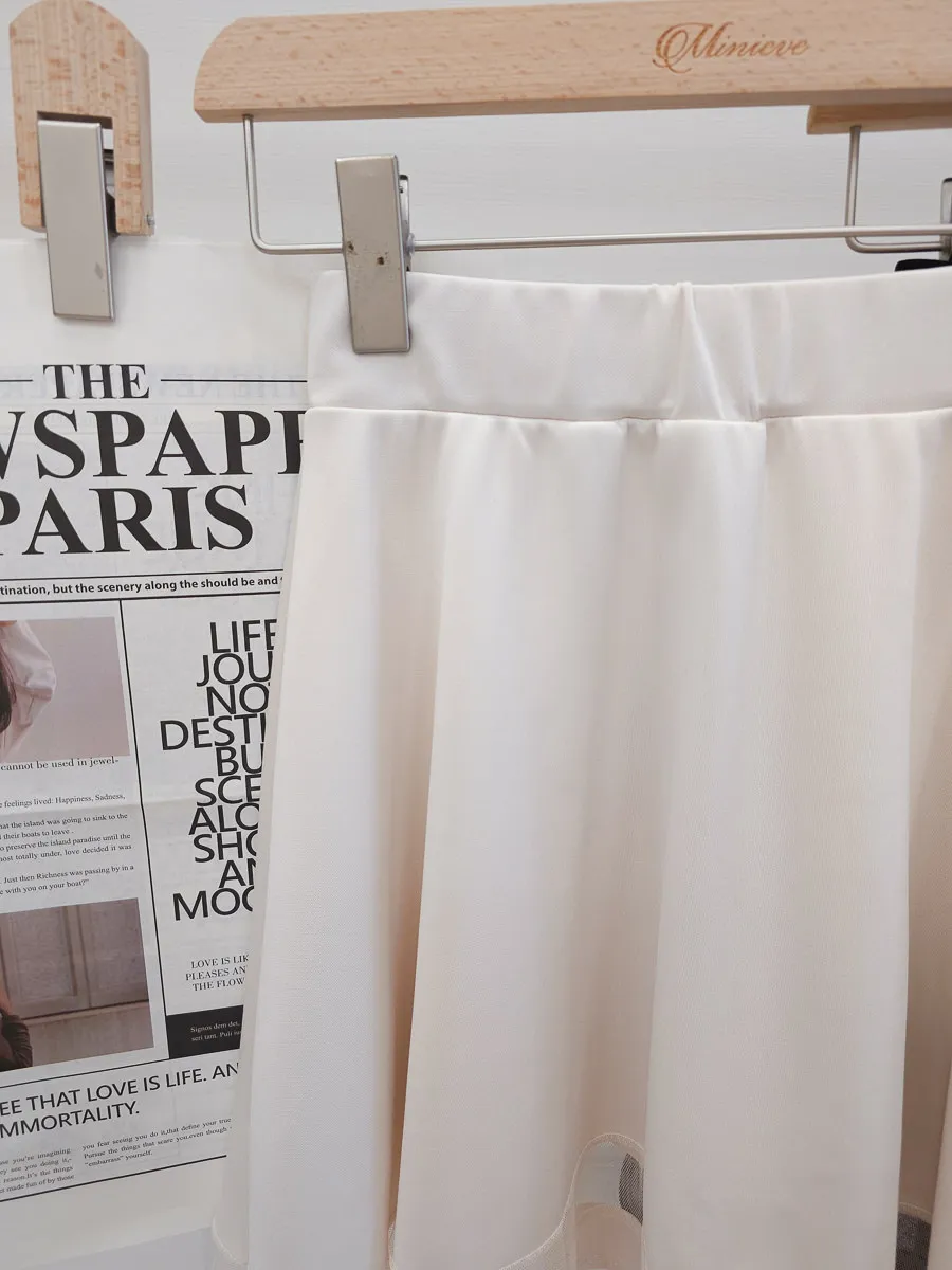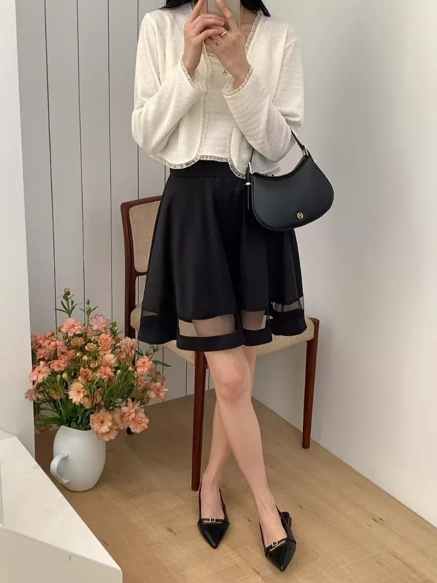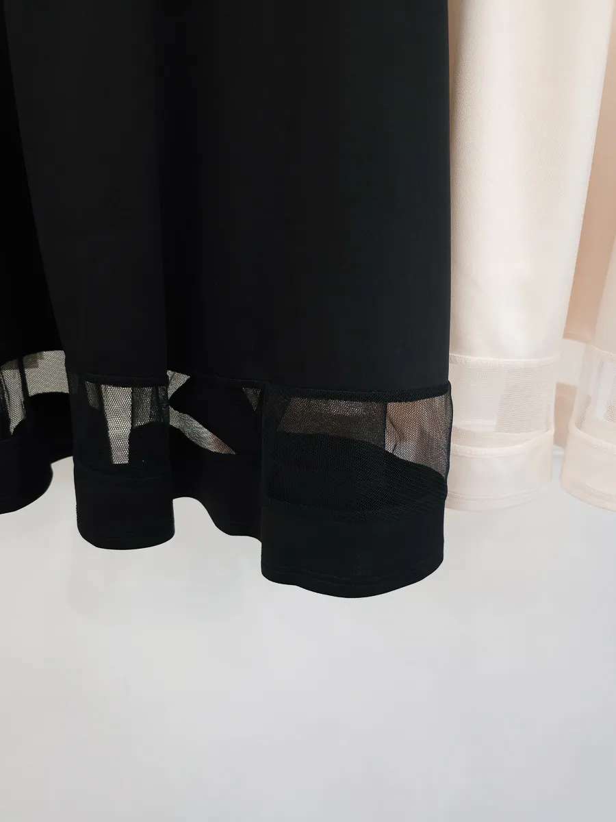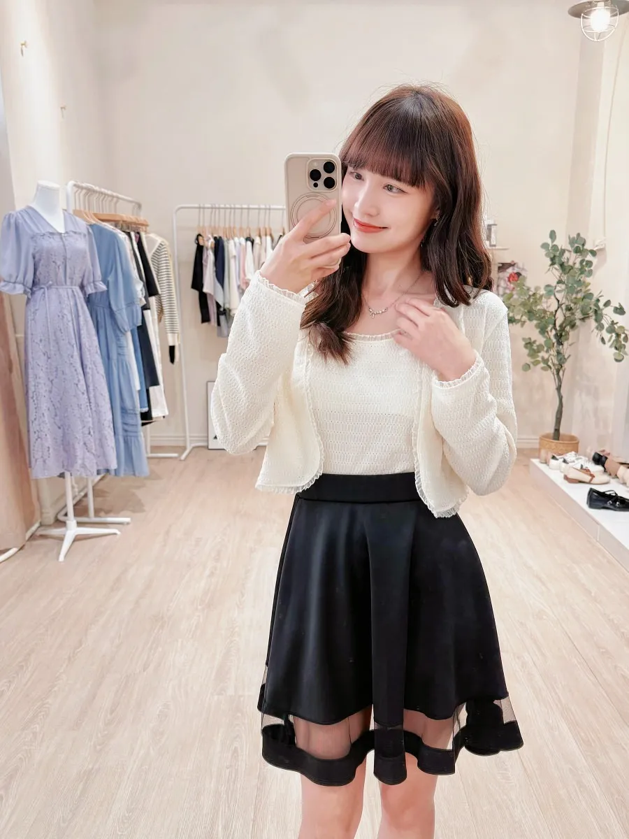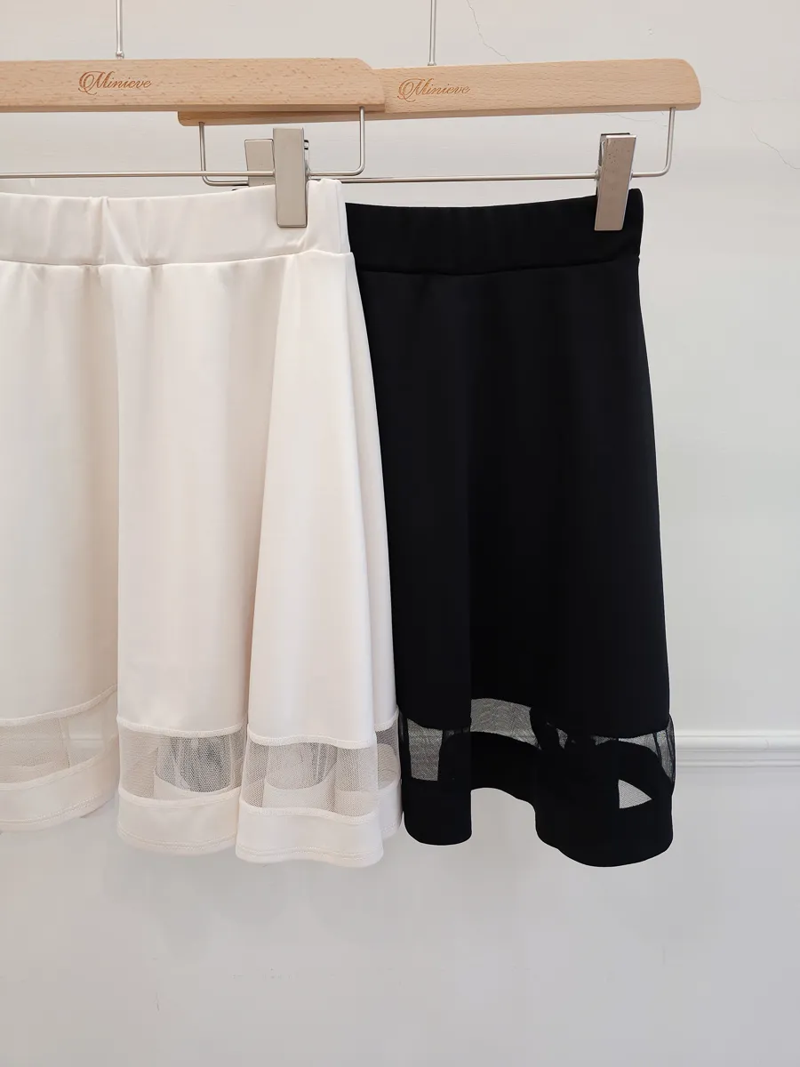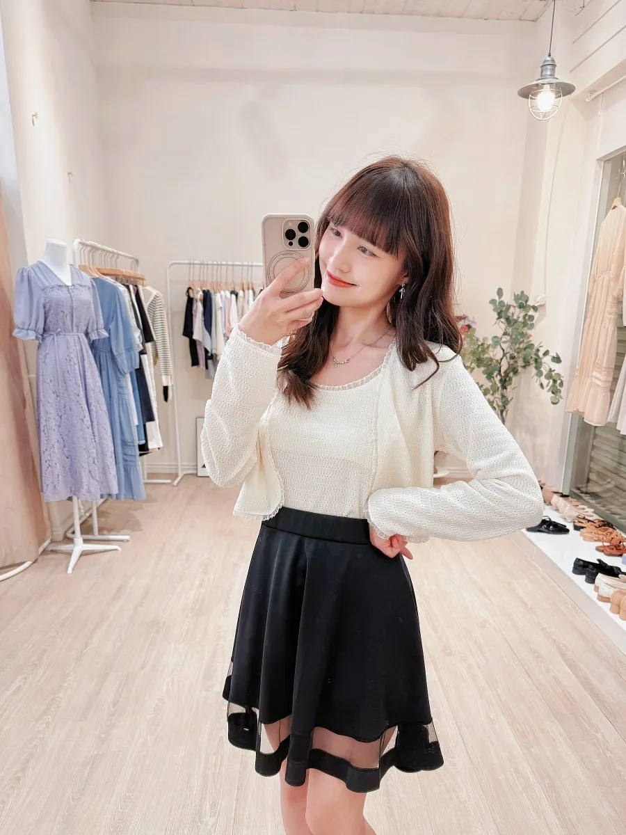正韓 拼接透紗波浪短裙 2色