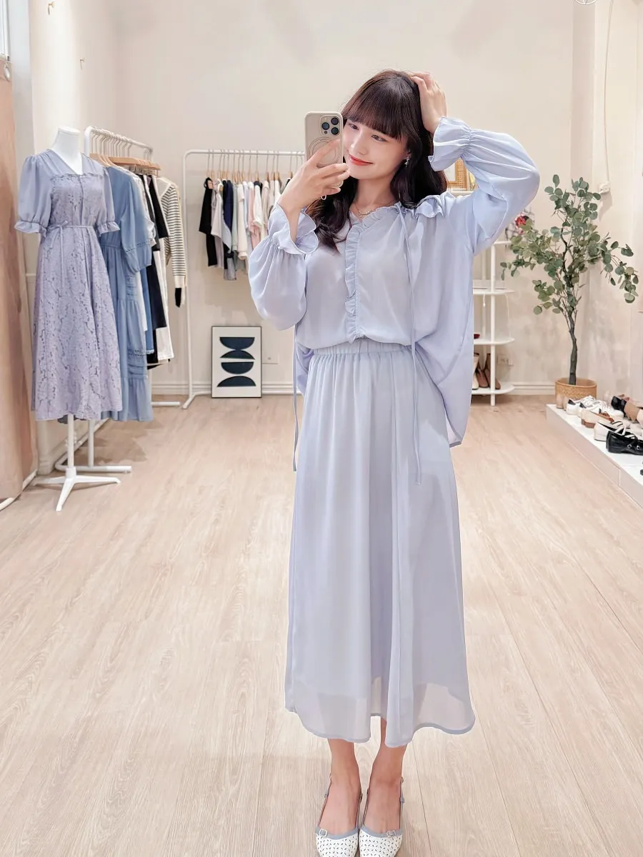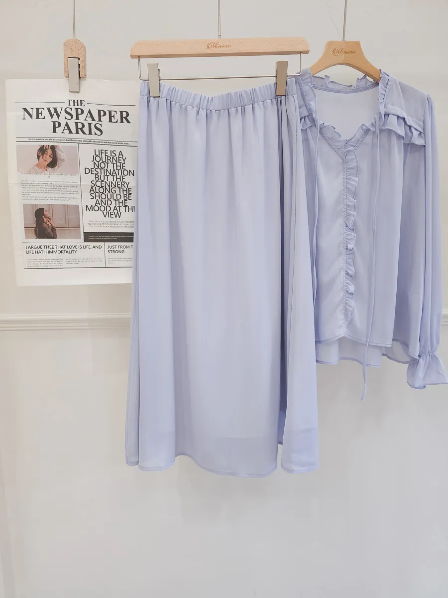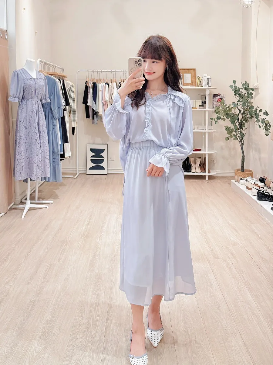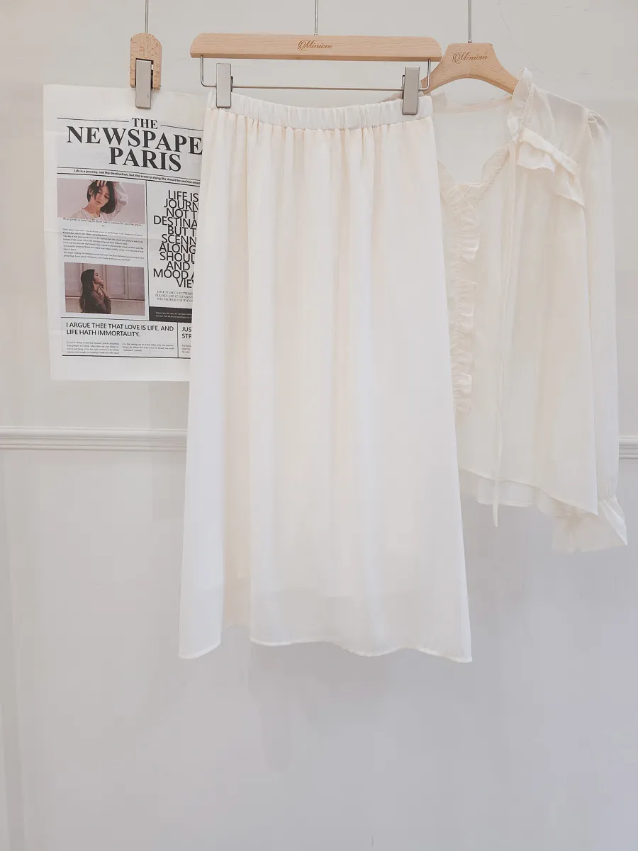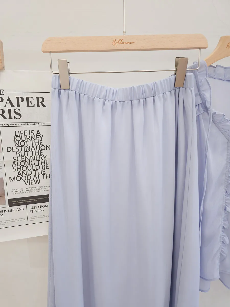 正韓 波浪皺摺雪紡中裙Set 2色