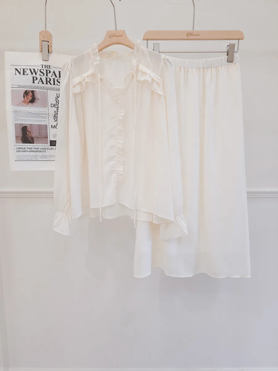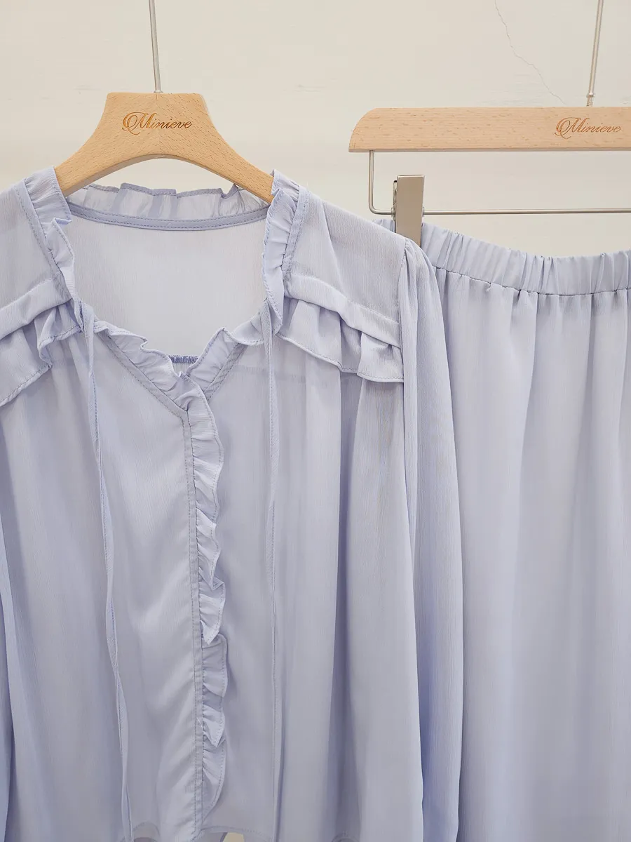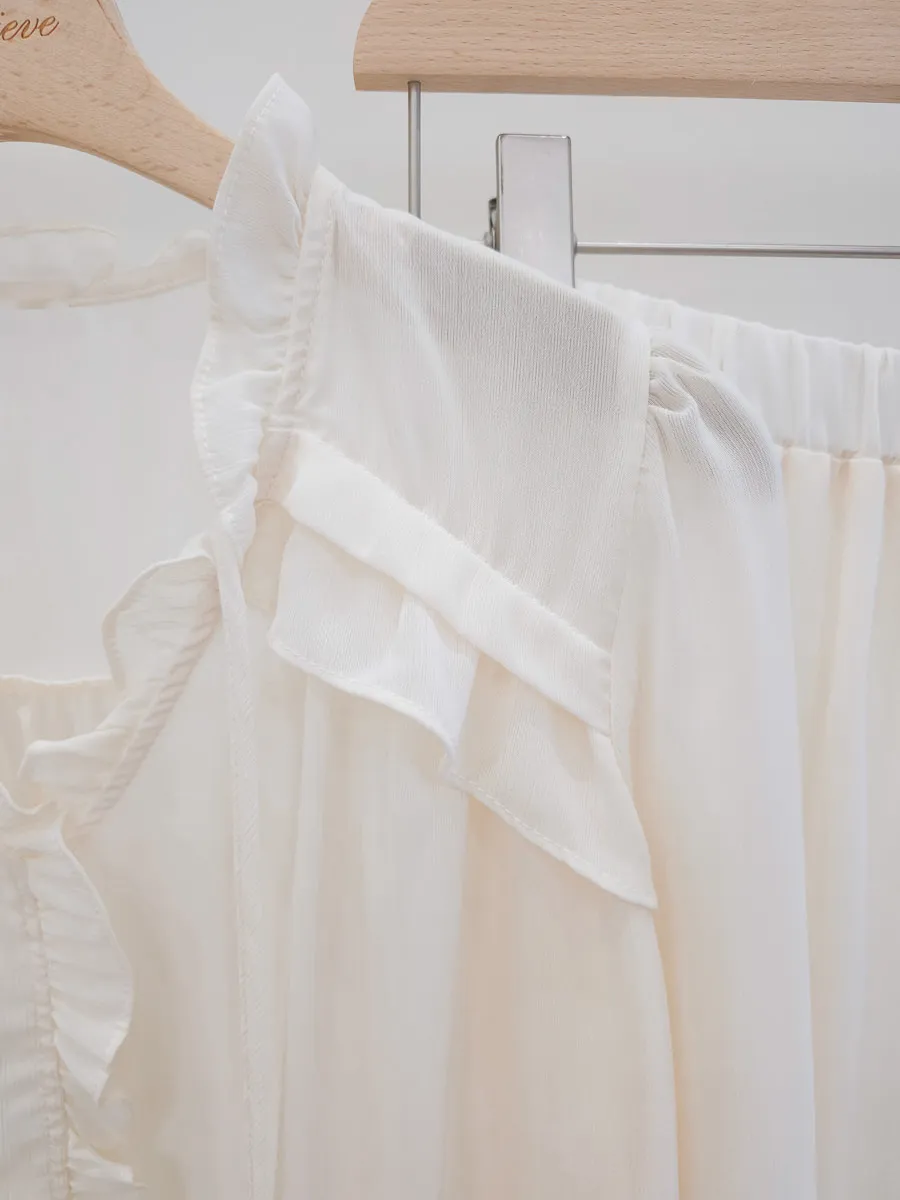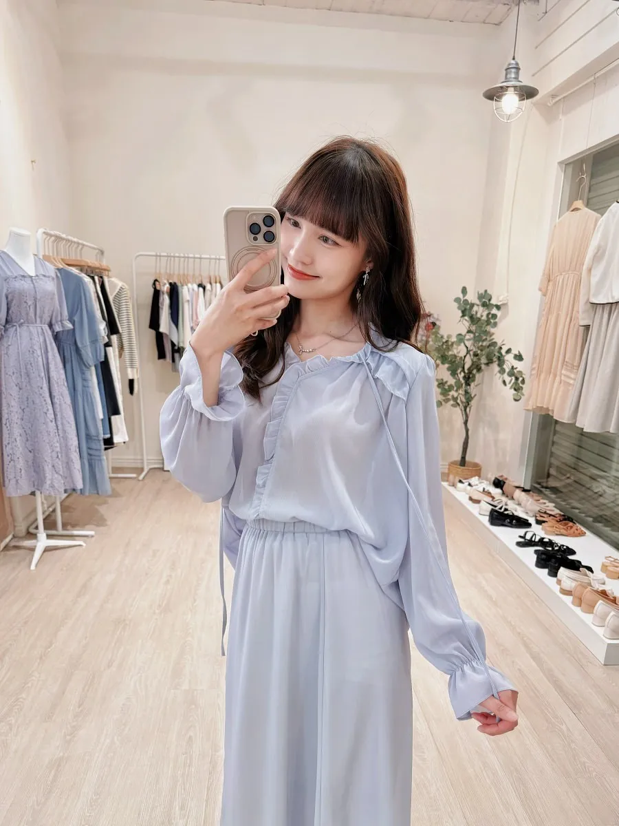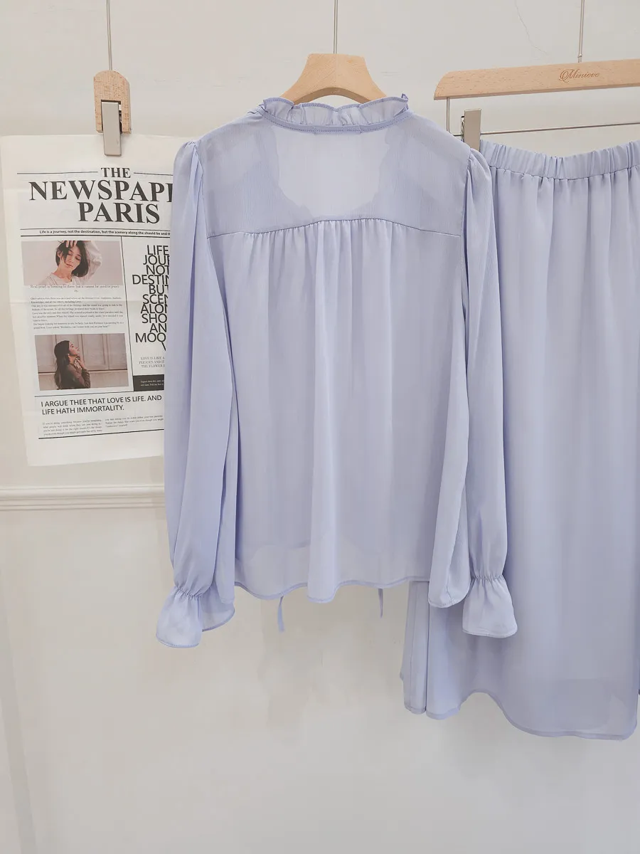 正韓 波浪皺摺雪紡中裙Set 2色