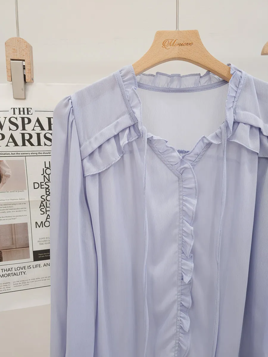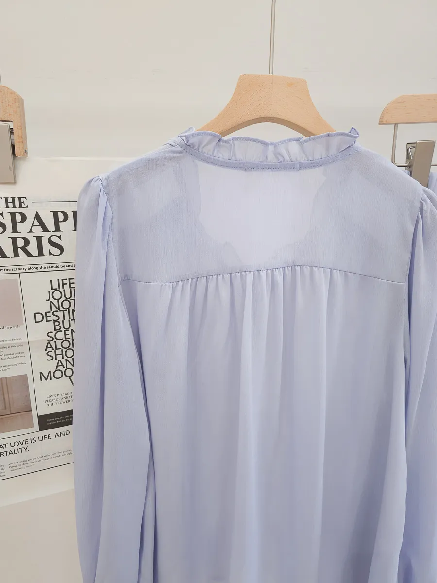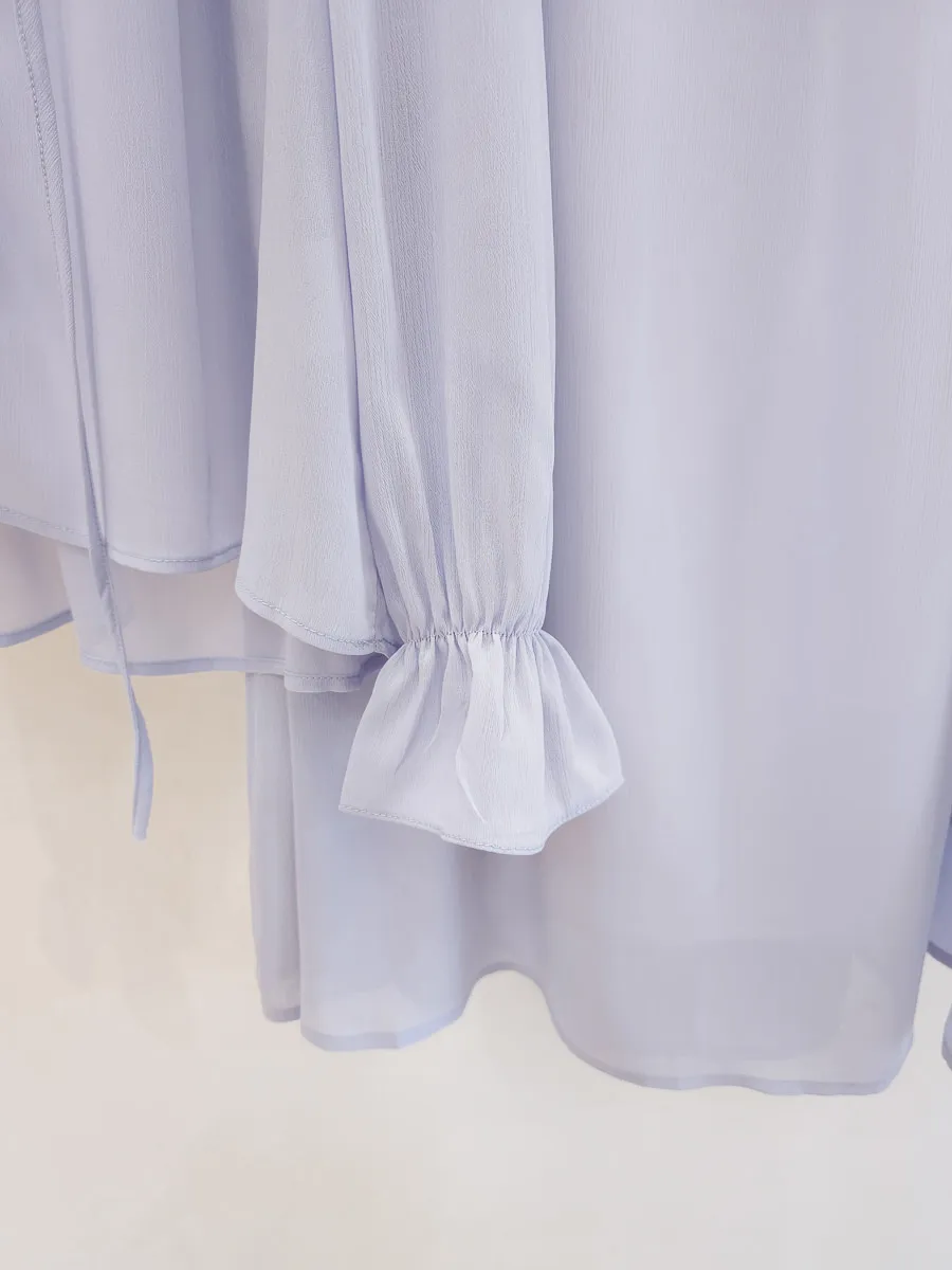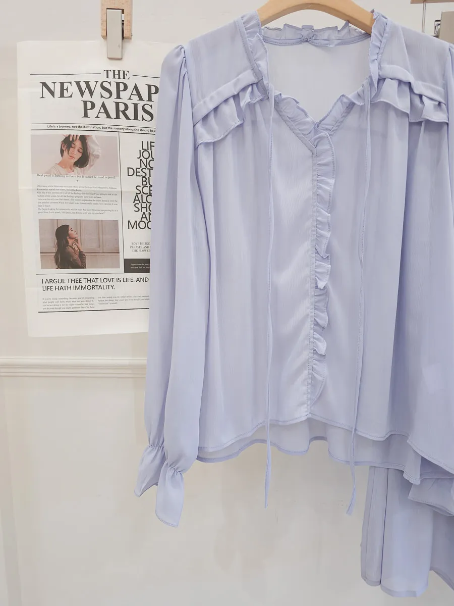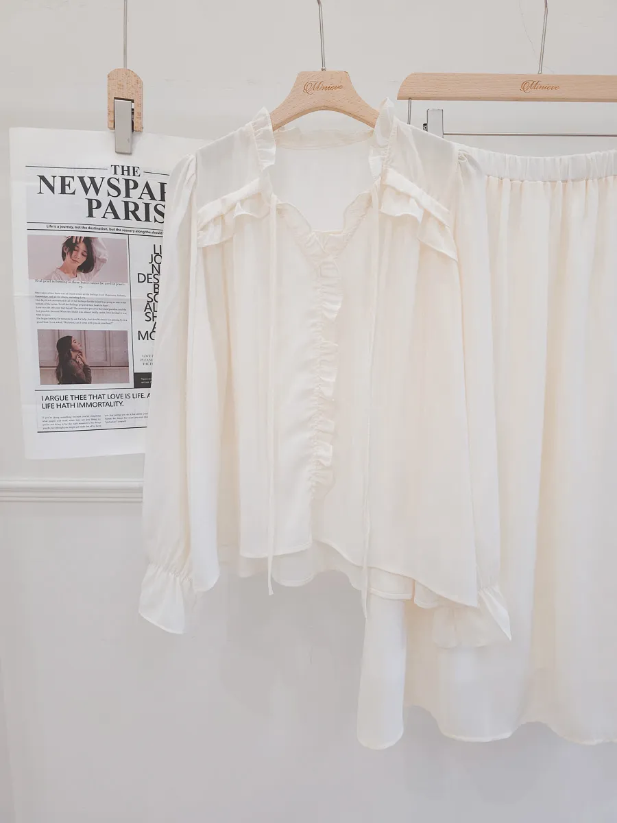 正韓 波浪皺摺雪紡中裙Set 2色