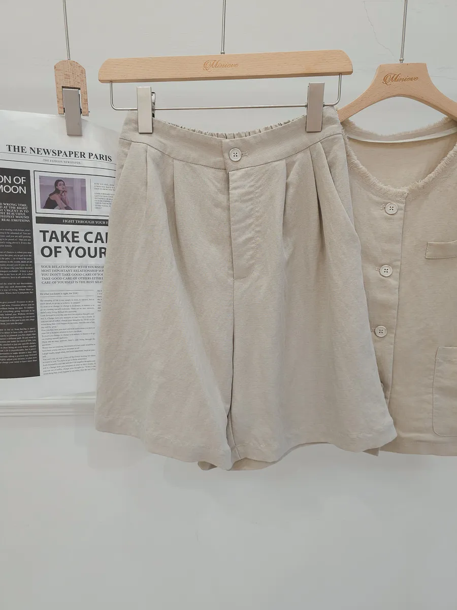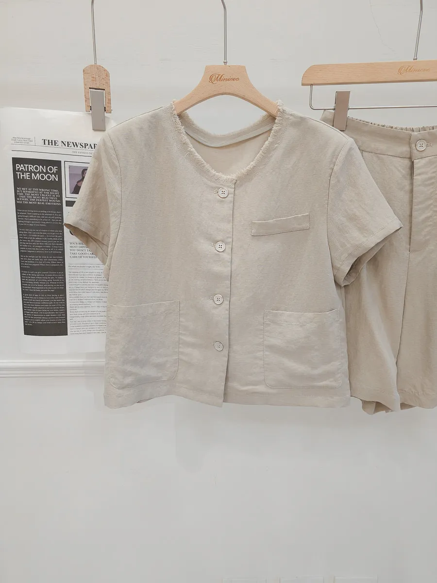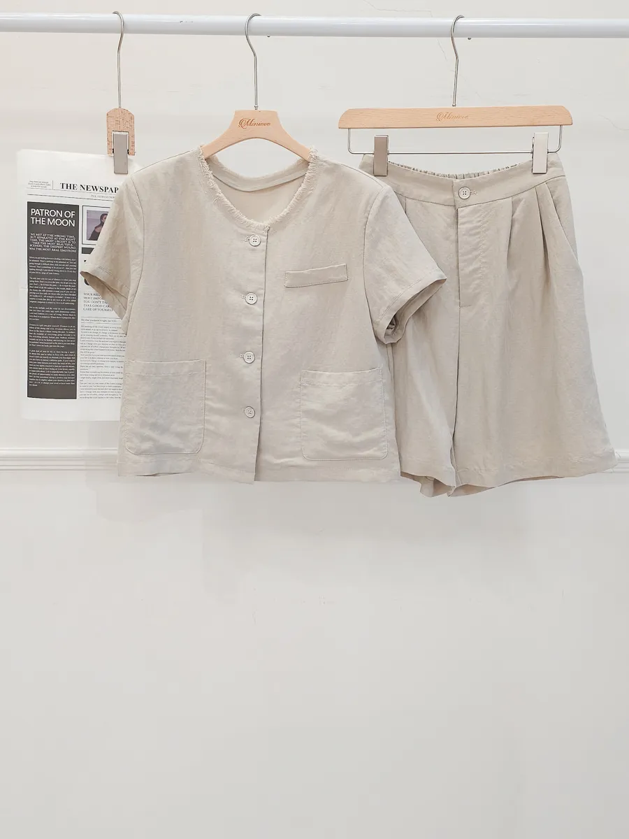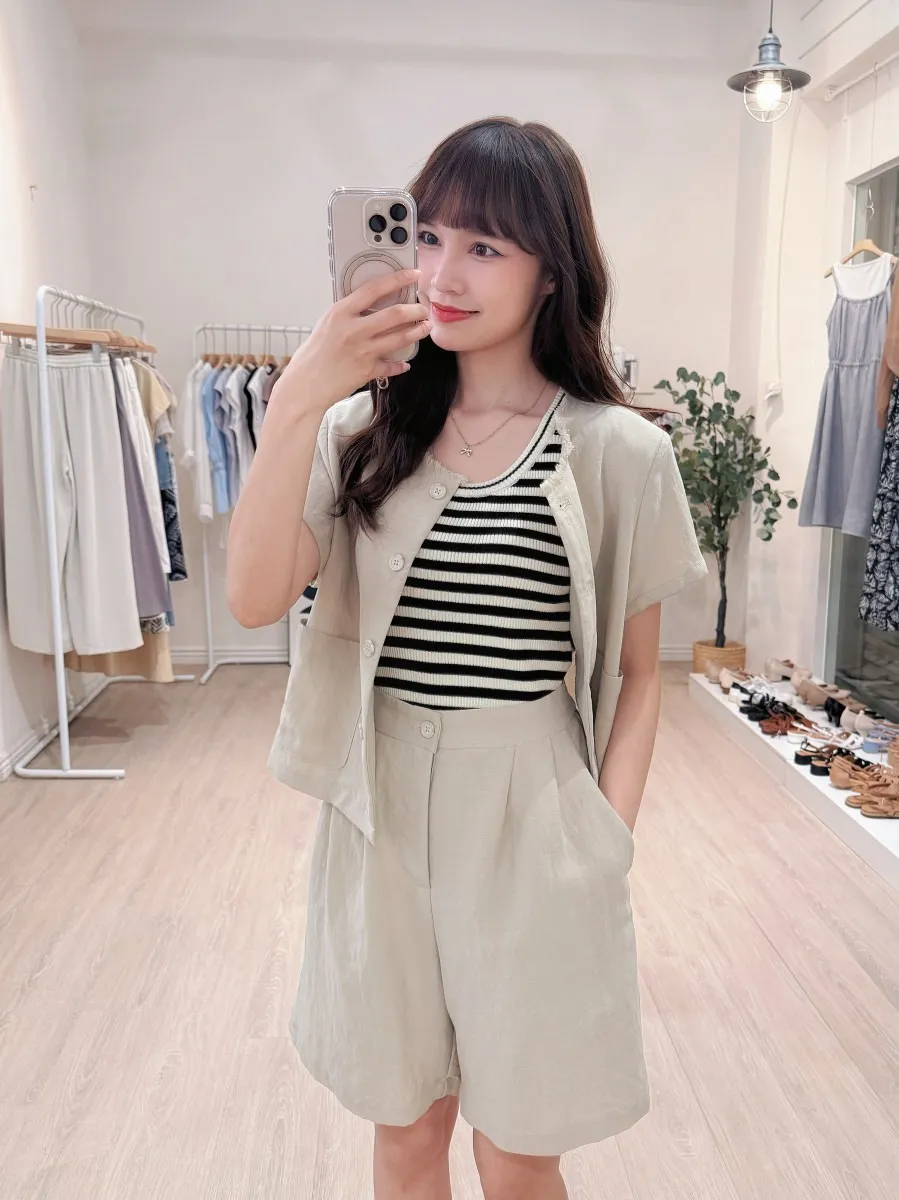 正韓 開釦外套短褲輕薄亞麻套裝