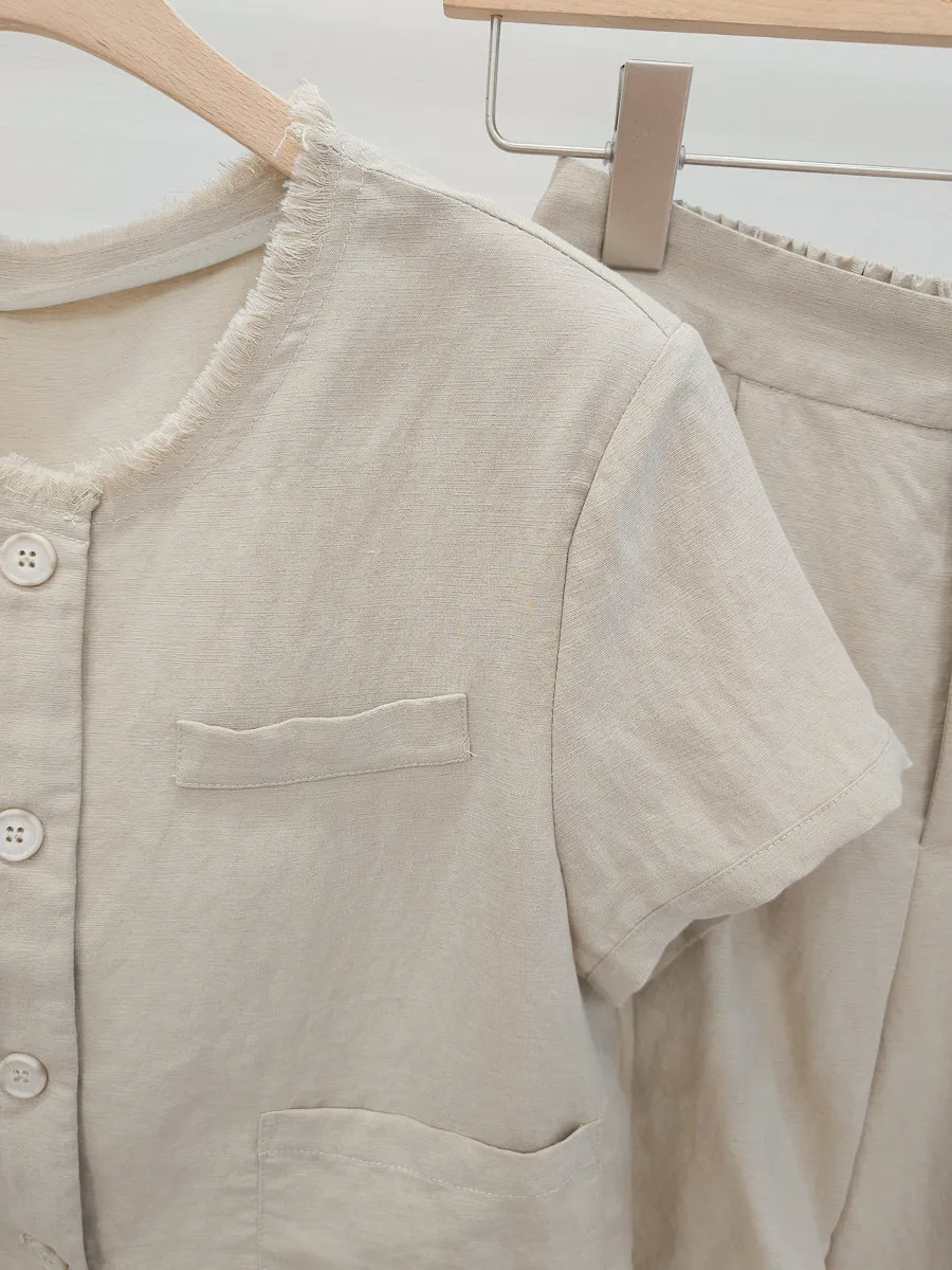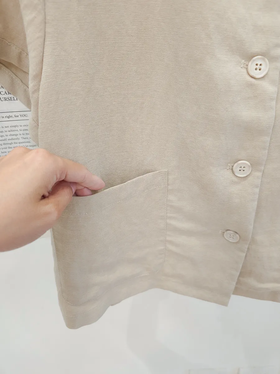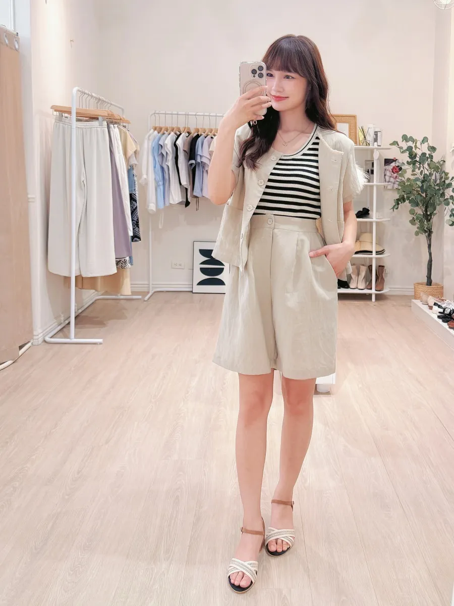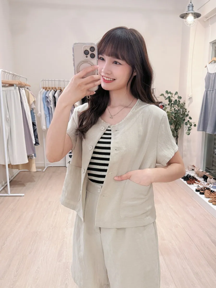 正韓 開釦外套短褲輕薄亞麻套裝