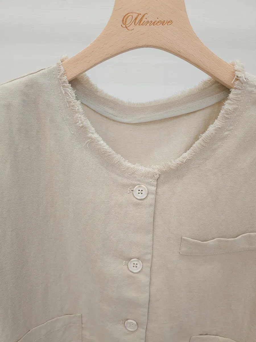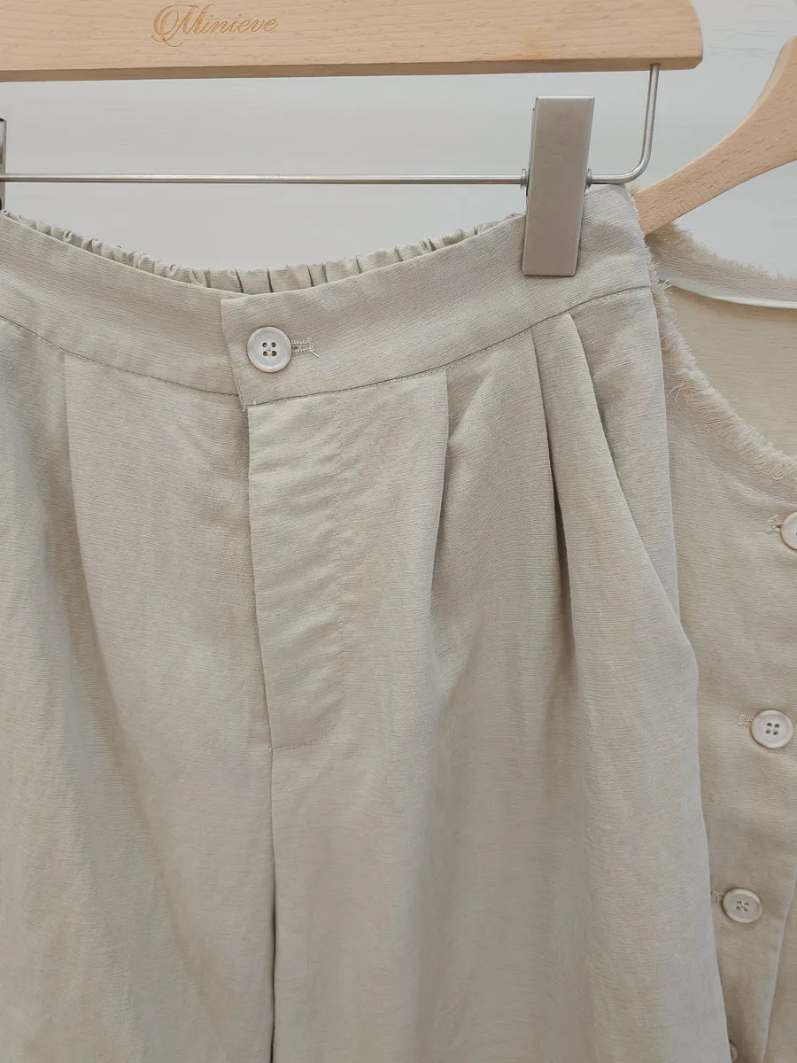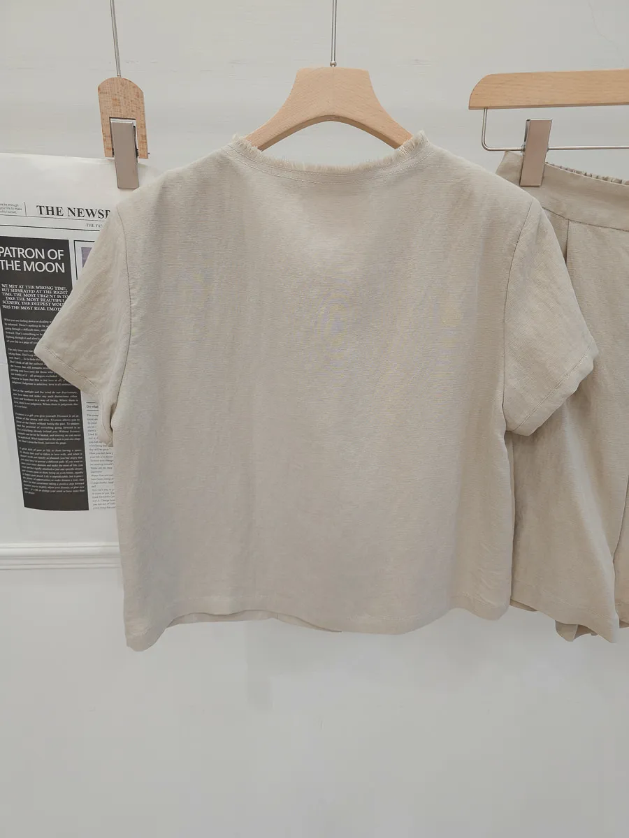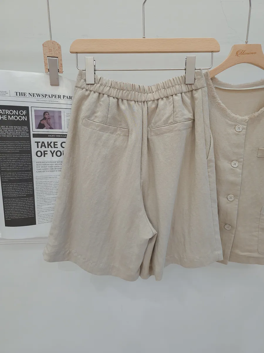 正韓 開釦外套短褲輕薄亞麻套裝