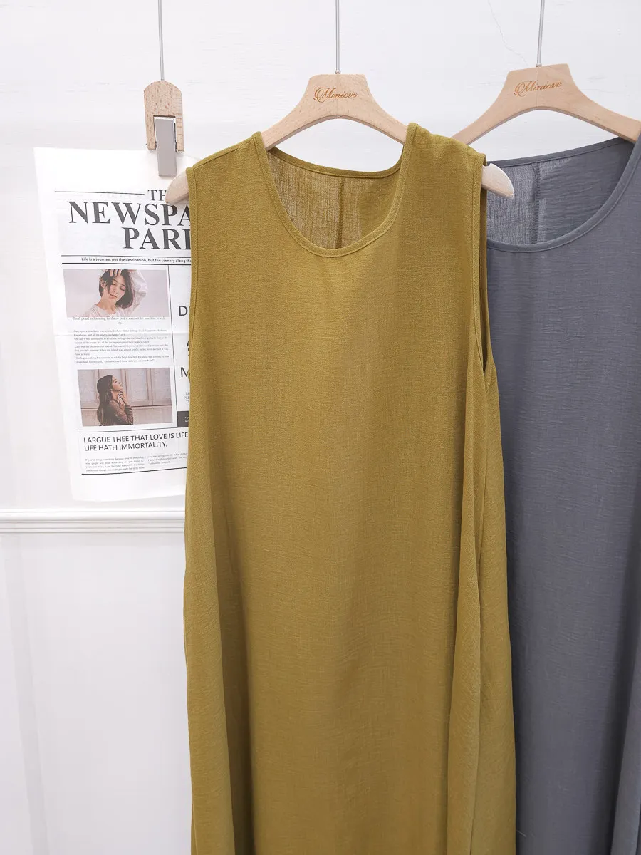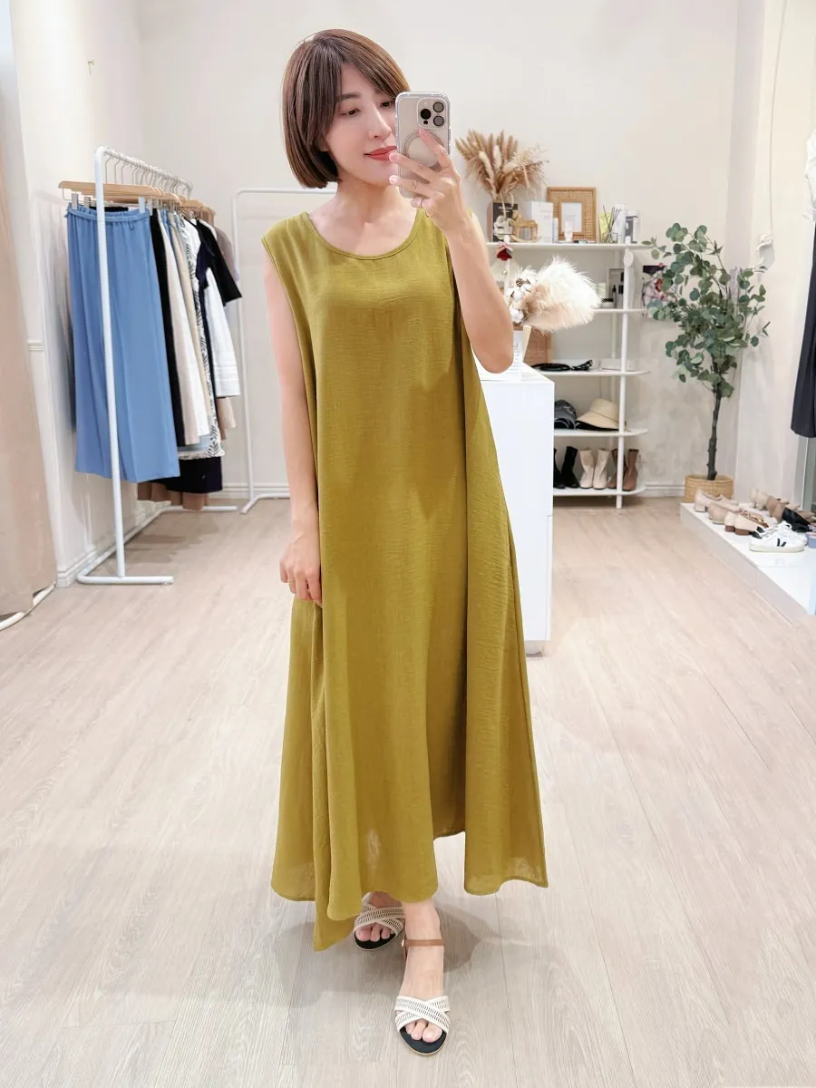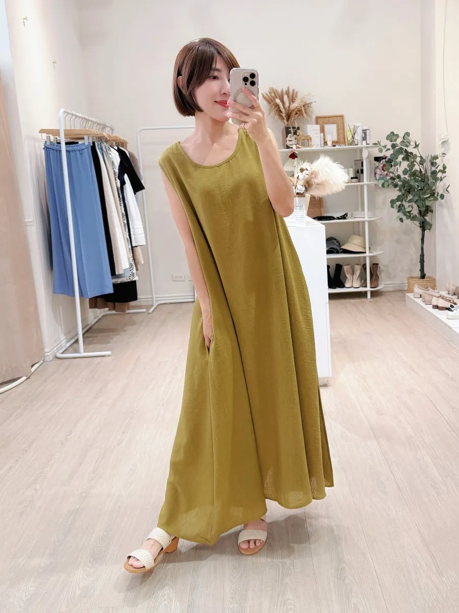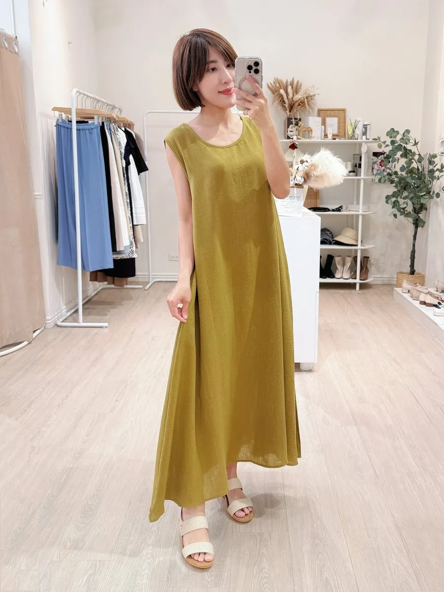 正韓 寬版棉麻連身裙 3色