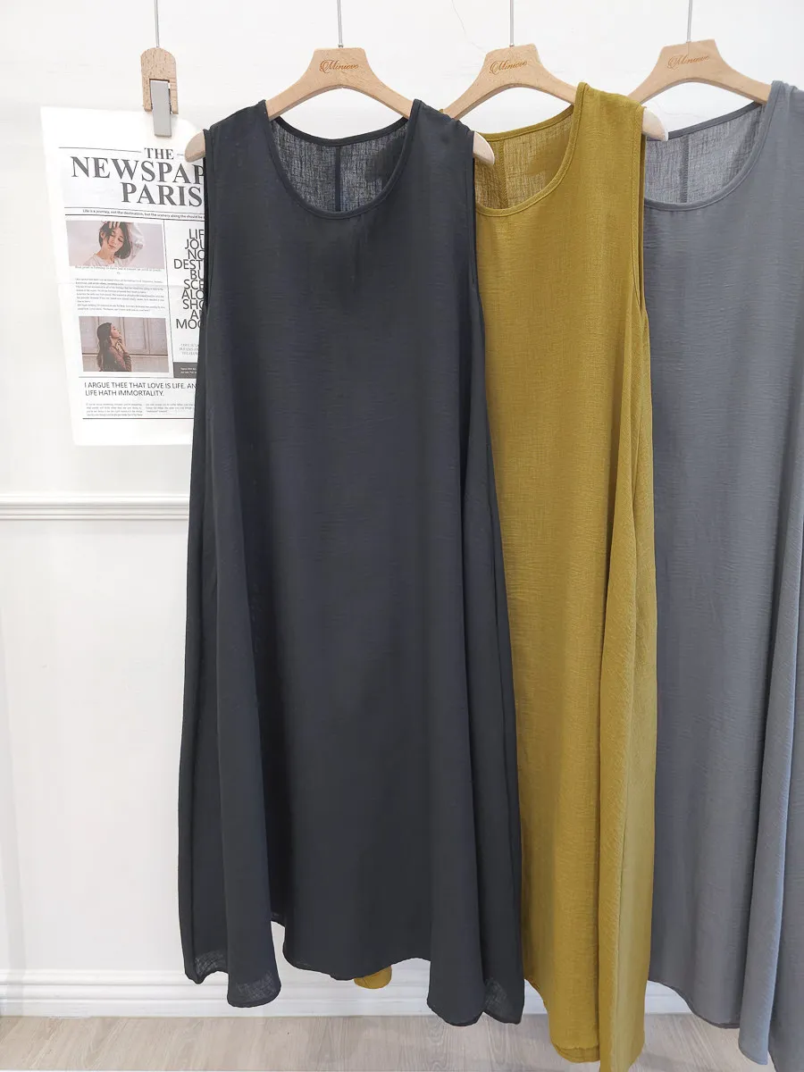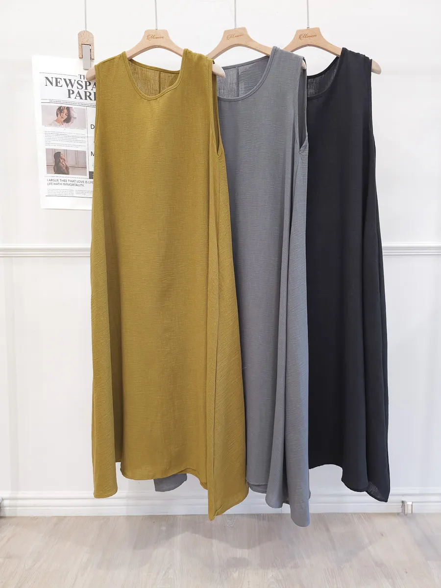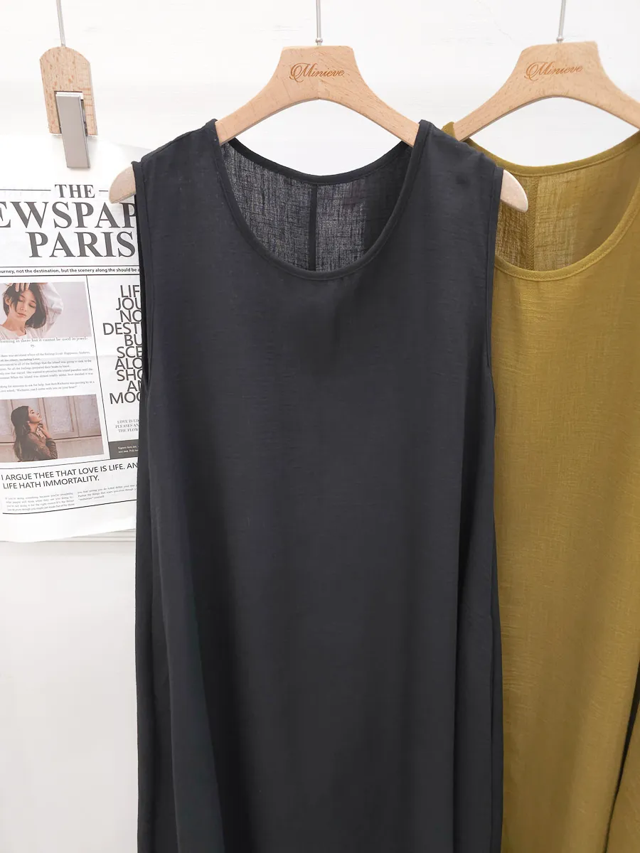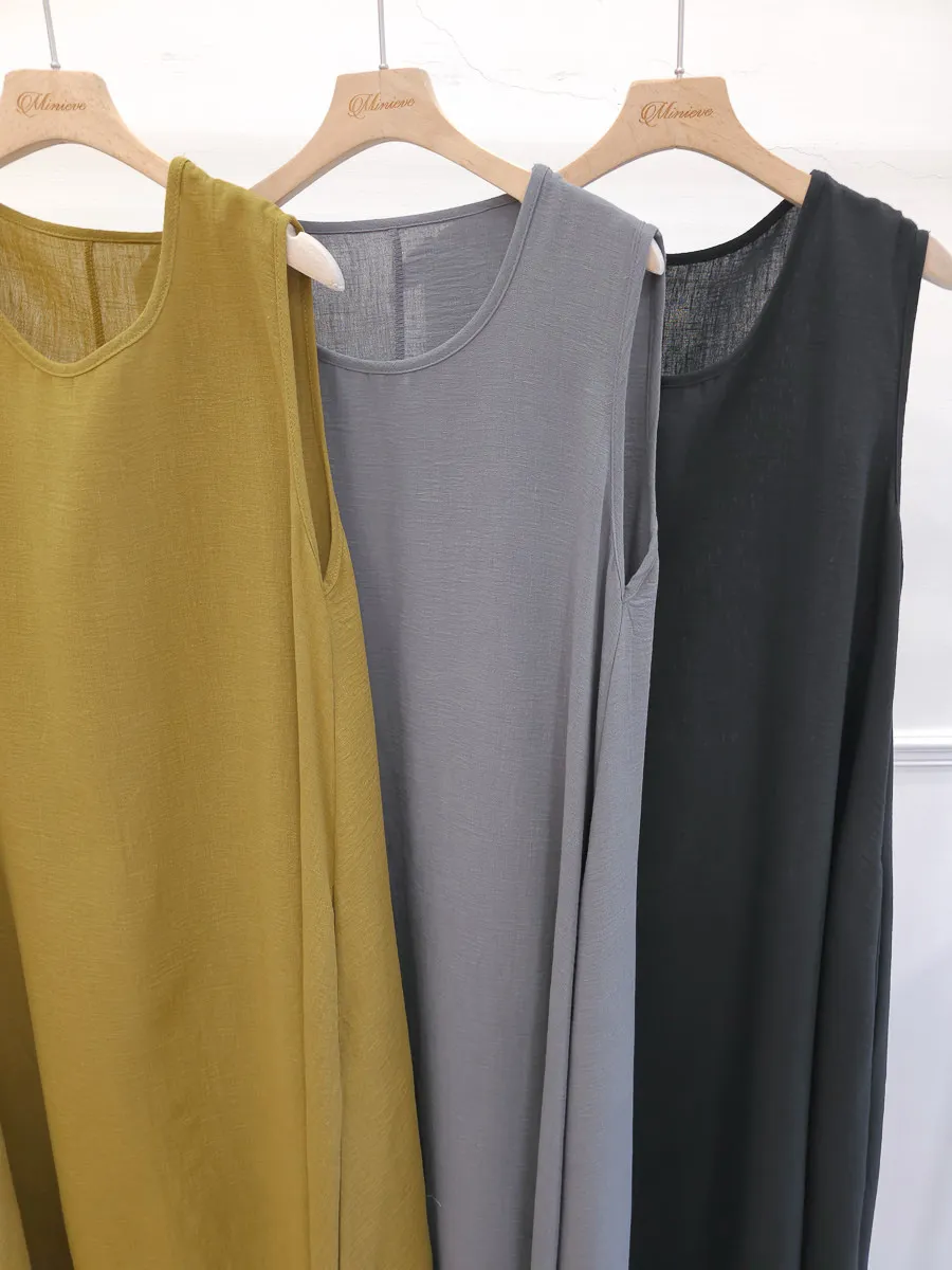 正韓 寬版棉麻連身裙 3色