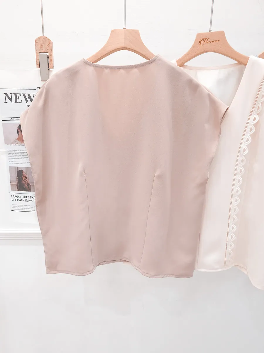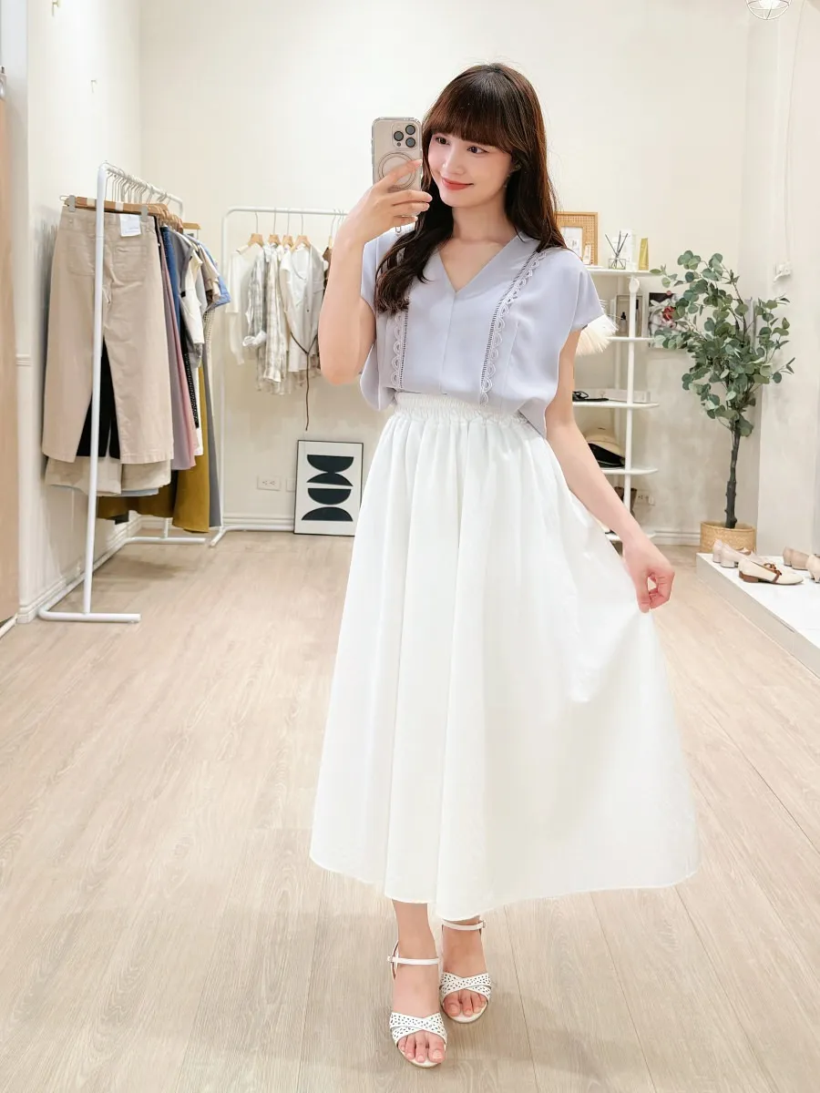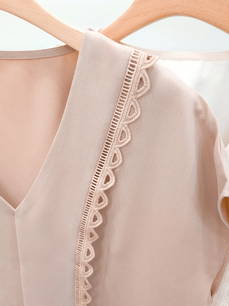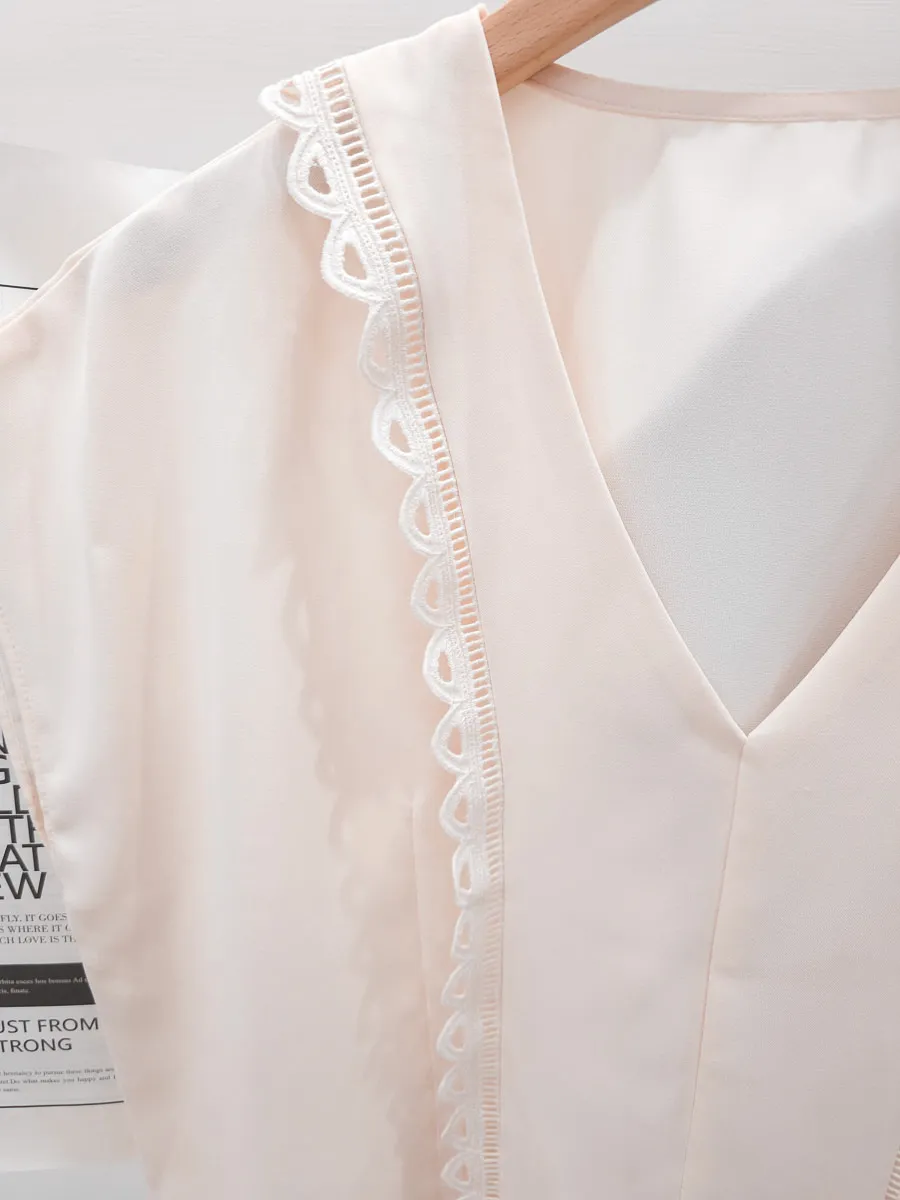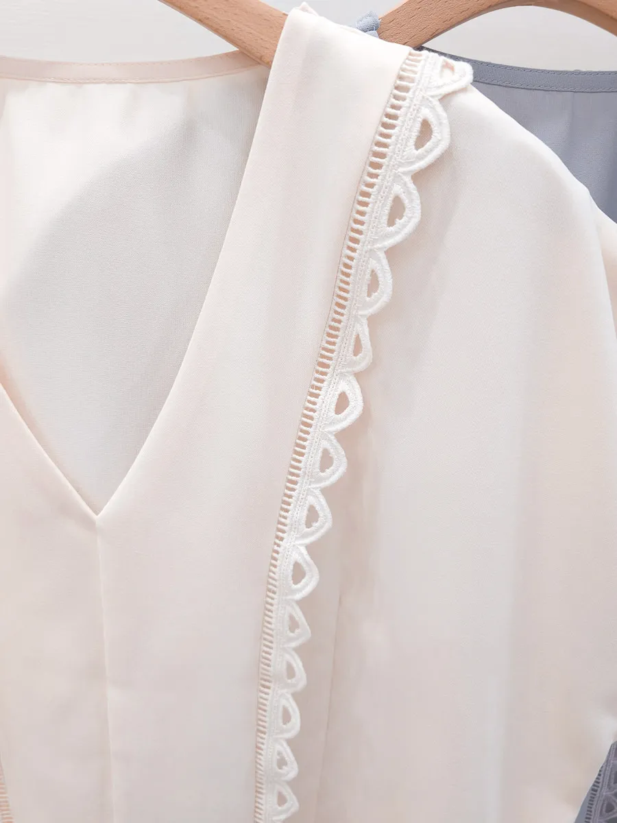 正韓 V領波浪蕾絲滾邊上衣 3色