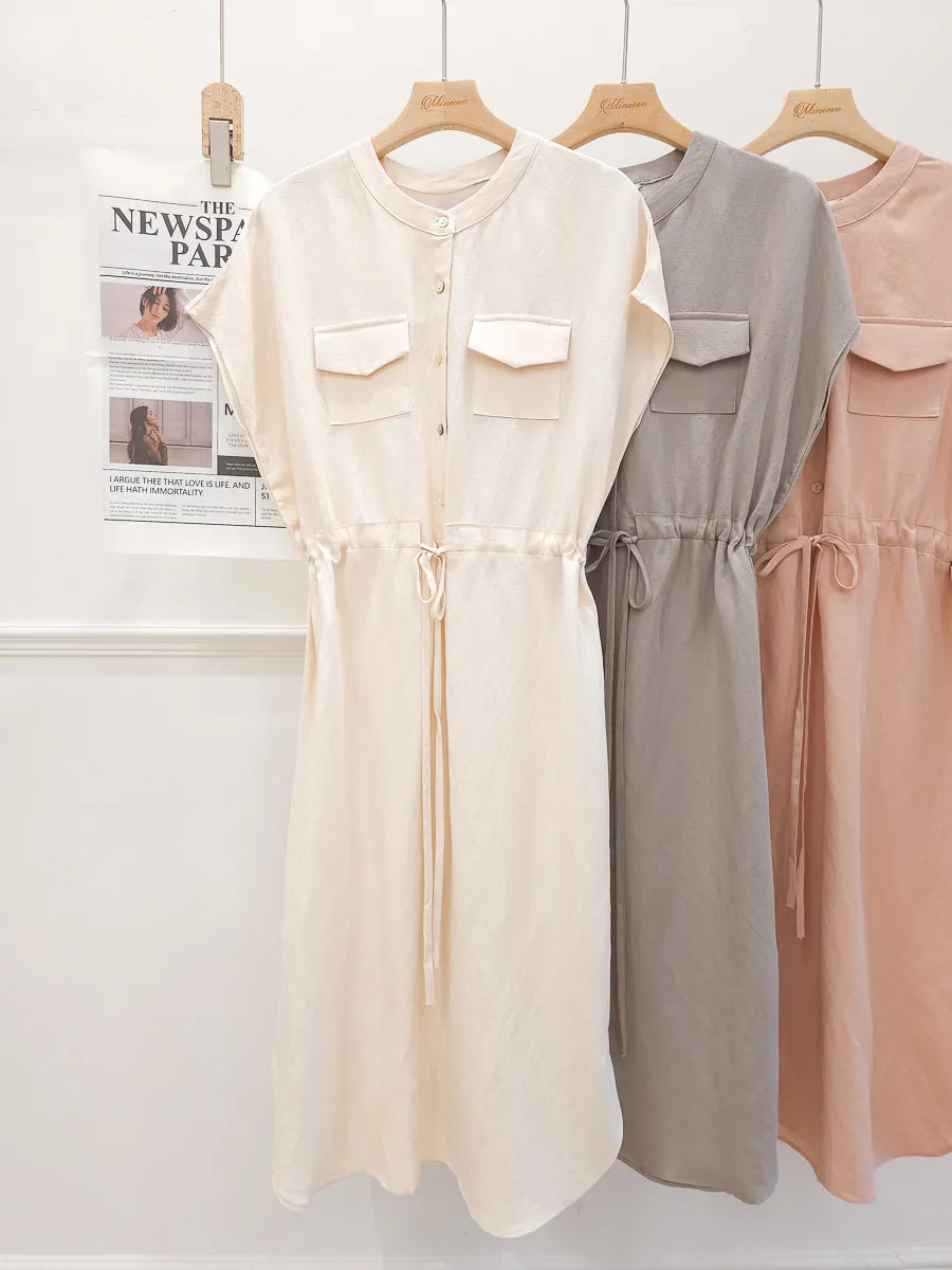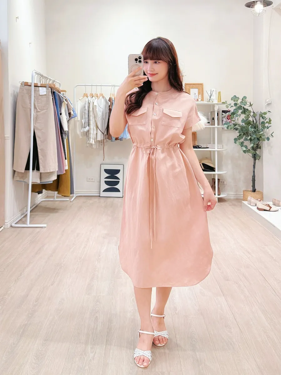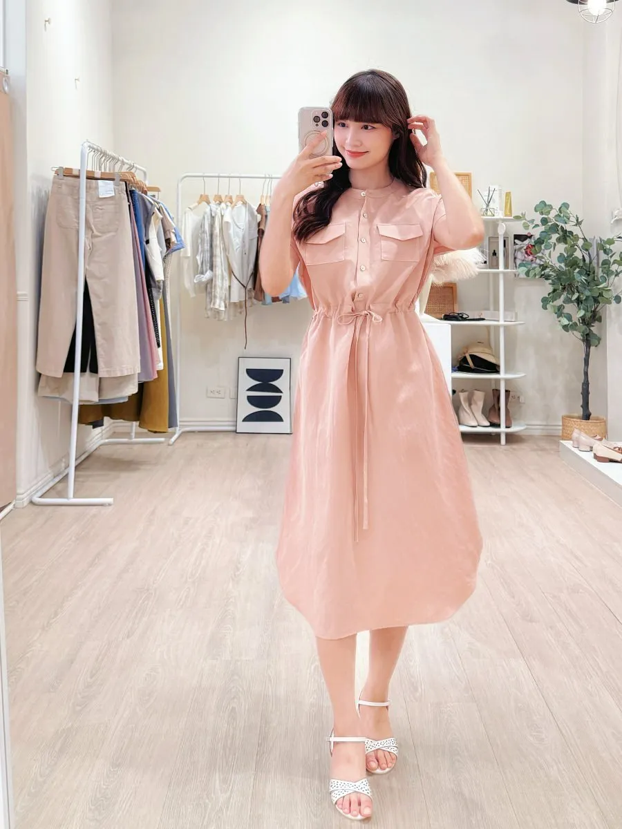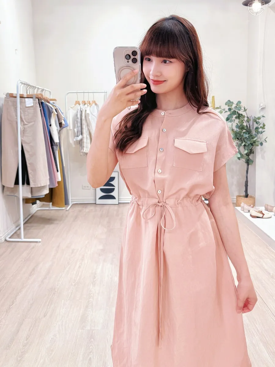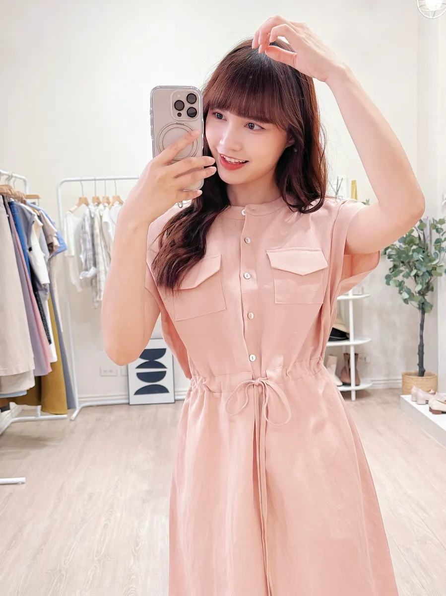 正韓 排扣抽繩縮腰連身洋裝 3色