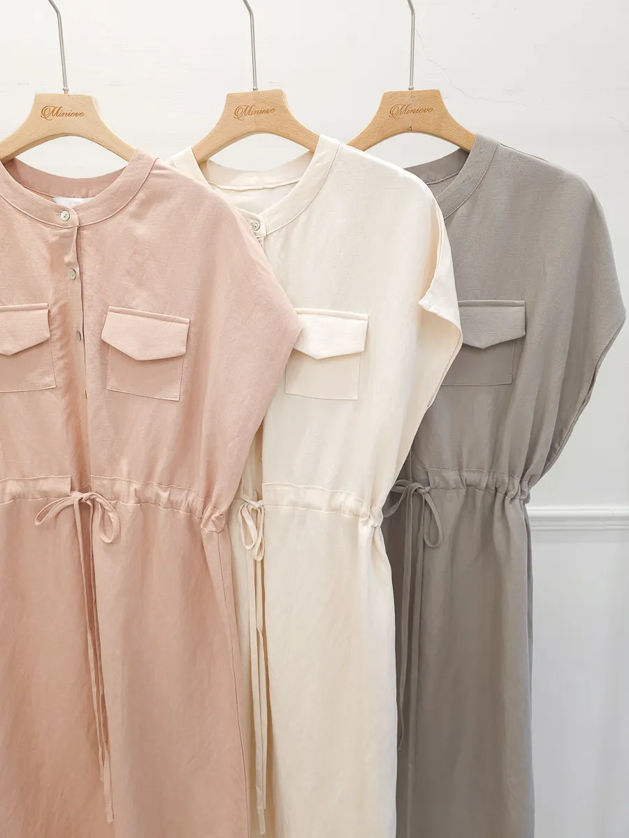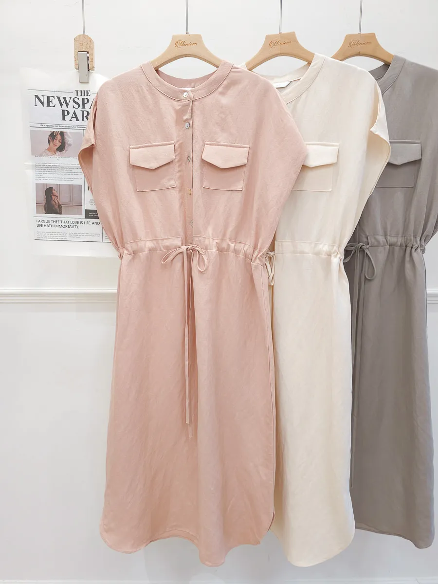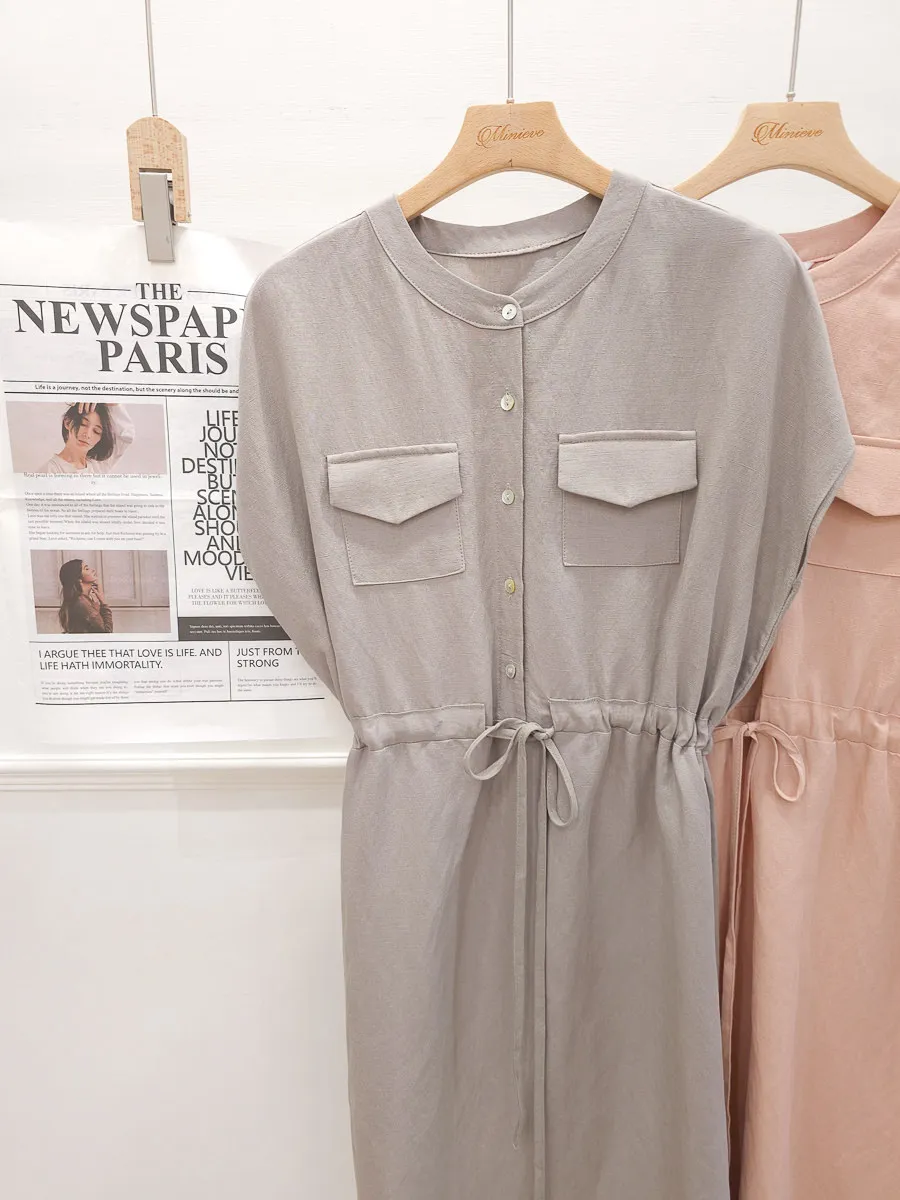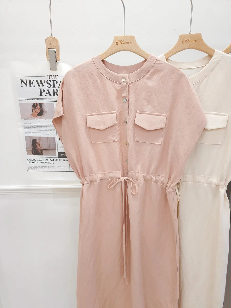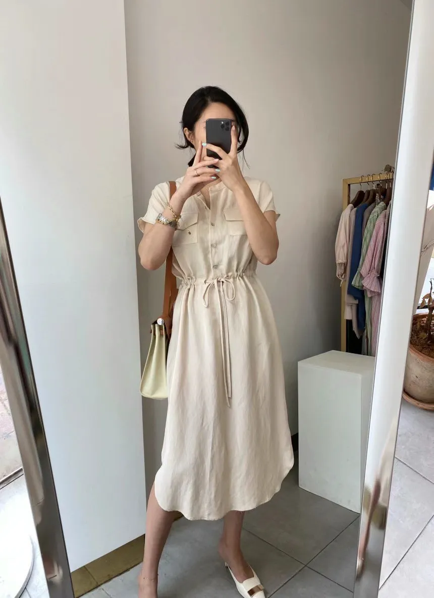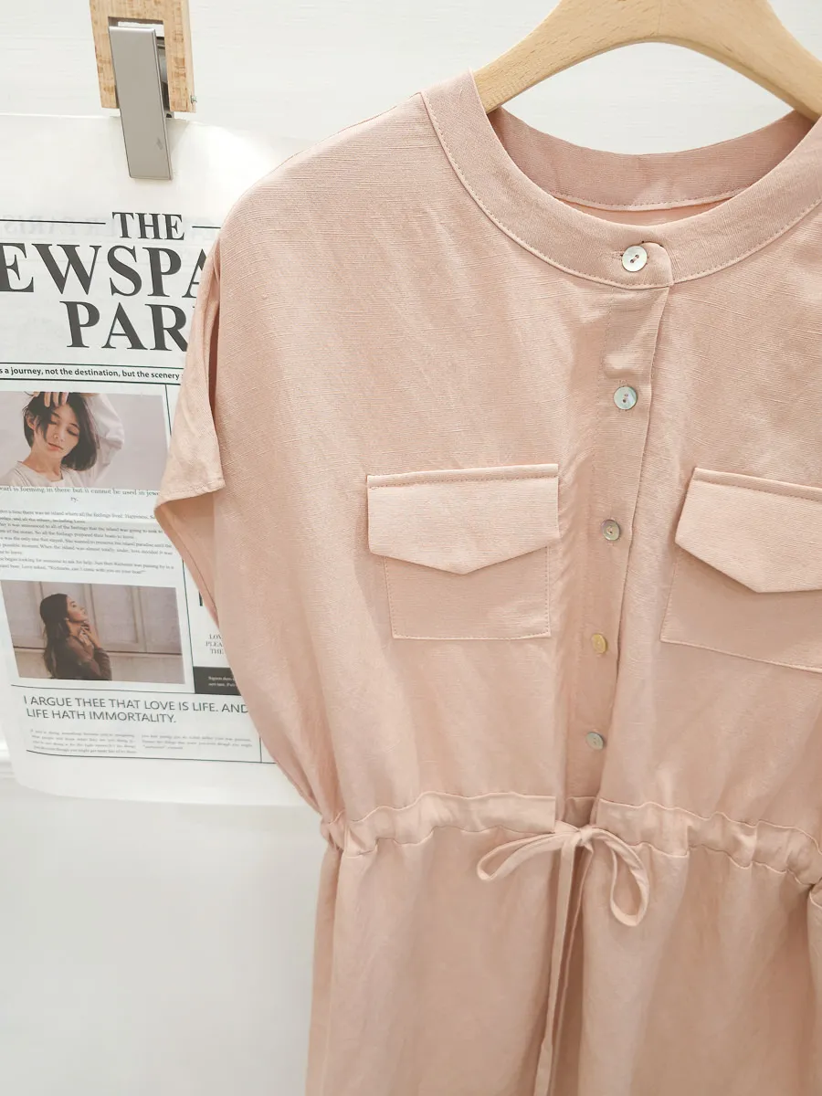 正韓 排扣抽繩縮腰連身洋裝 3色