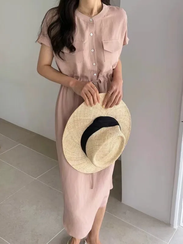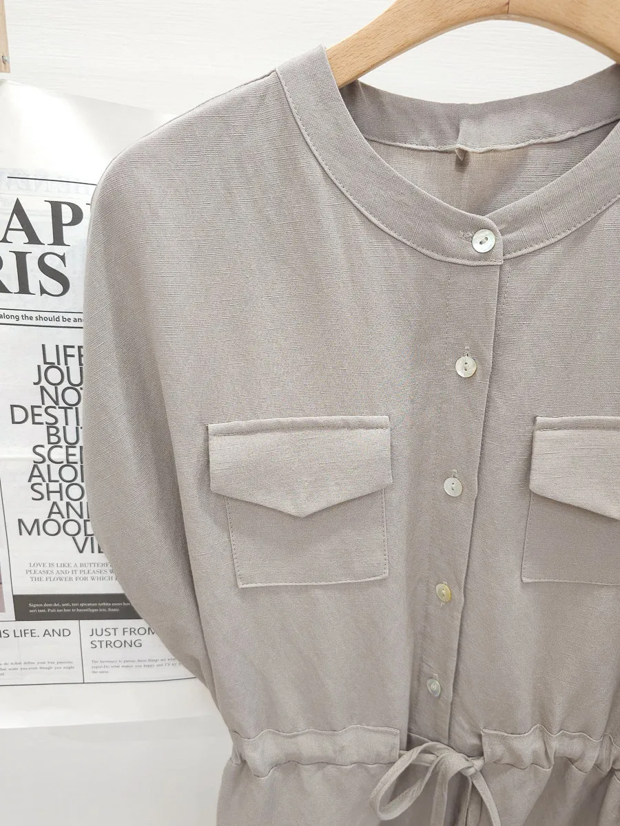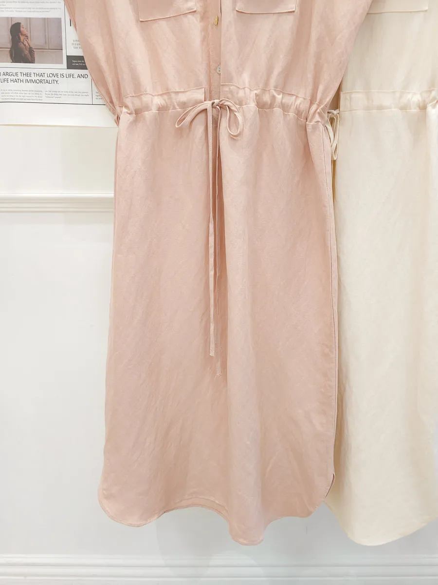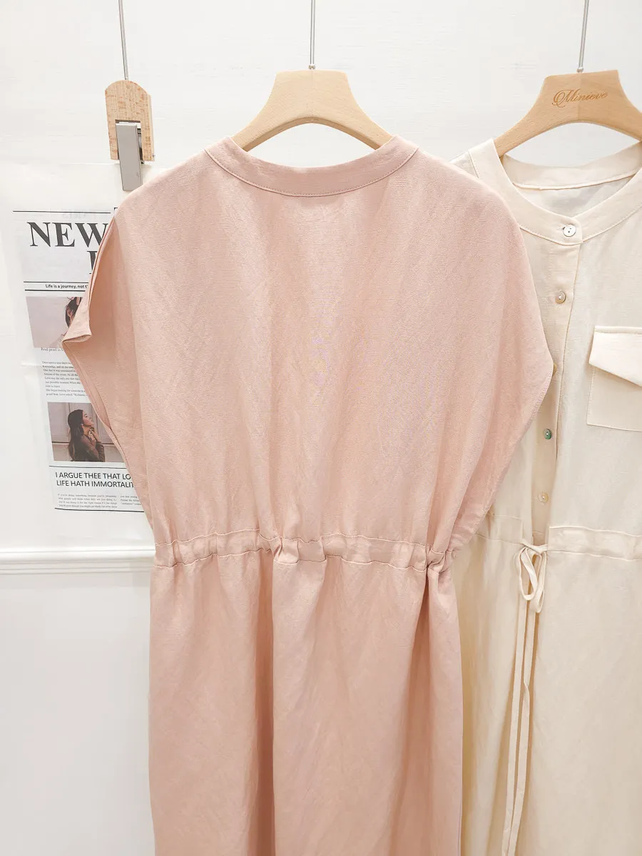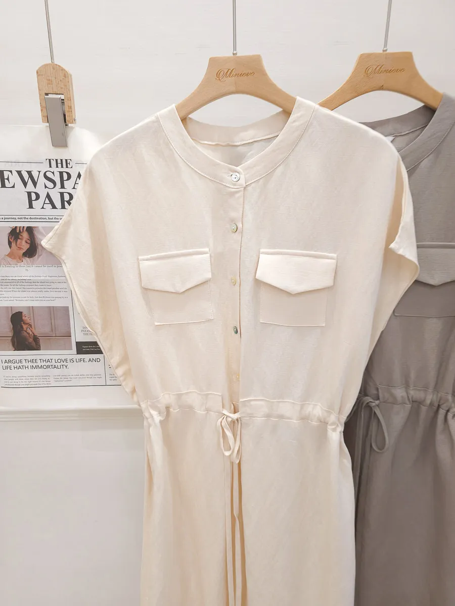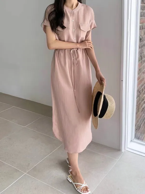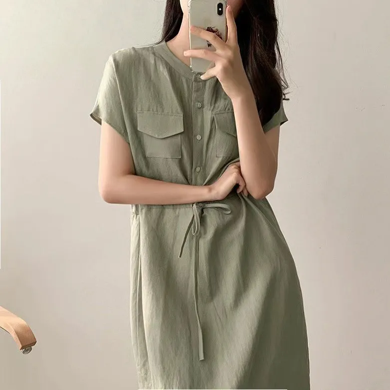 正韓 排扣抽繩縮腰連身洋裝 3色