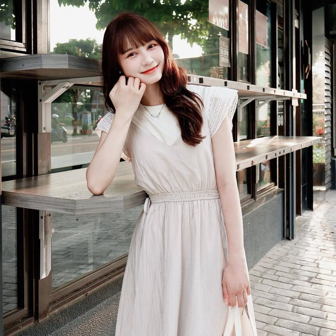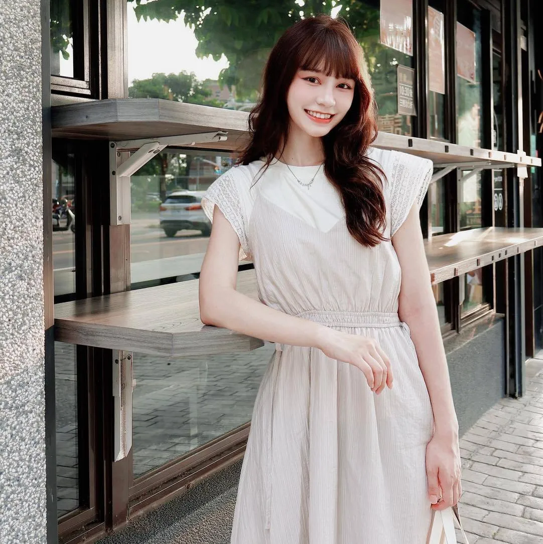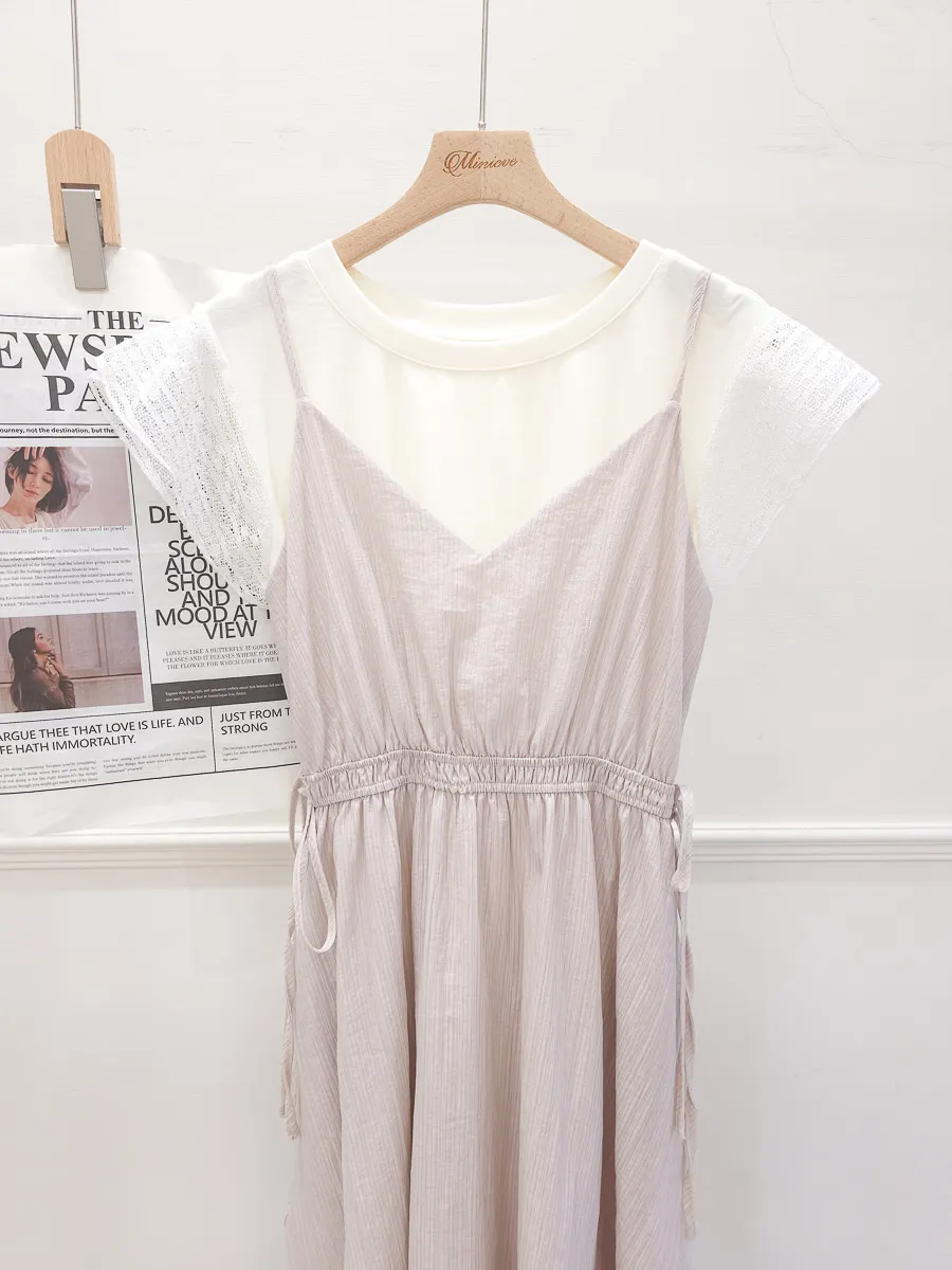自訂 縮腰層次兩件式洋裝