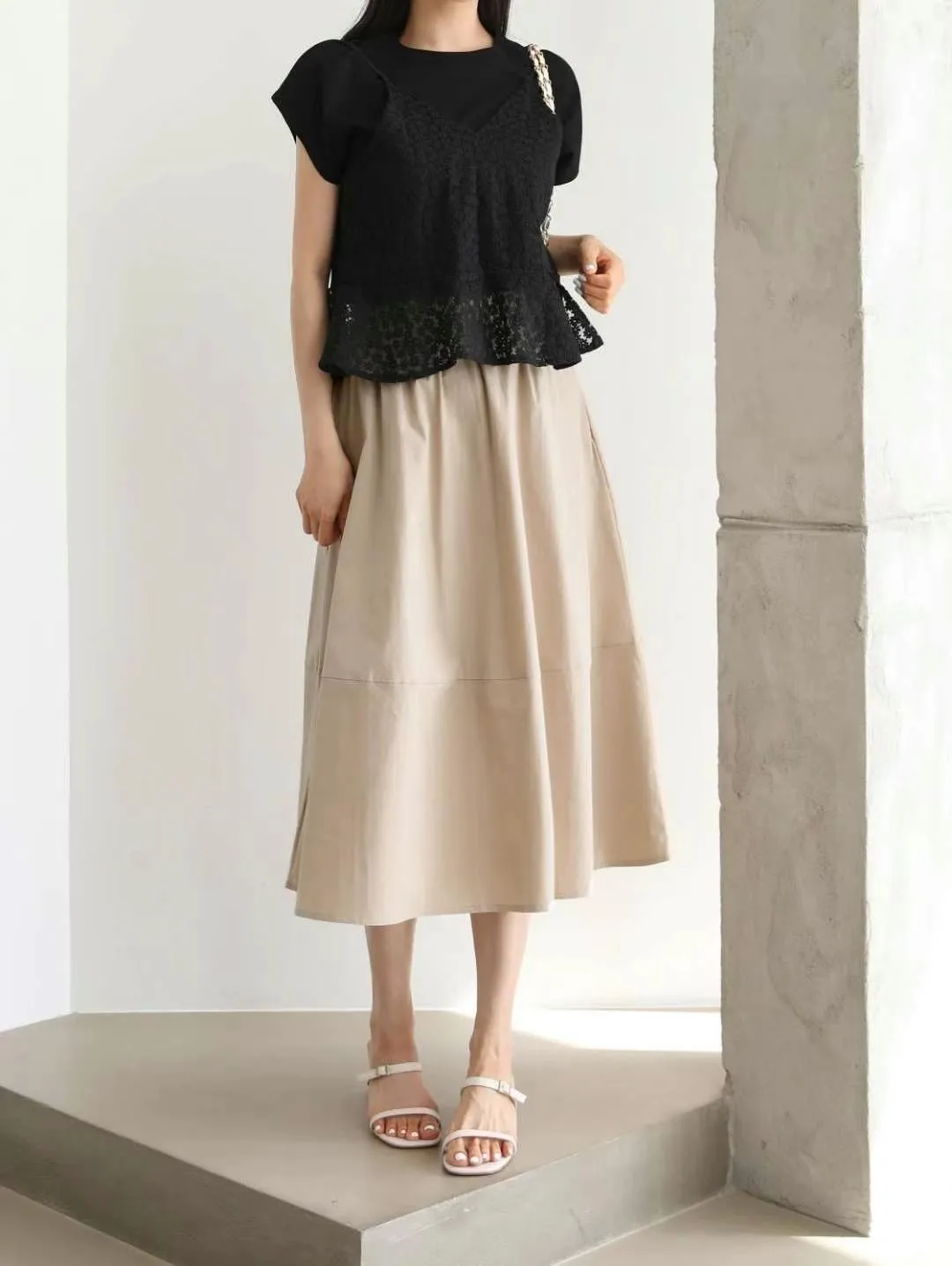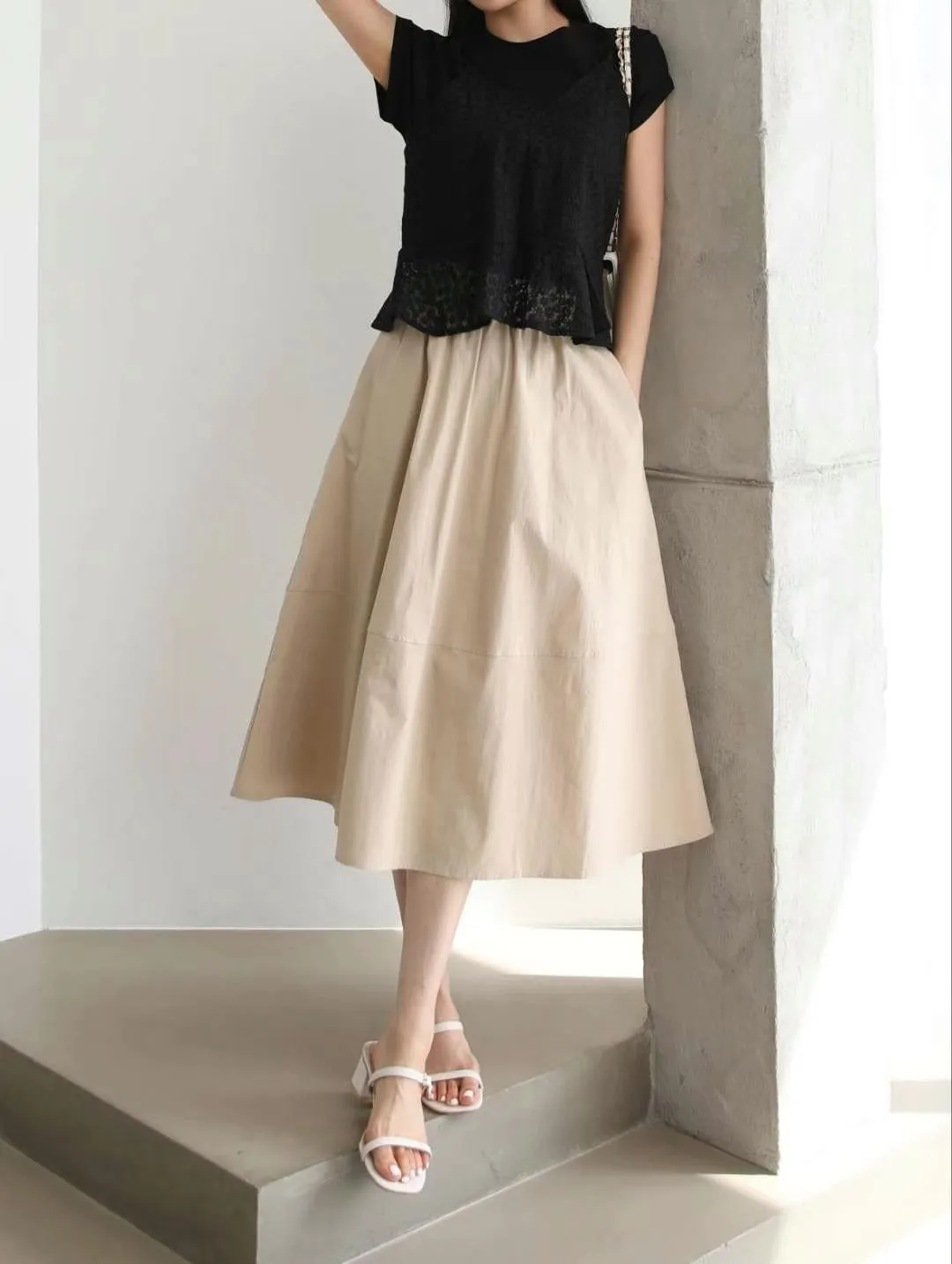 正韓 拼接傘擺中裙 2色