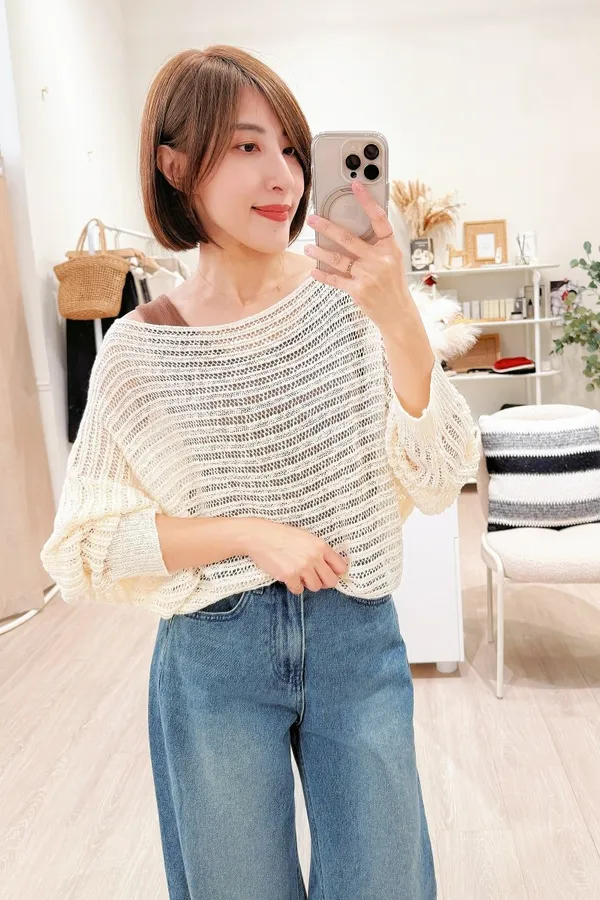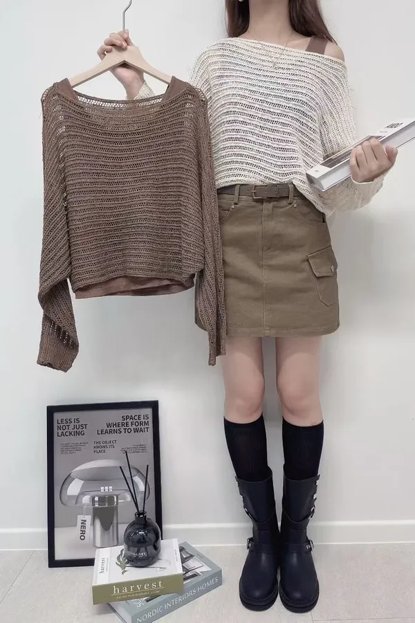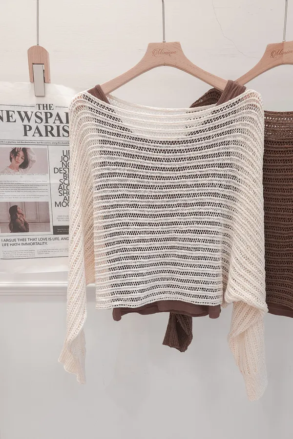 正韓 鏤空條坑針織兩件上衣 2色