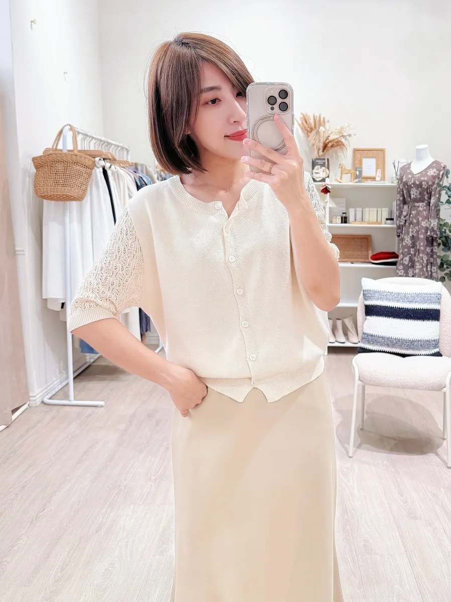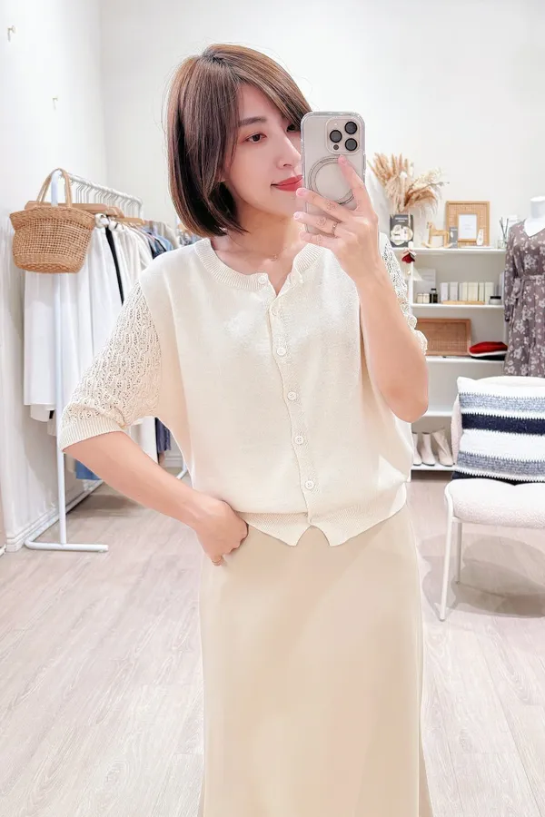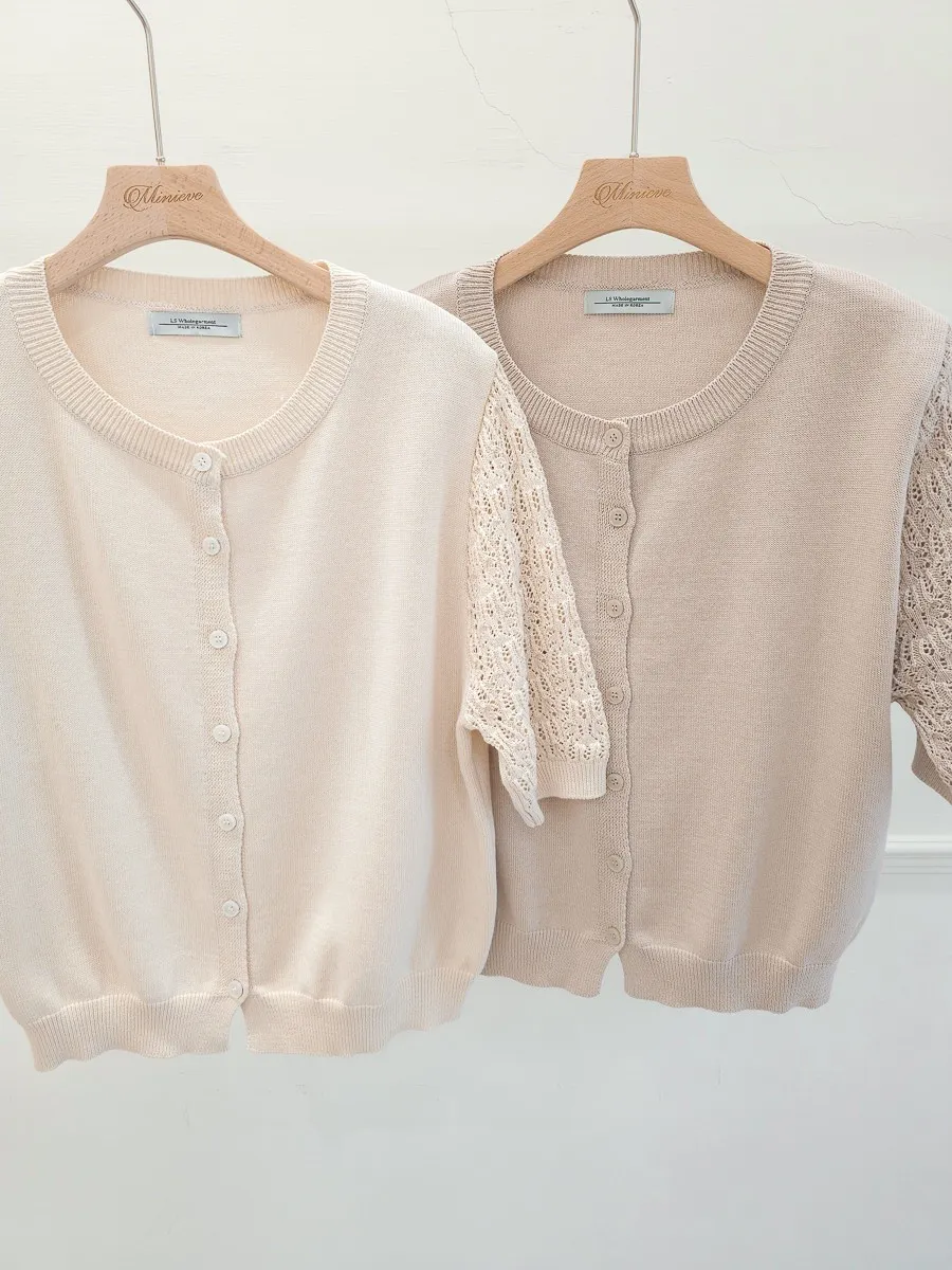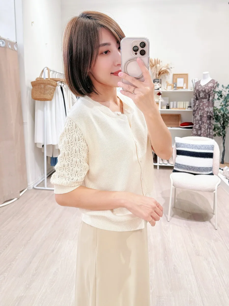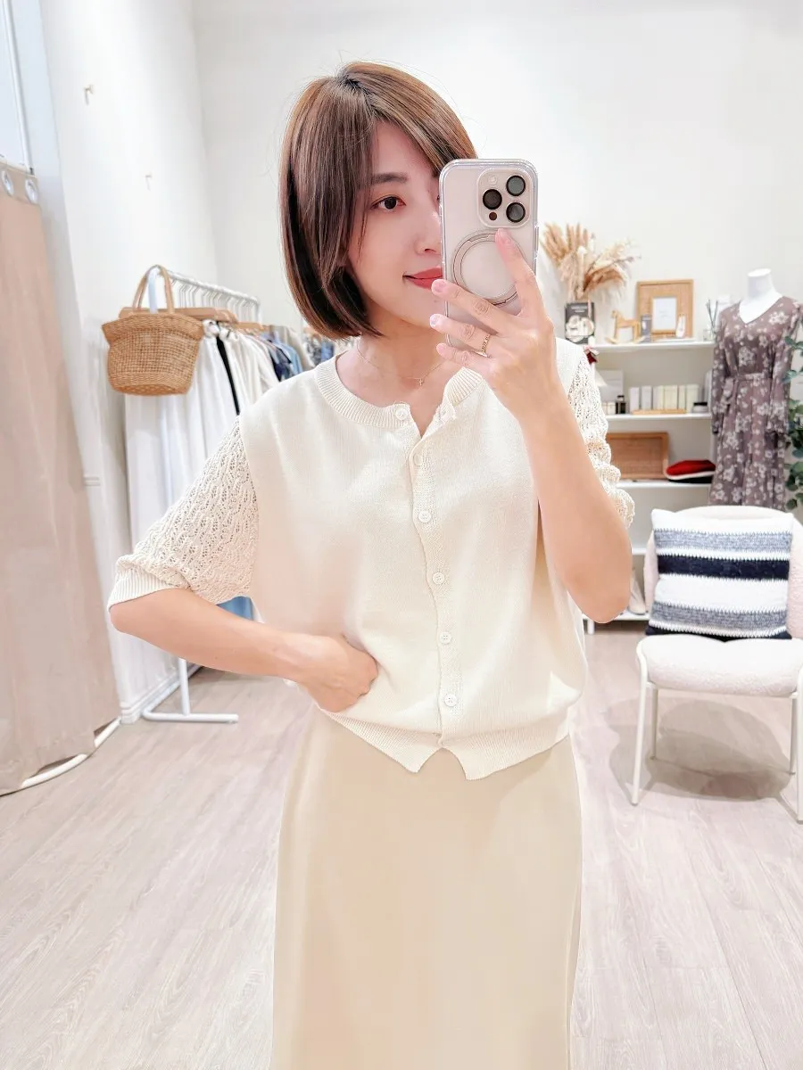 正韓 編織袖開釦針織衫 2色
