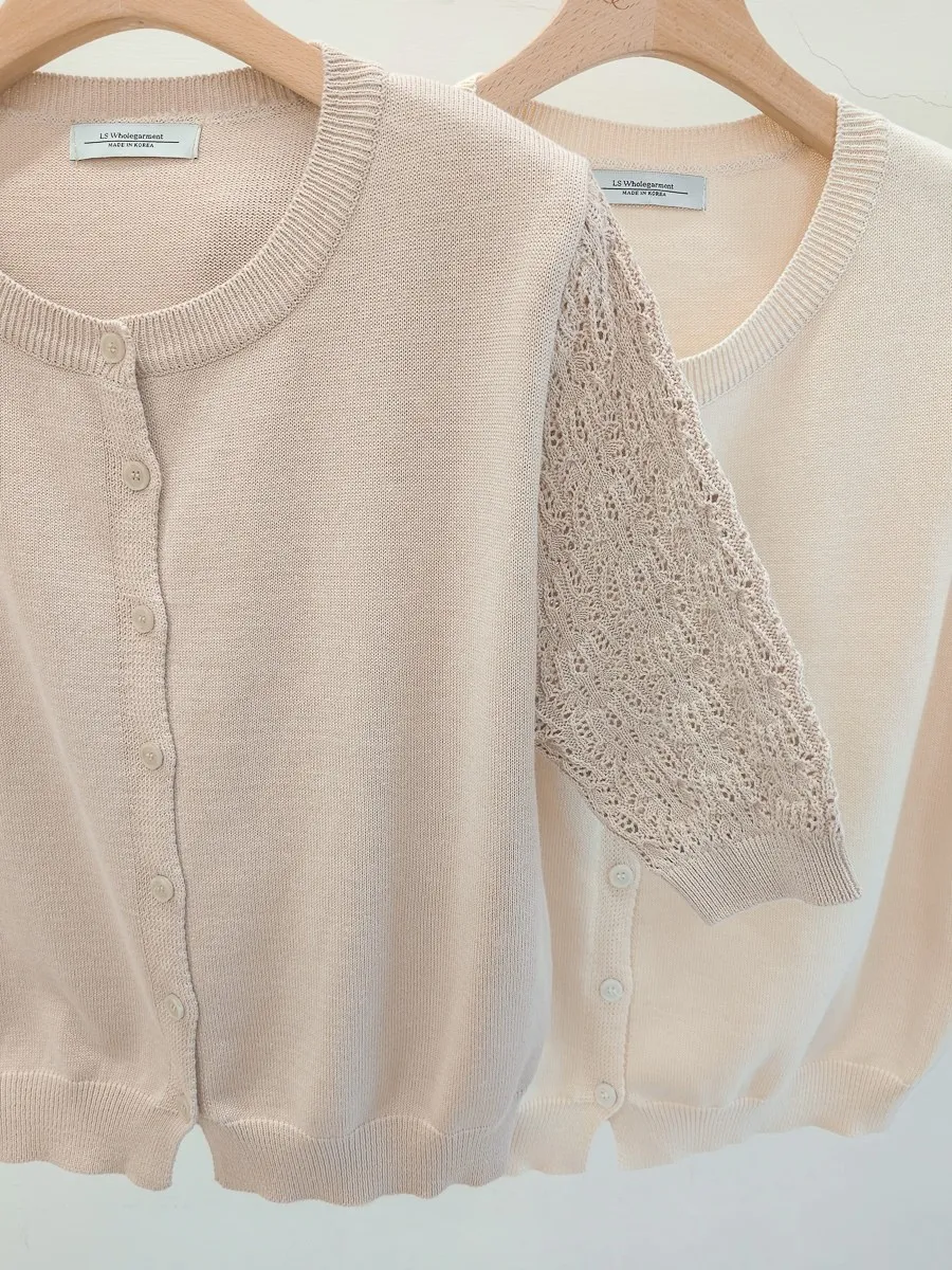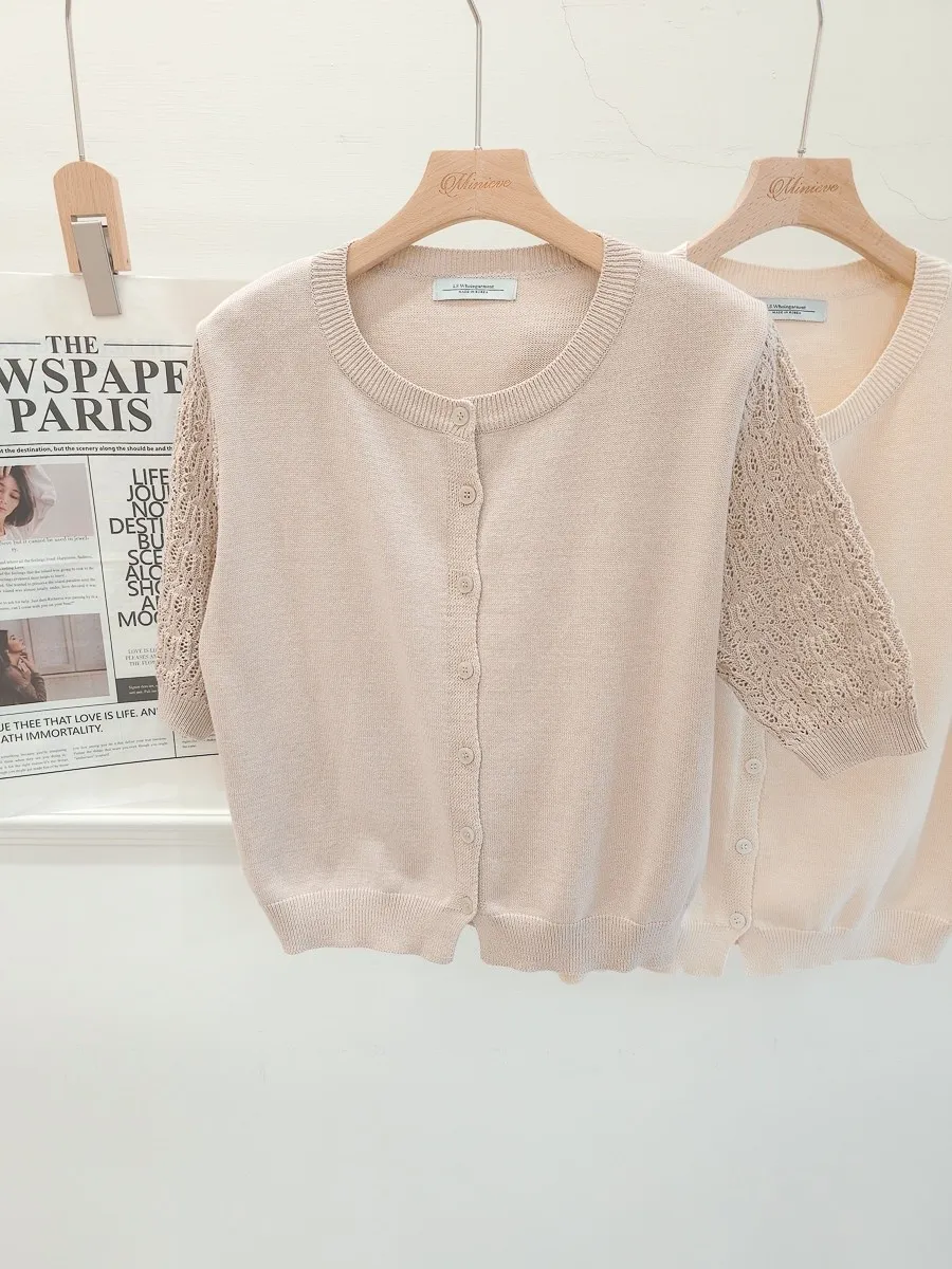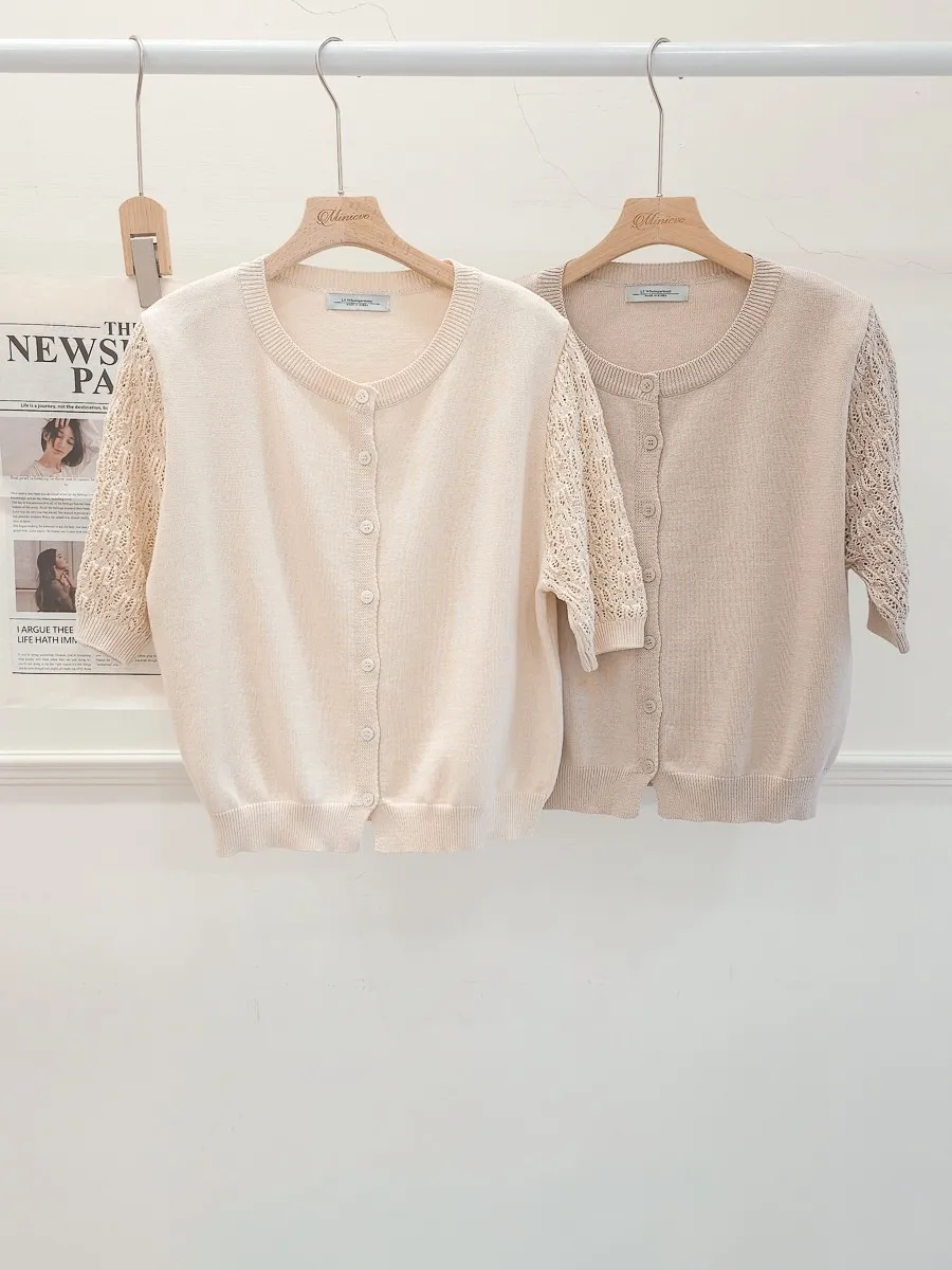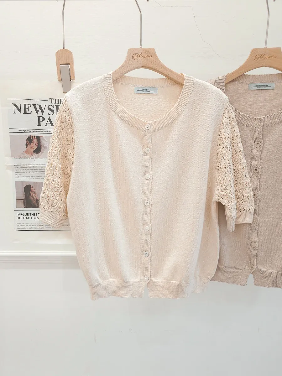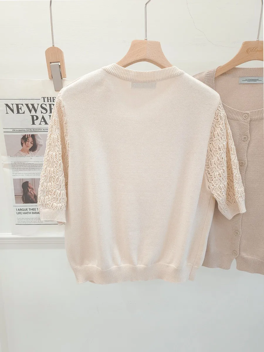正韓 編織袖開釦針織衫 2色