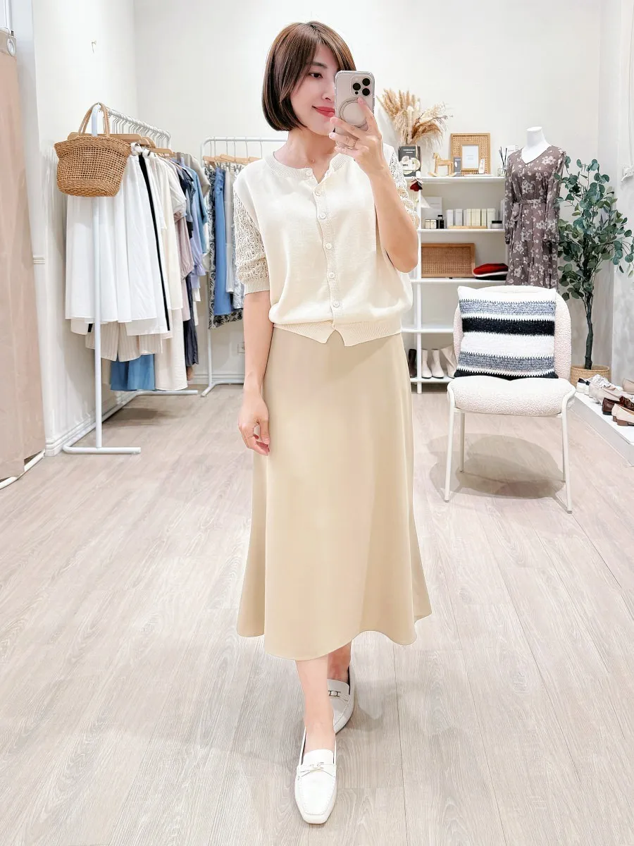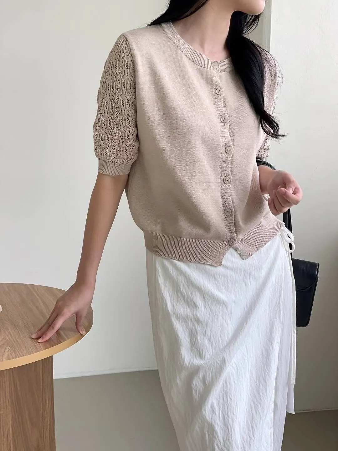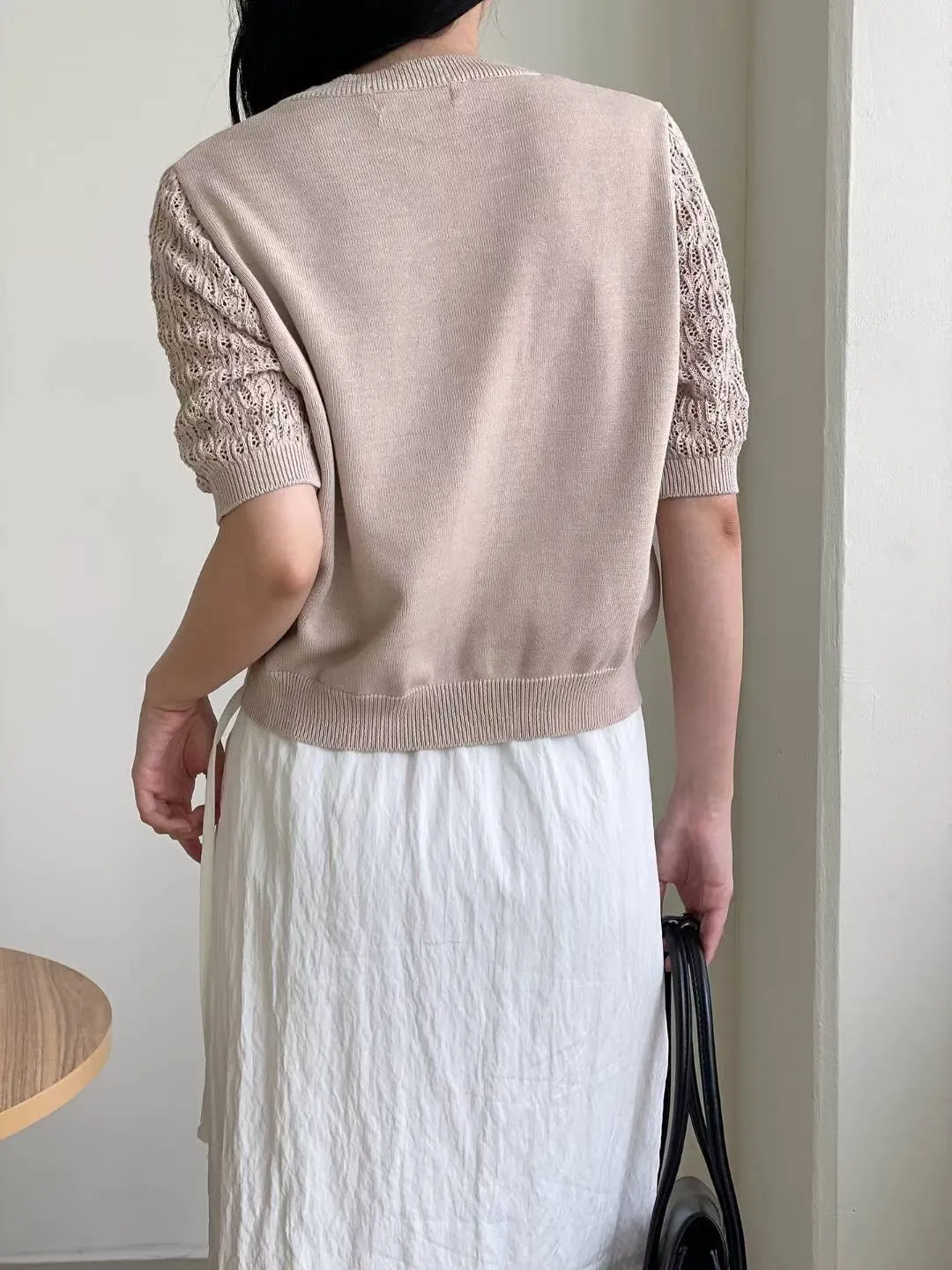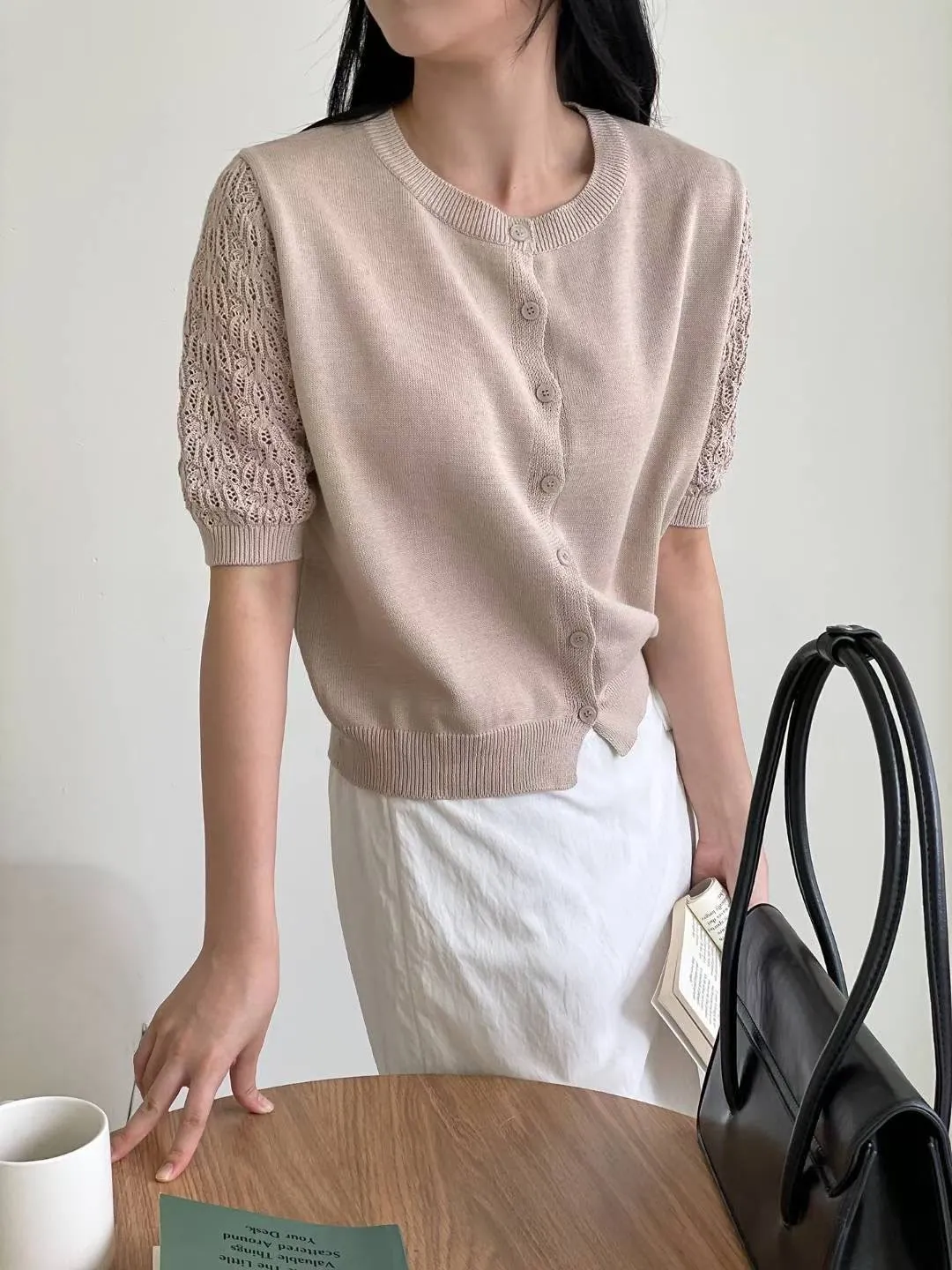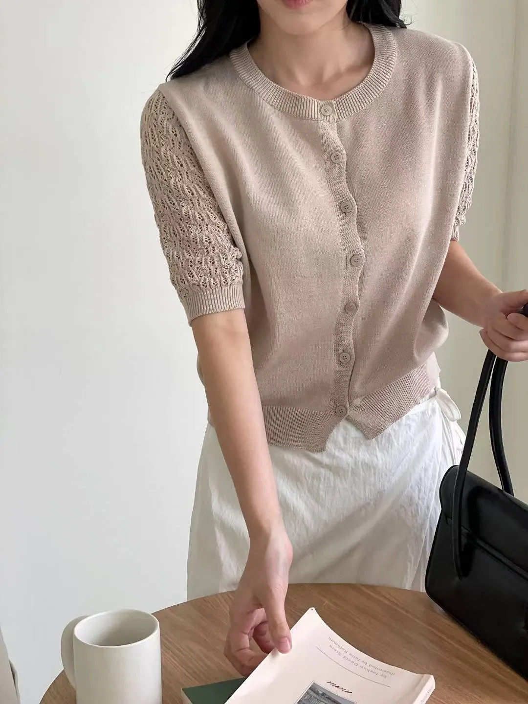 正韓 編織袖開釦針織衫 2色