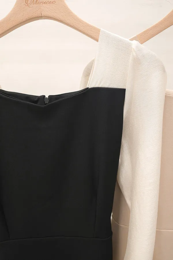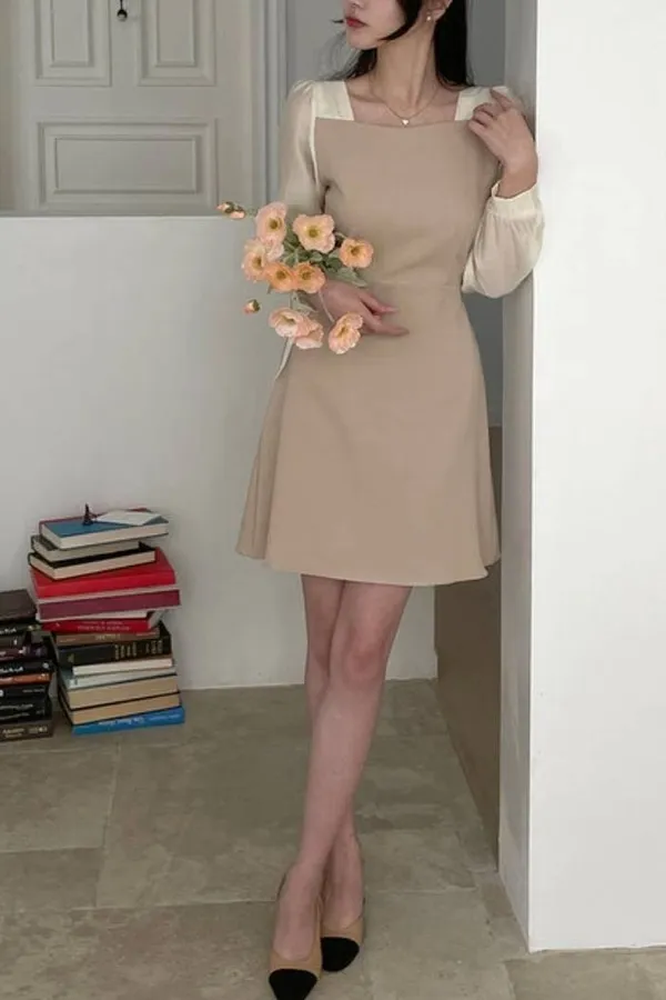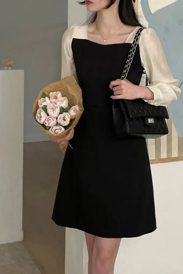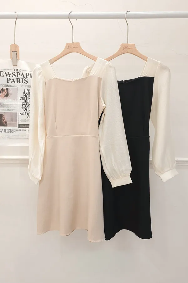 正韓 透紗撞色拼接短洋裝 2色