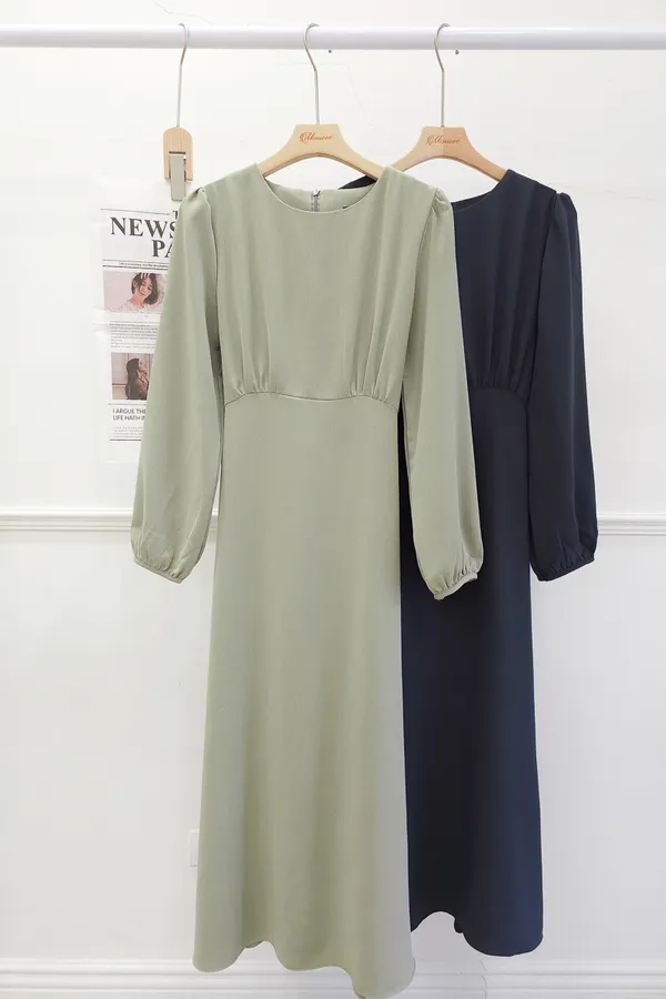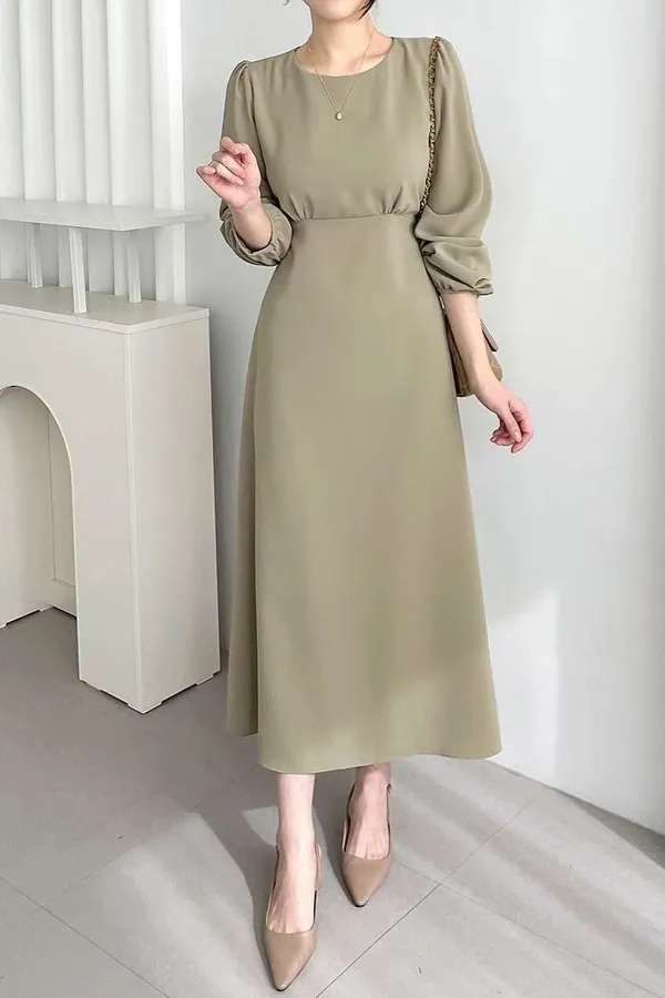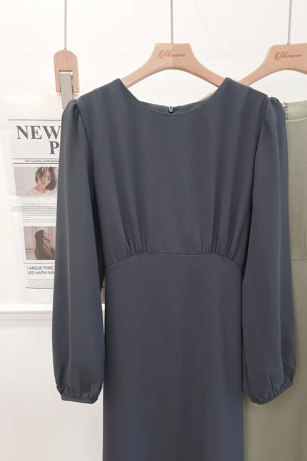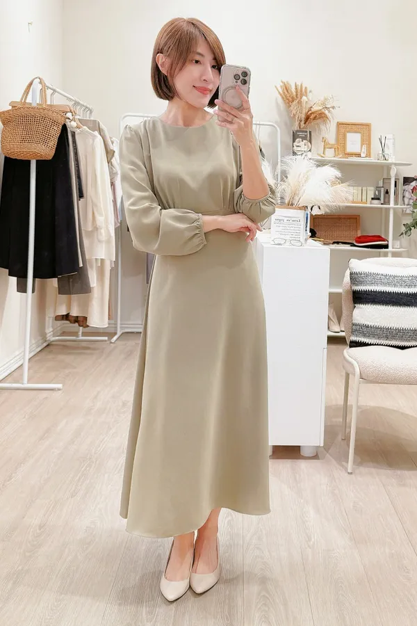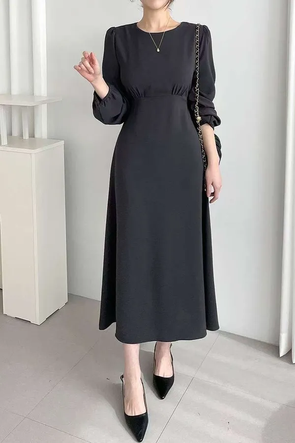 正韓 腰線後綁帶剪裁長洋裝 2色
