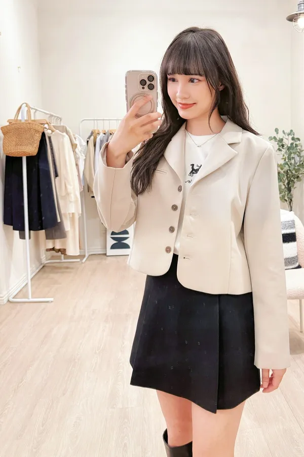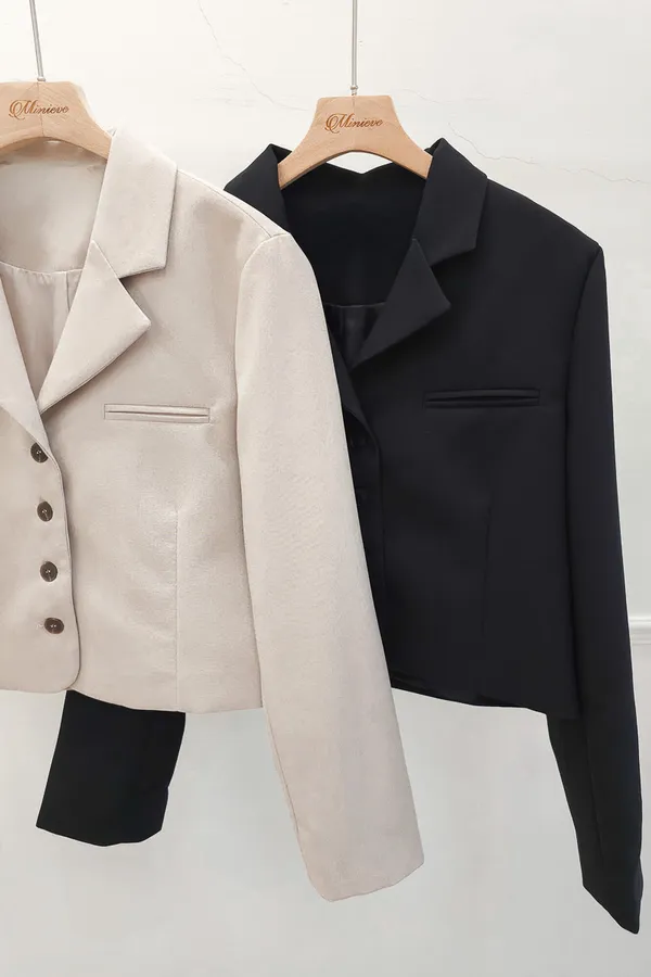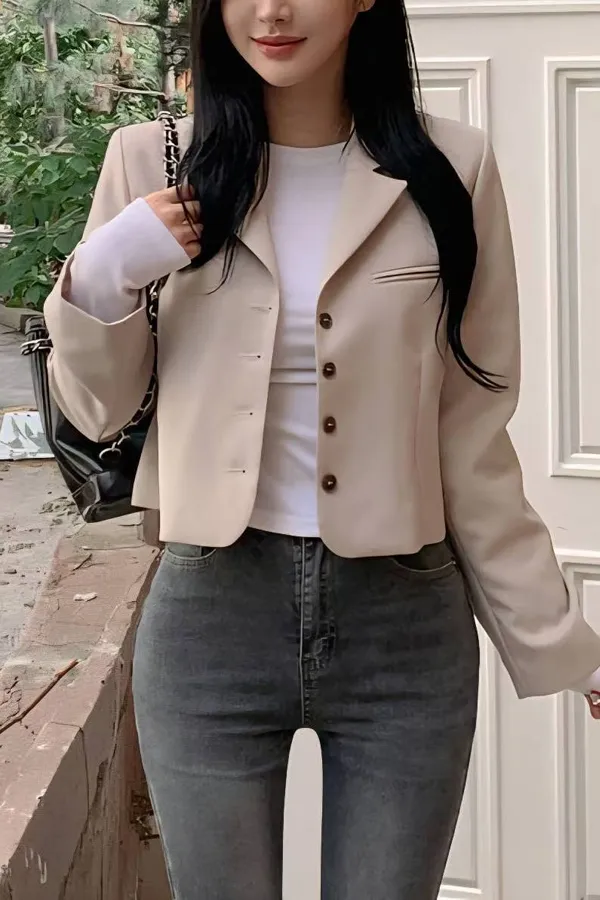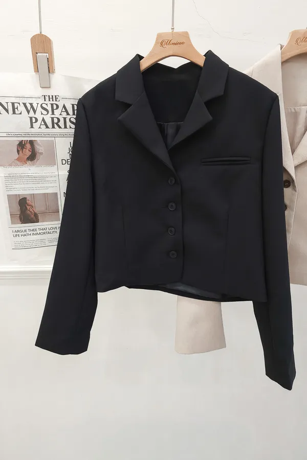 正韓 排釦翻領短版西外 2色