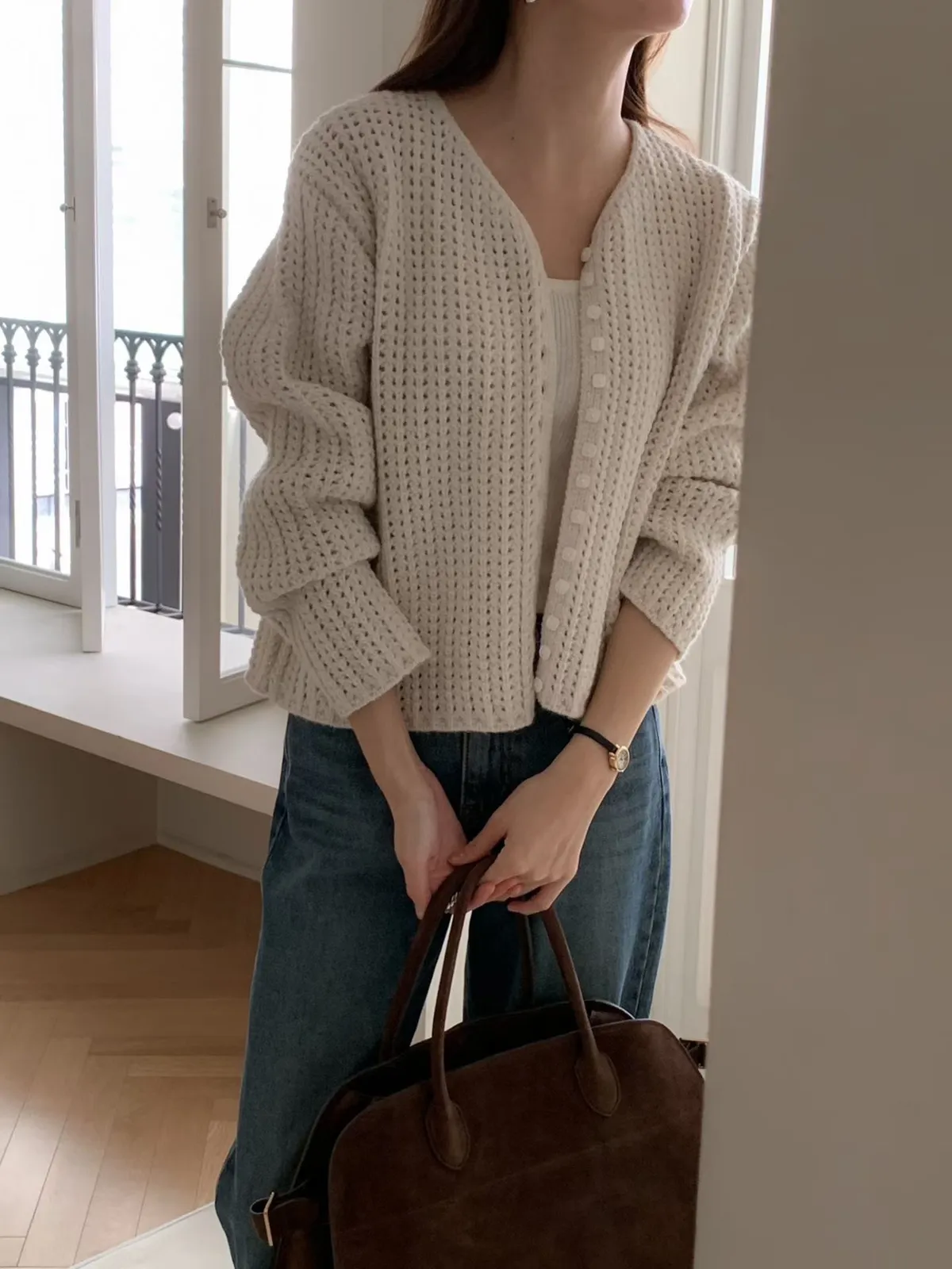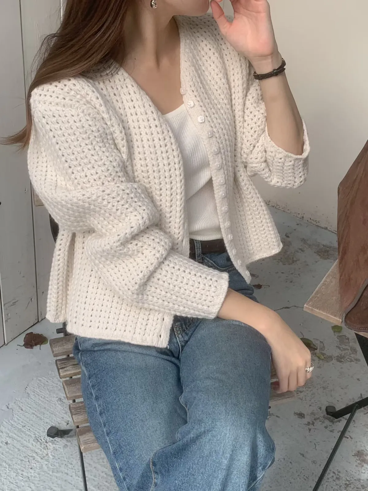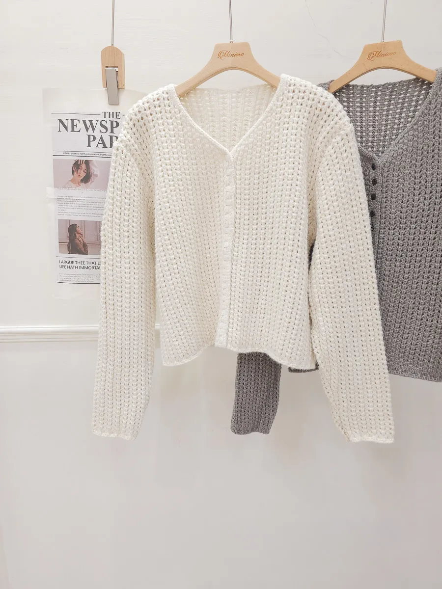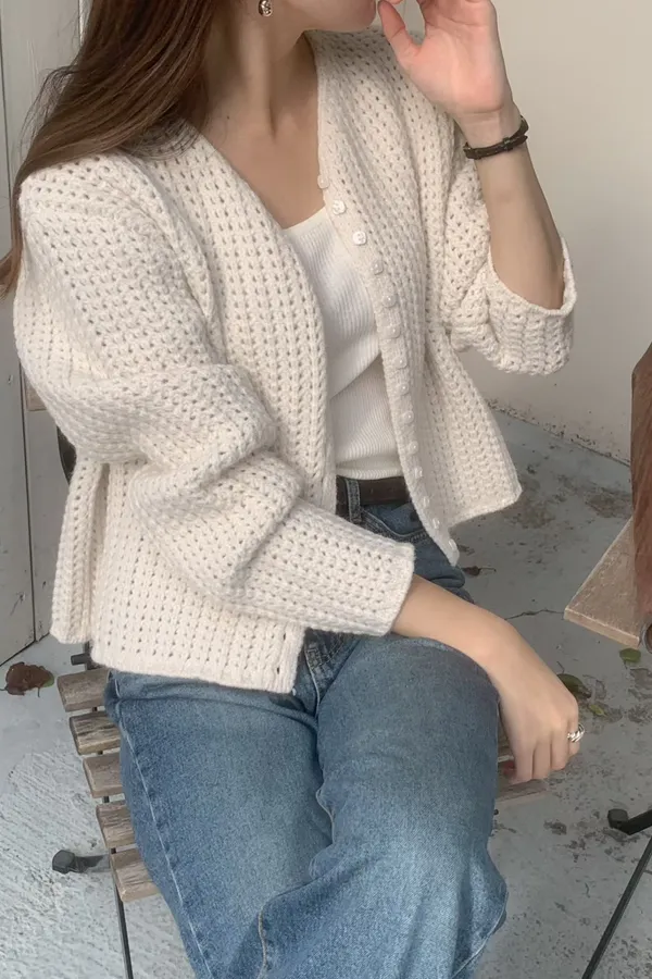 01.正韓 鏤空粗勾針織開釦外套 2色