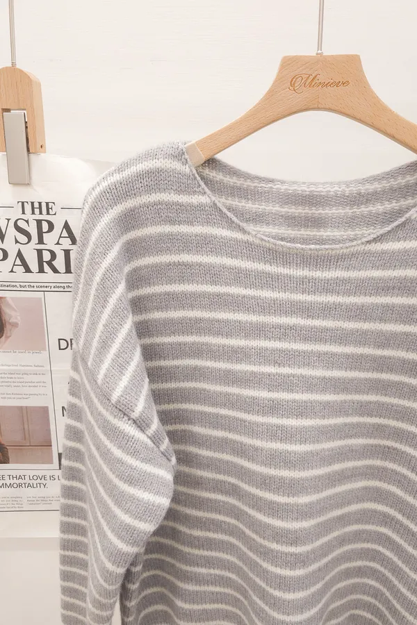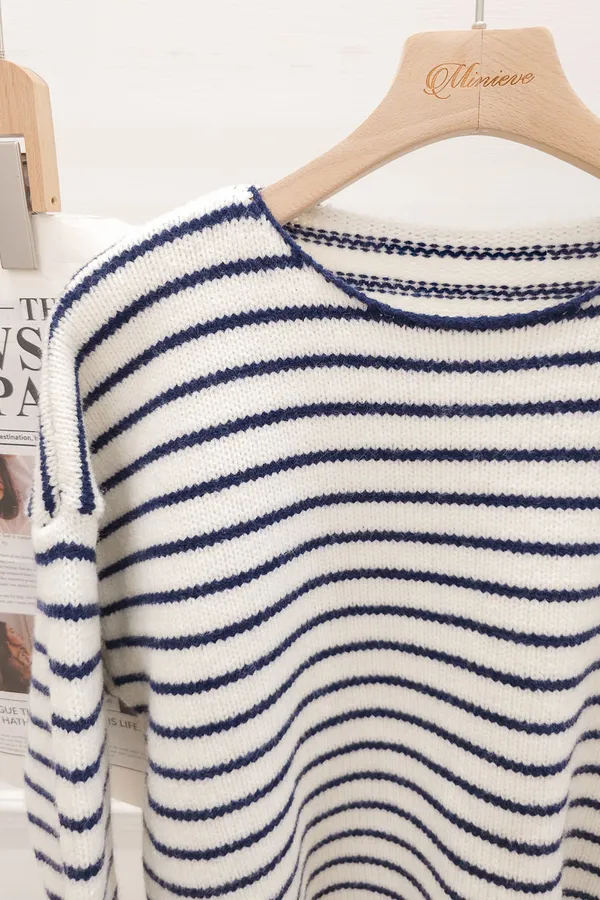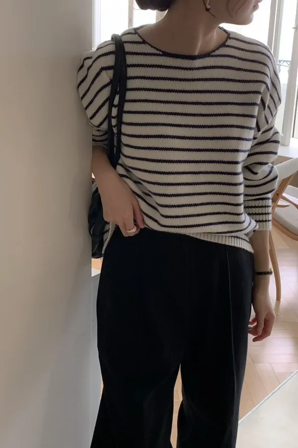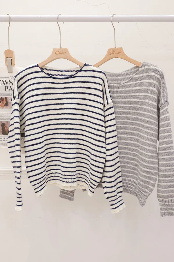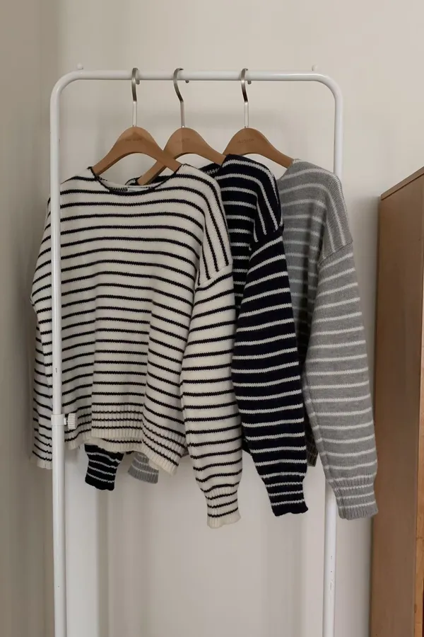 02.正韓 落肩條紋針織上衣 3色