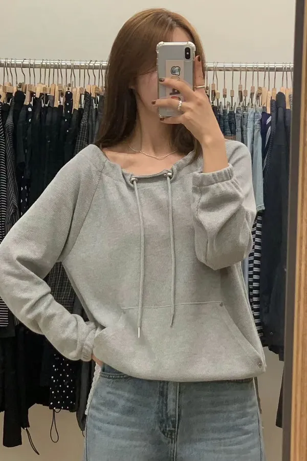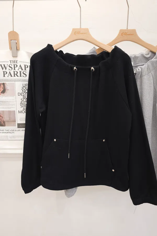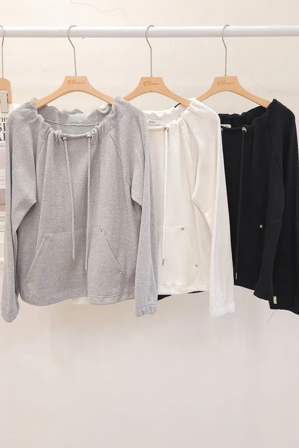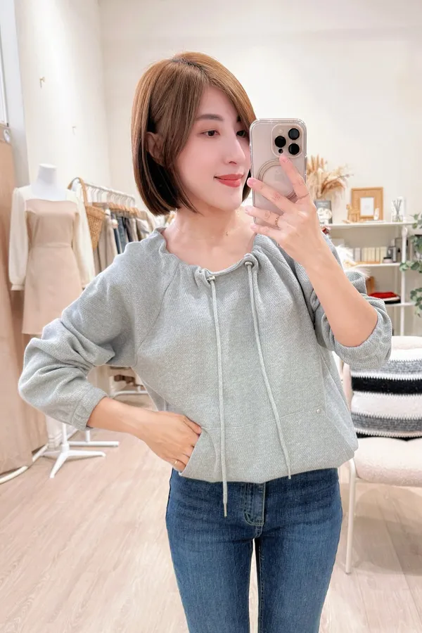 15.正韓 抽繩領口袋縮擺上衣 3色