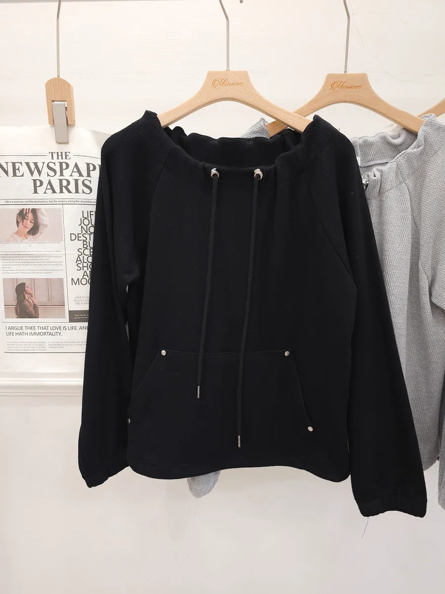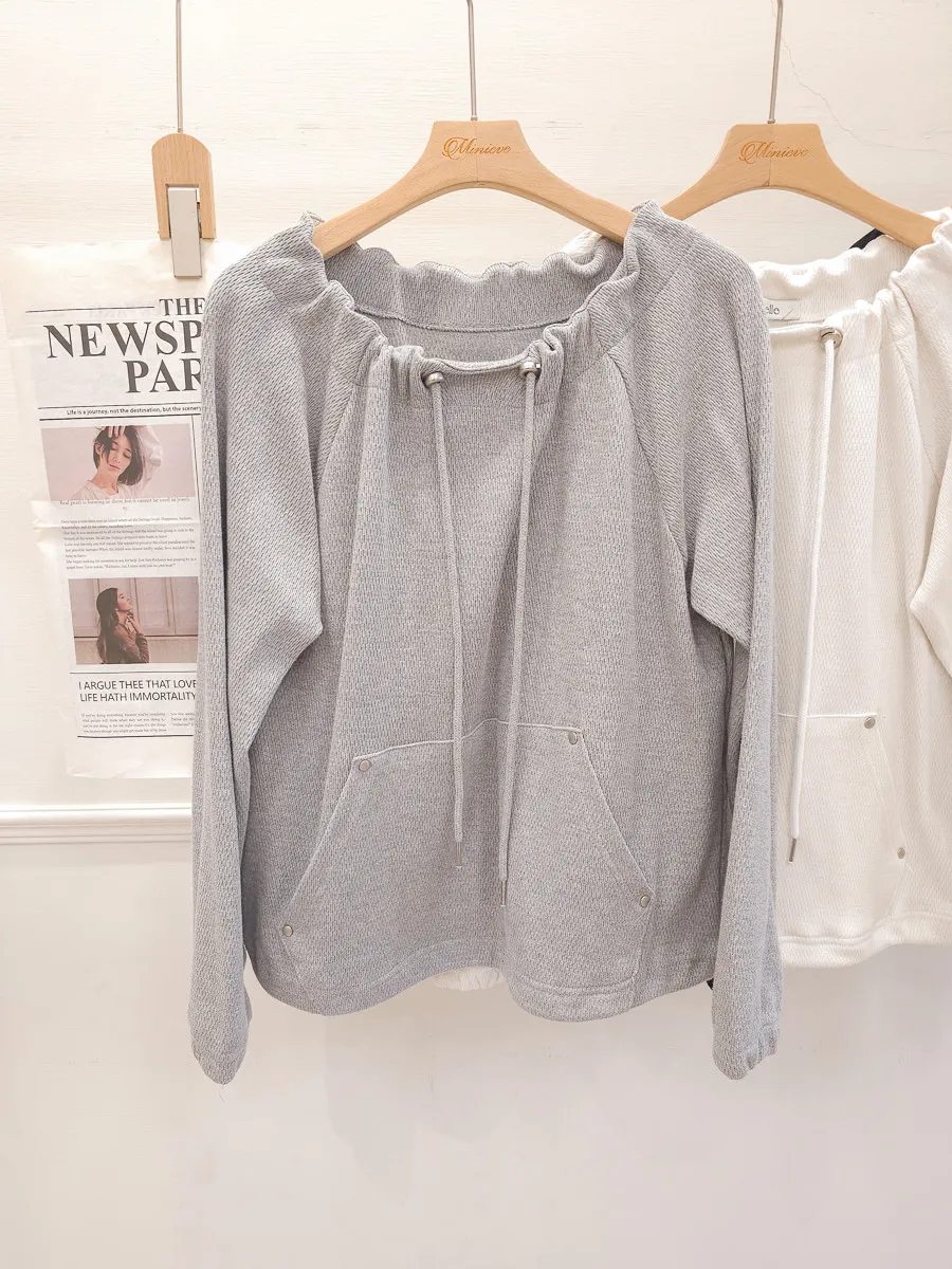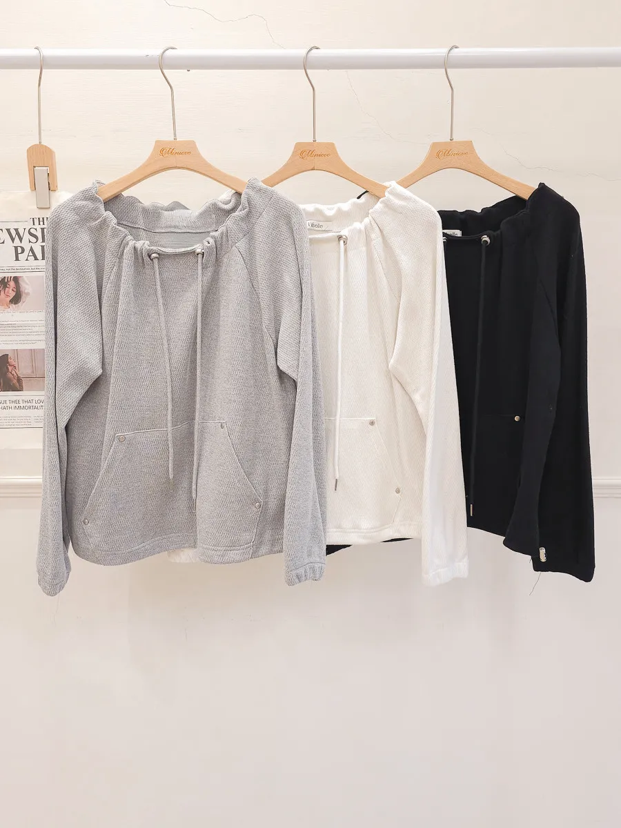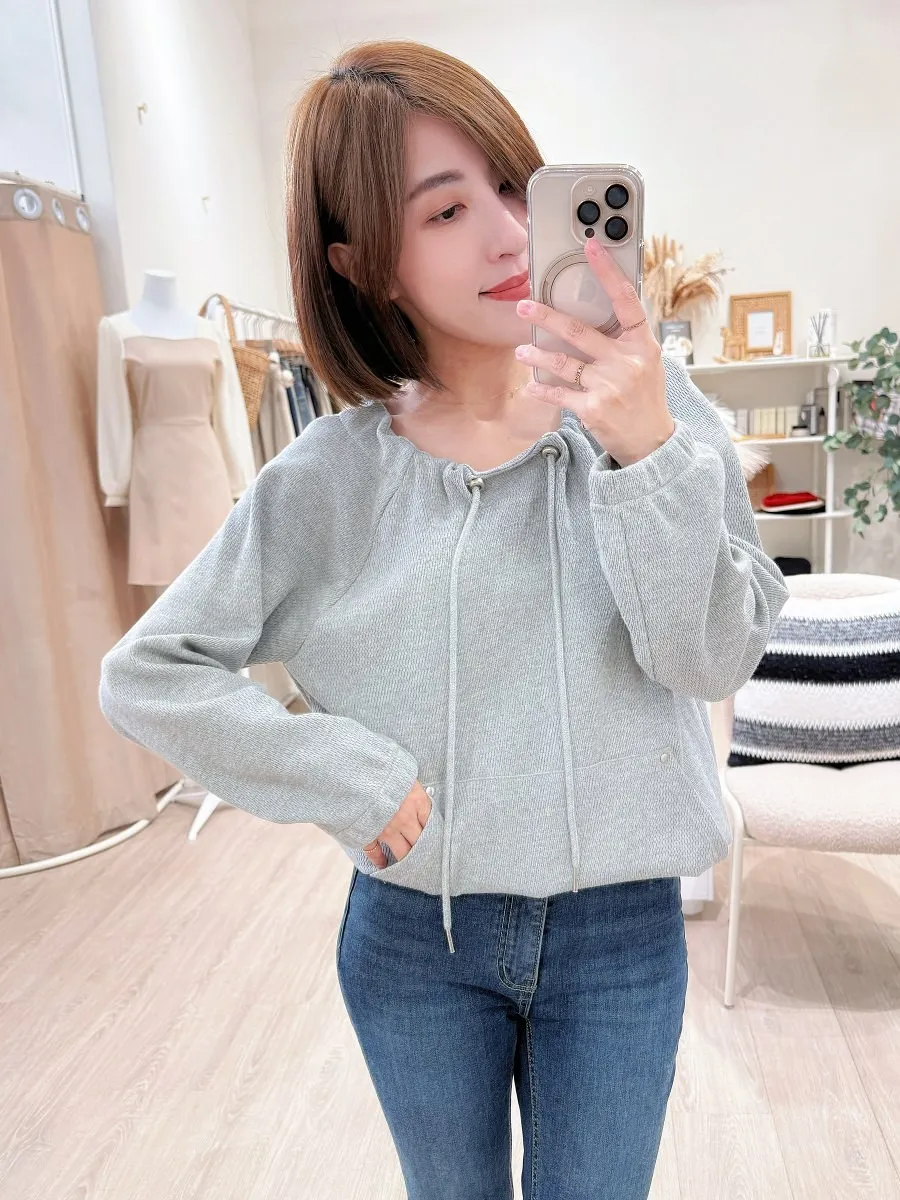 正韓 抽繩領口袋縮擺上衣 3色