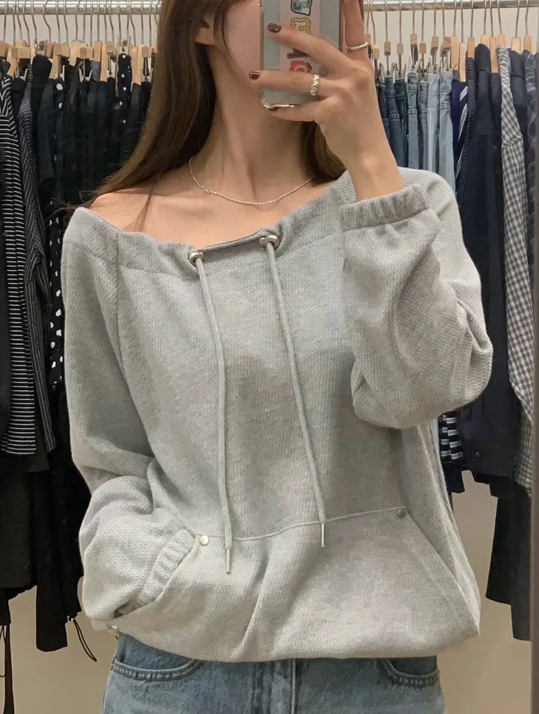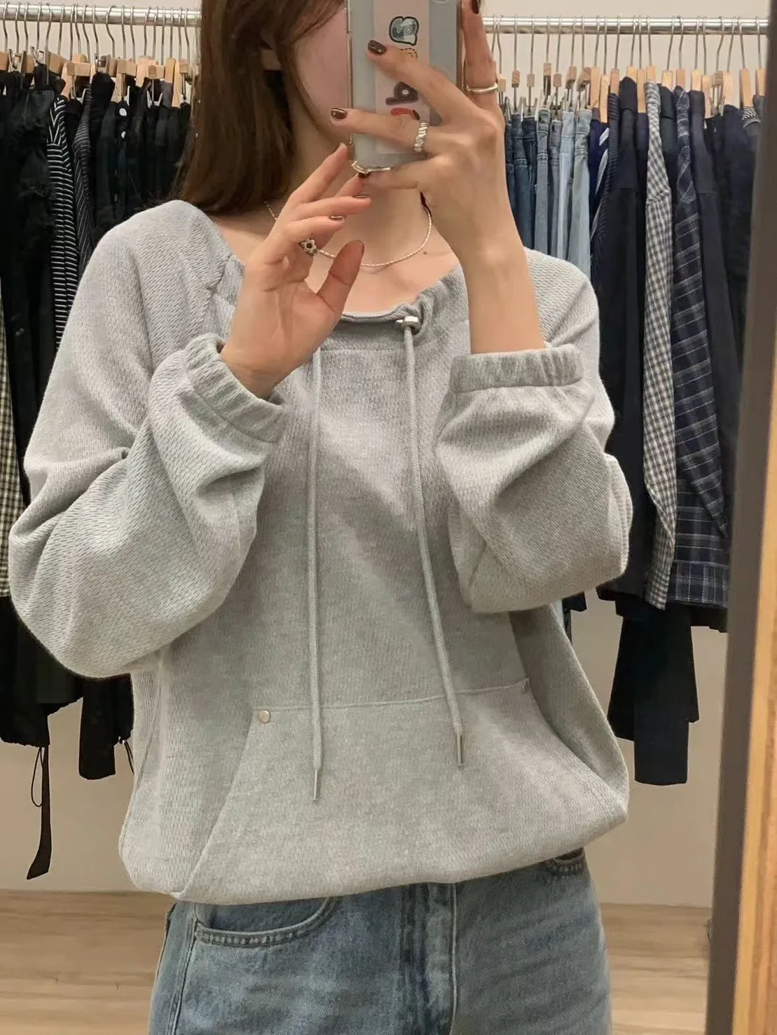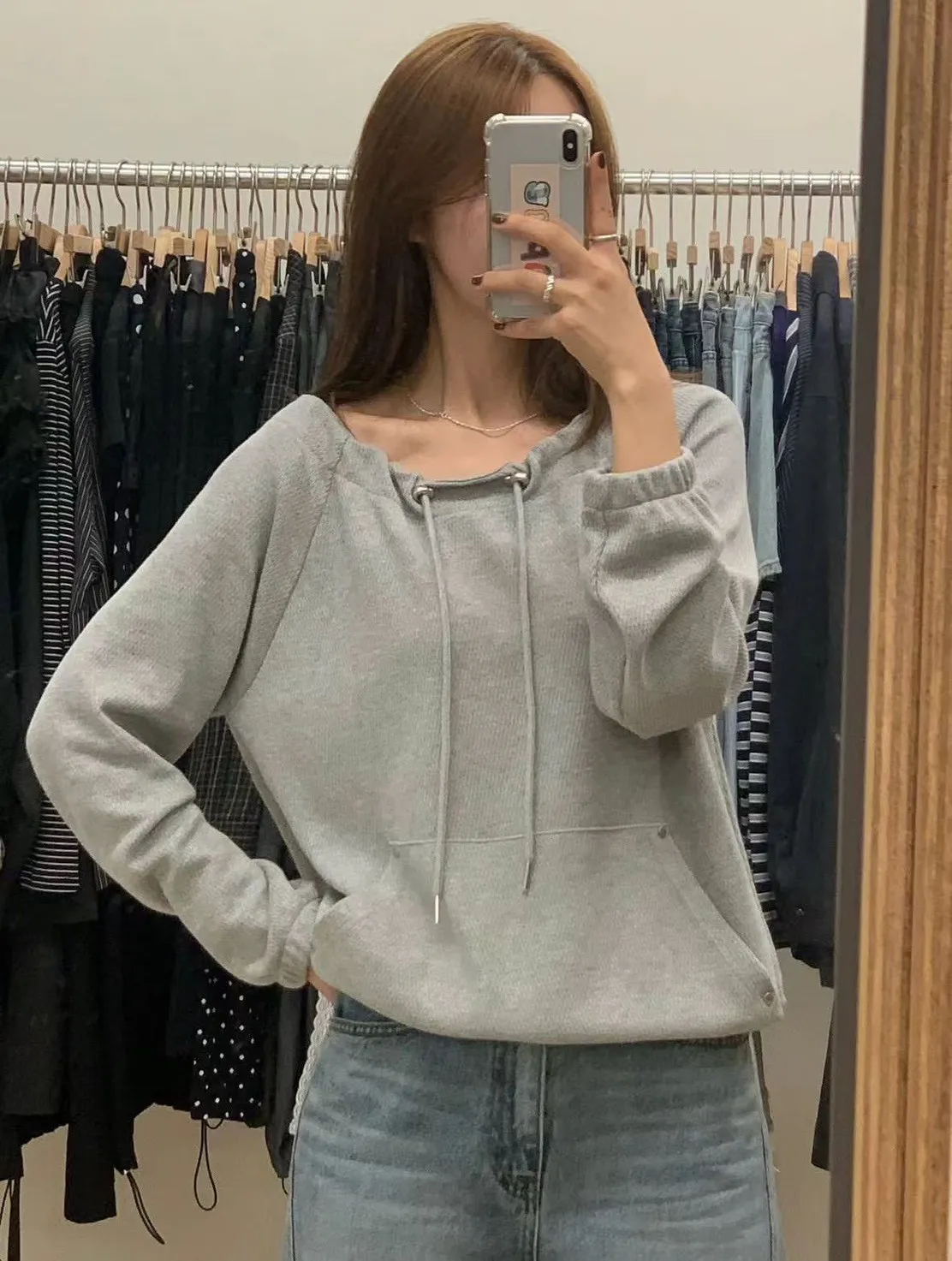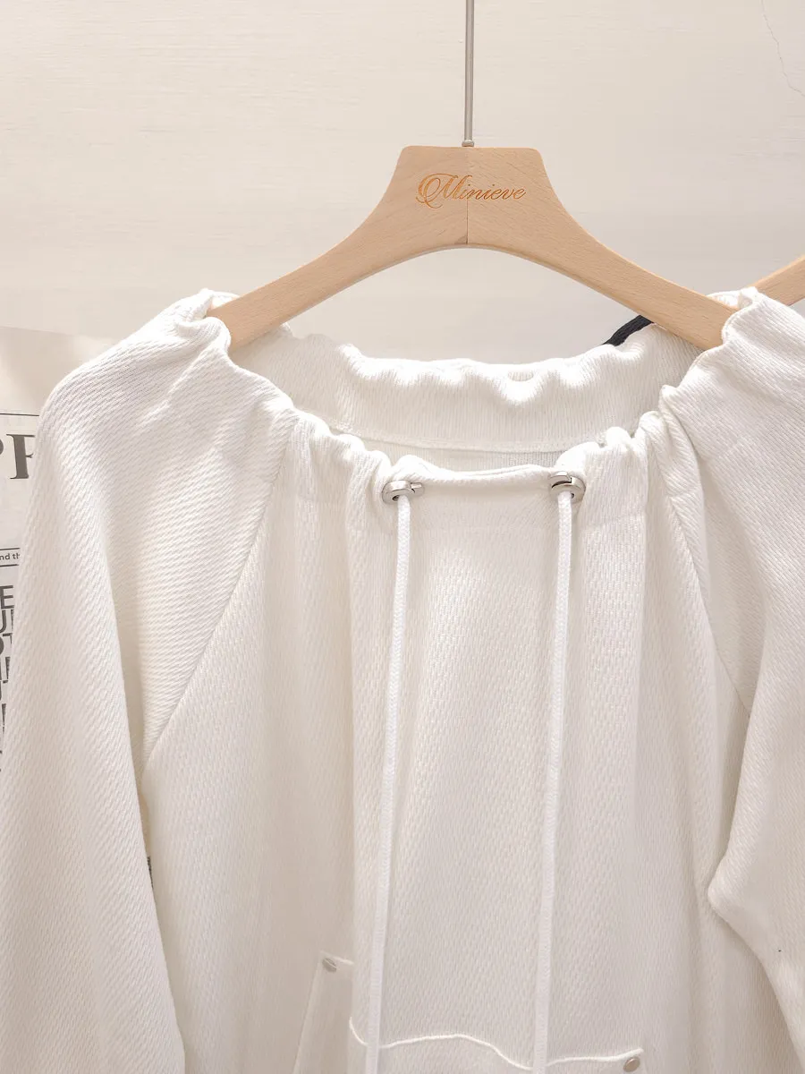 正韓 抽繩領口袋縮擺上衣 3色