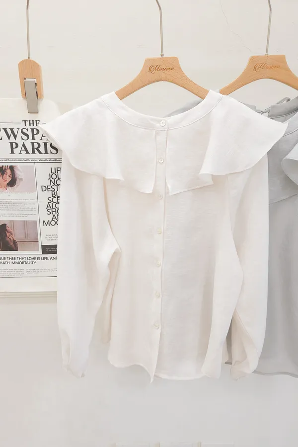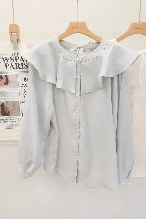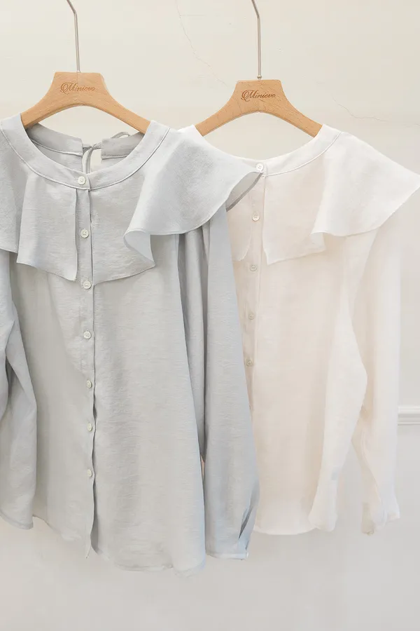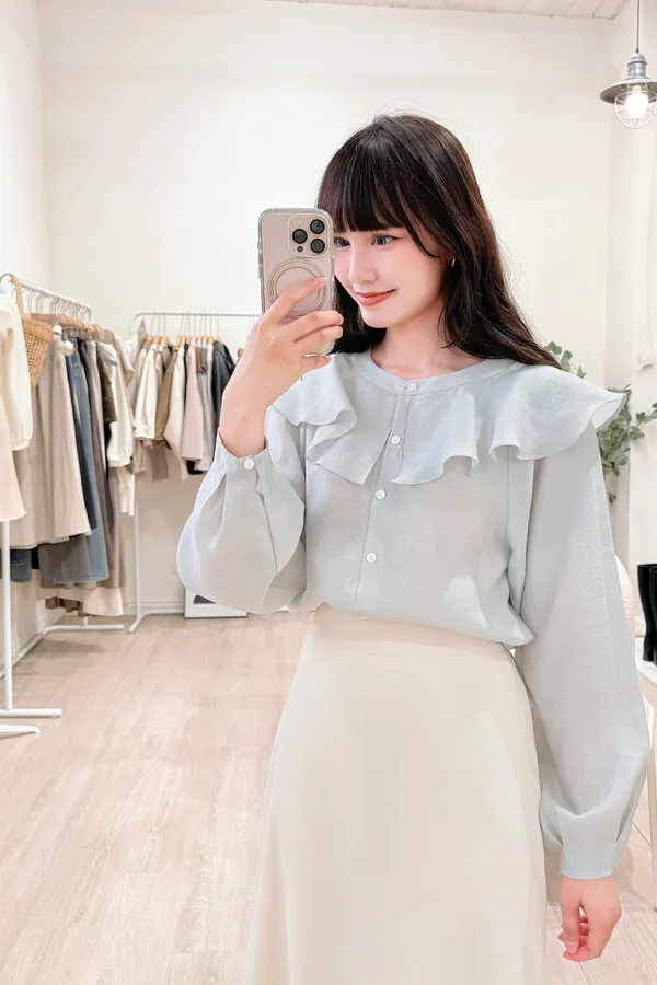 21.正韓 排釦繫帶荷葉2way上衣 2色