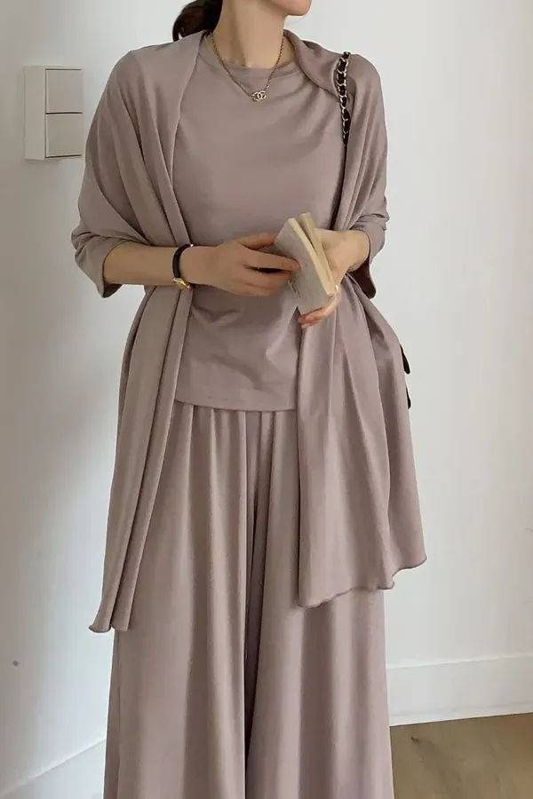 31.正韓 簡約披肩寬褲3件套裝 2色